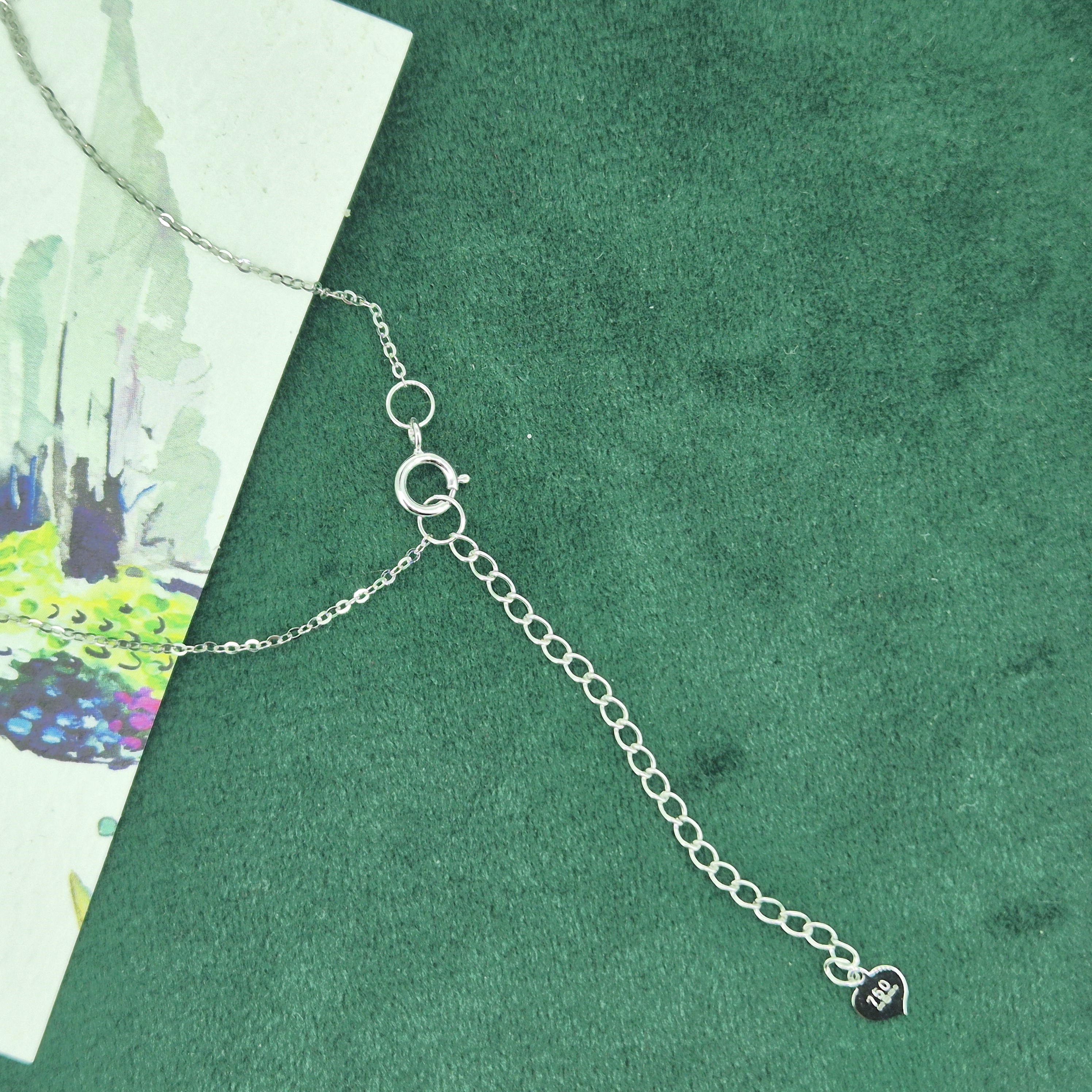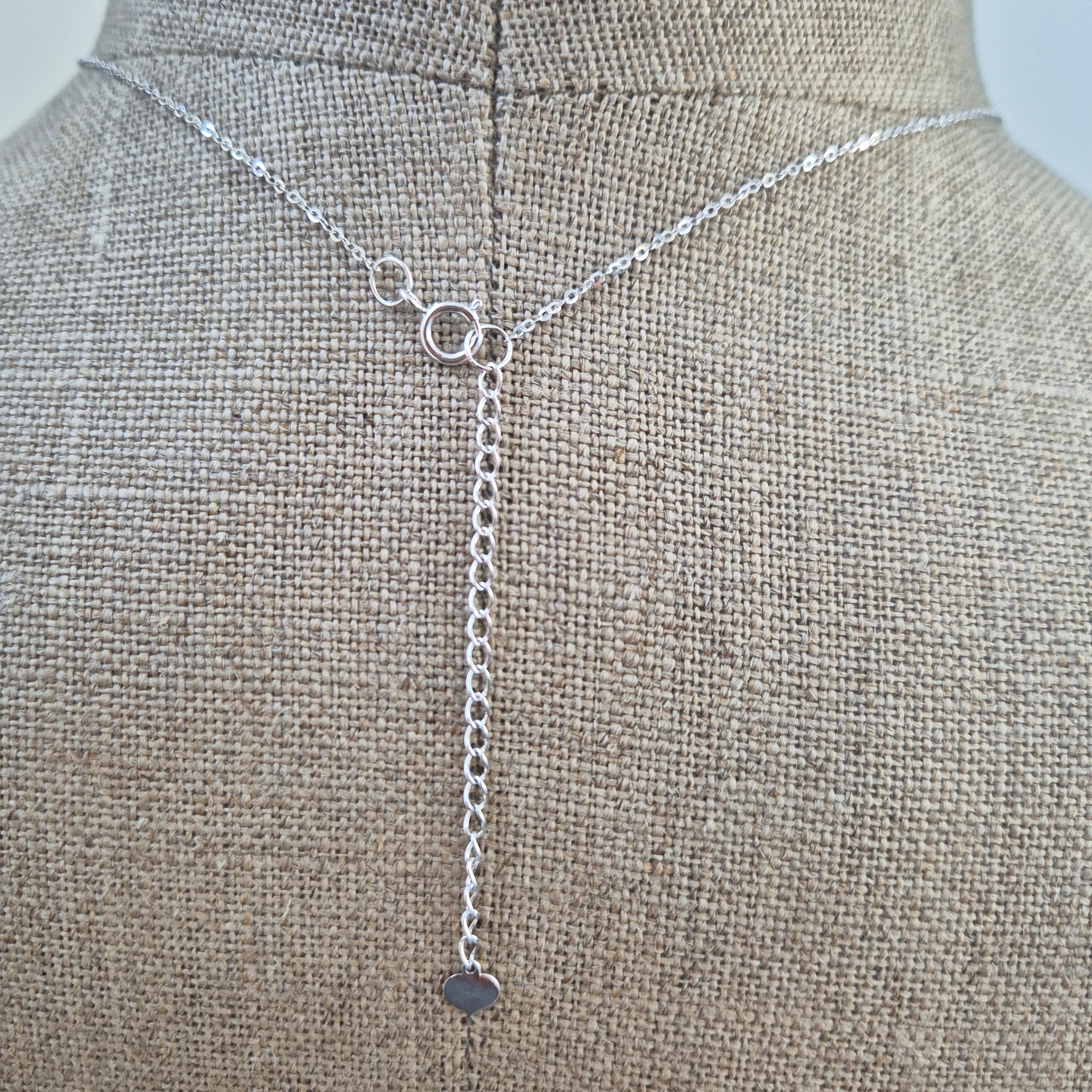 The necklace is fully hallmarked and weighs 2.54 grams. It can be worn at 16 or 18 inches and anything in-between due to it's extendable chain.