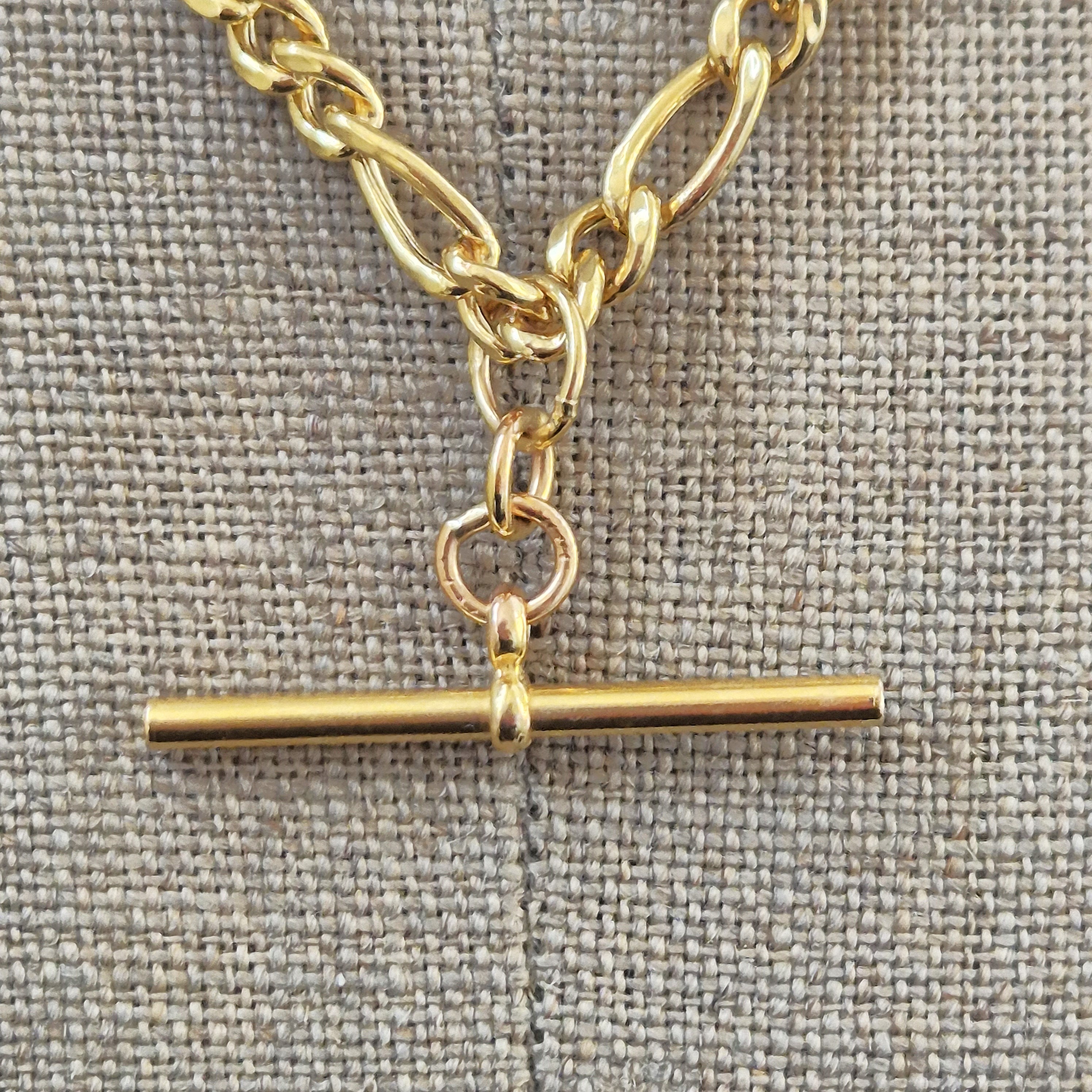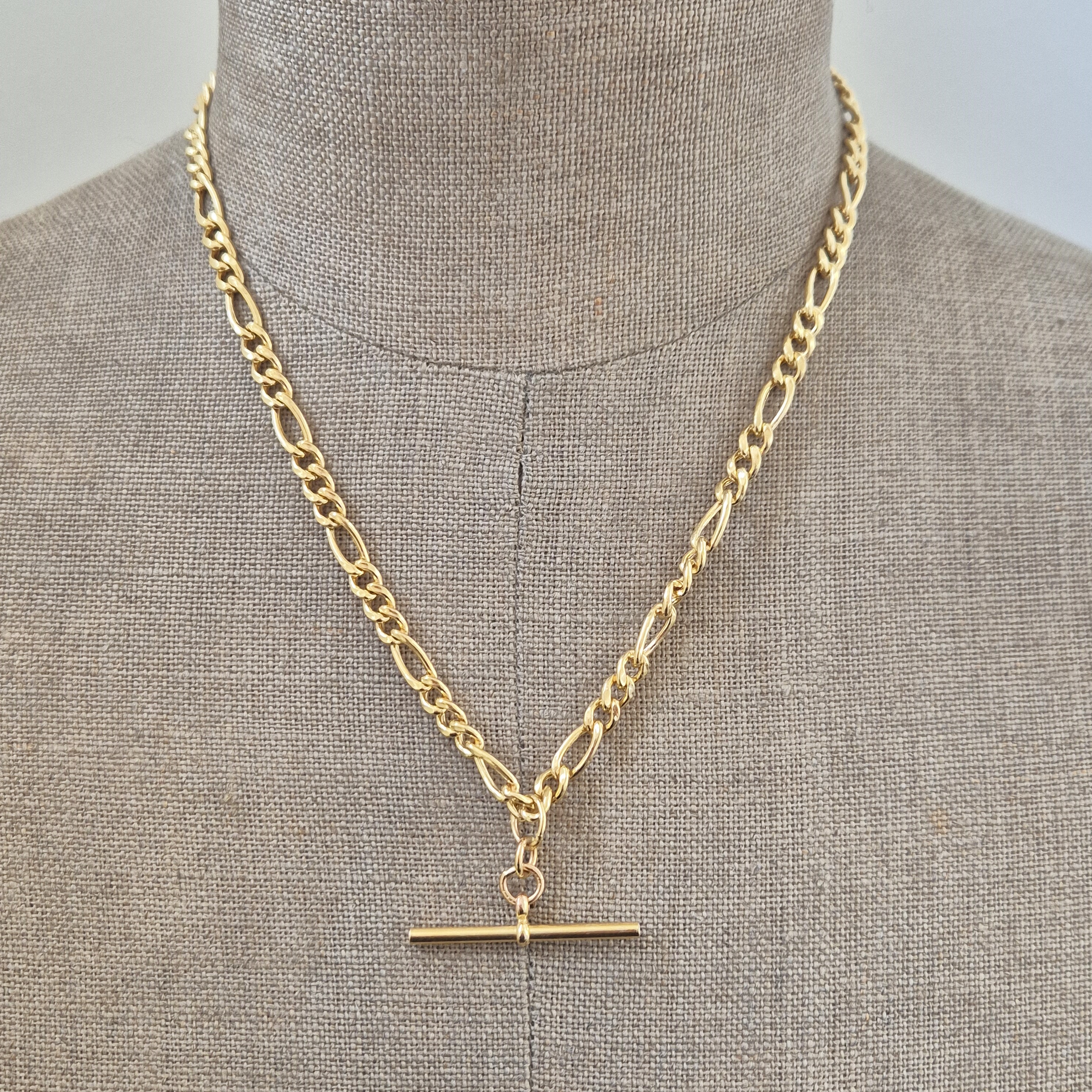 The necklace features Figaro links that measure 5mm in width. It is fitted with a T-Bar in the centre that measures 35mm in length.
