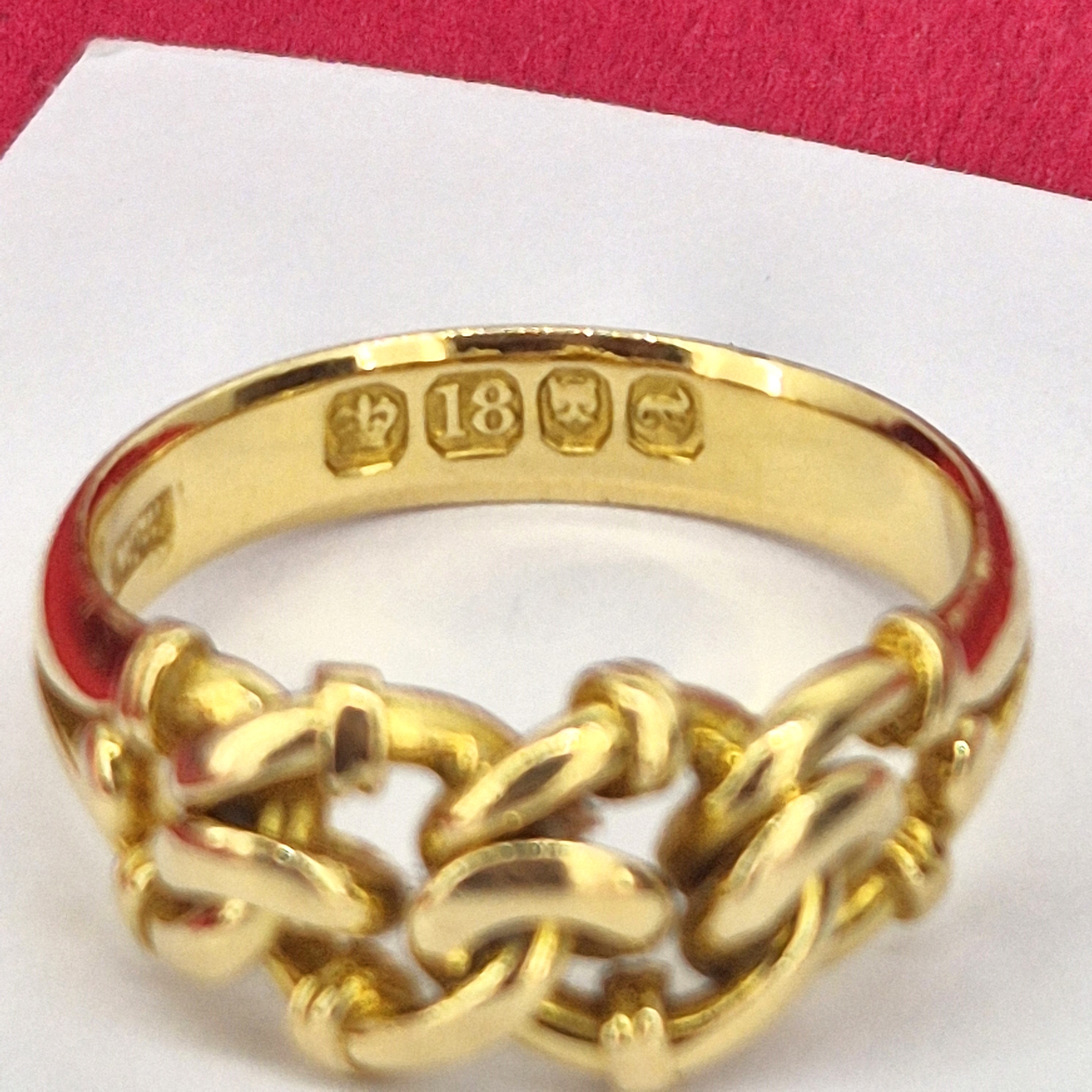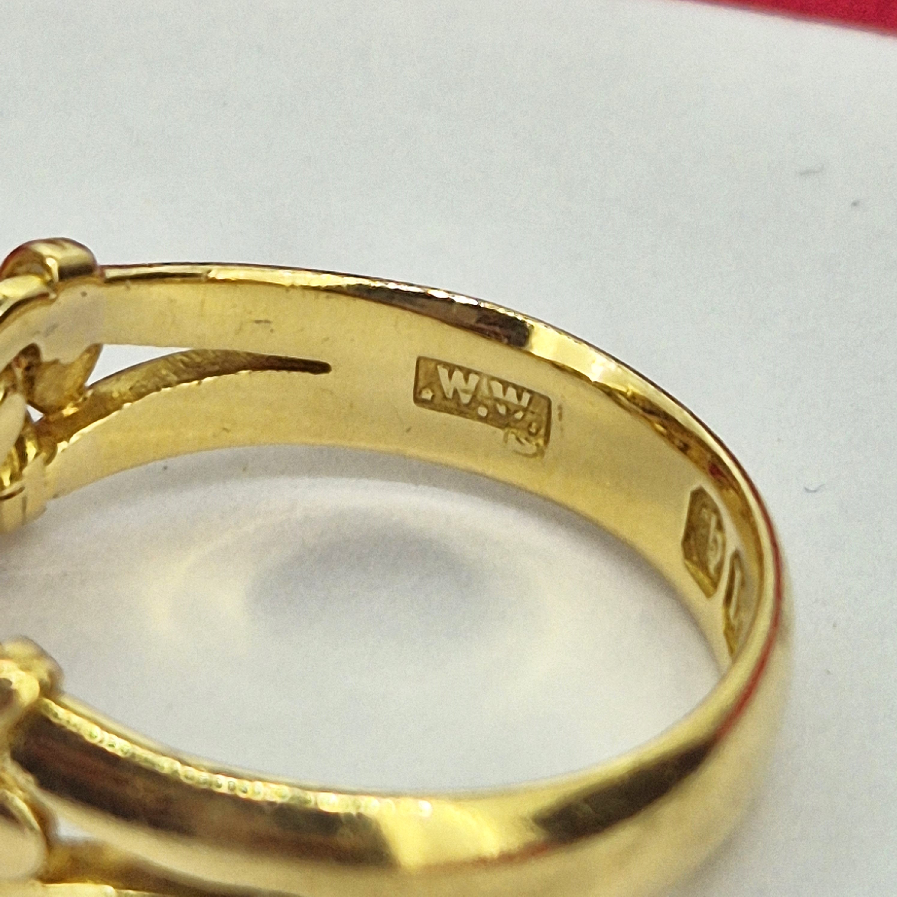 The ring is composed of three intertwined lovers knots that symbolise the eternal and secure bonds favoured by lovers during the Victorian Era.