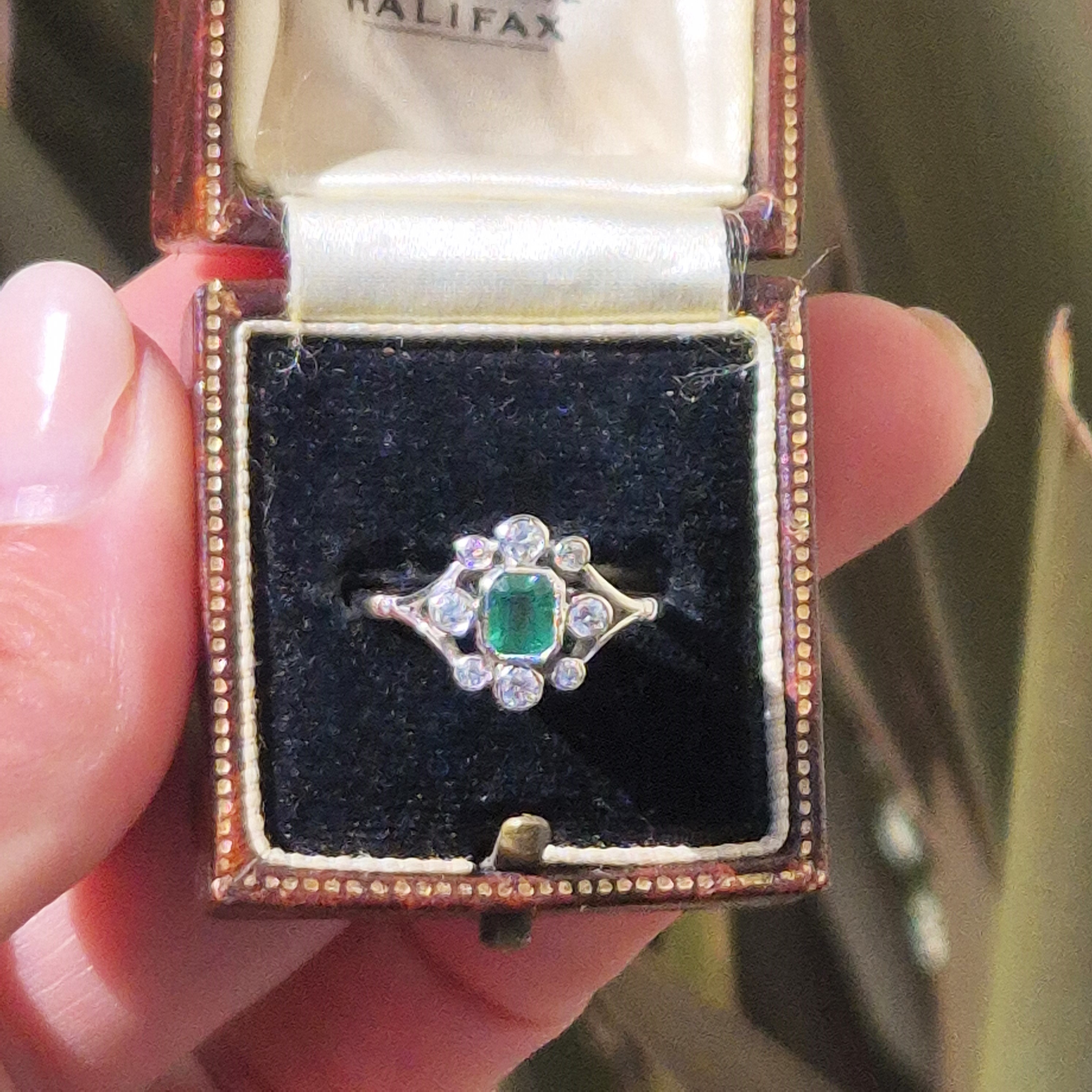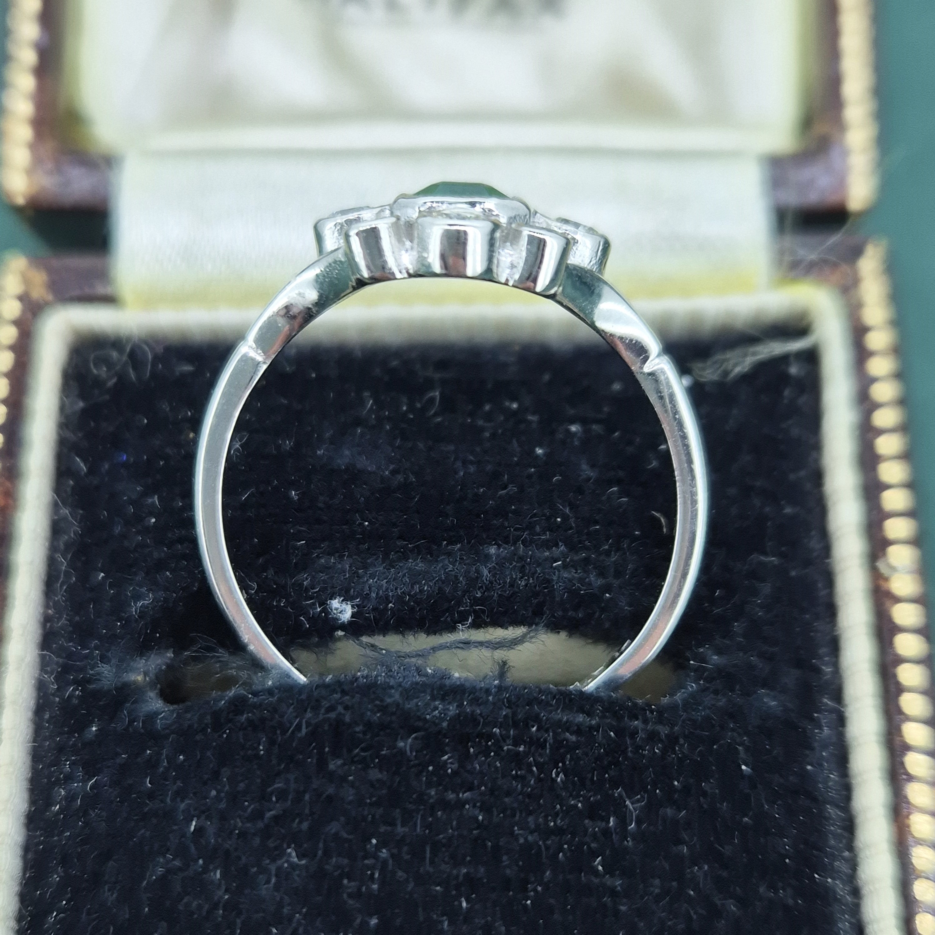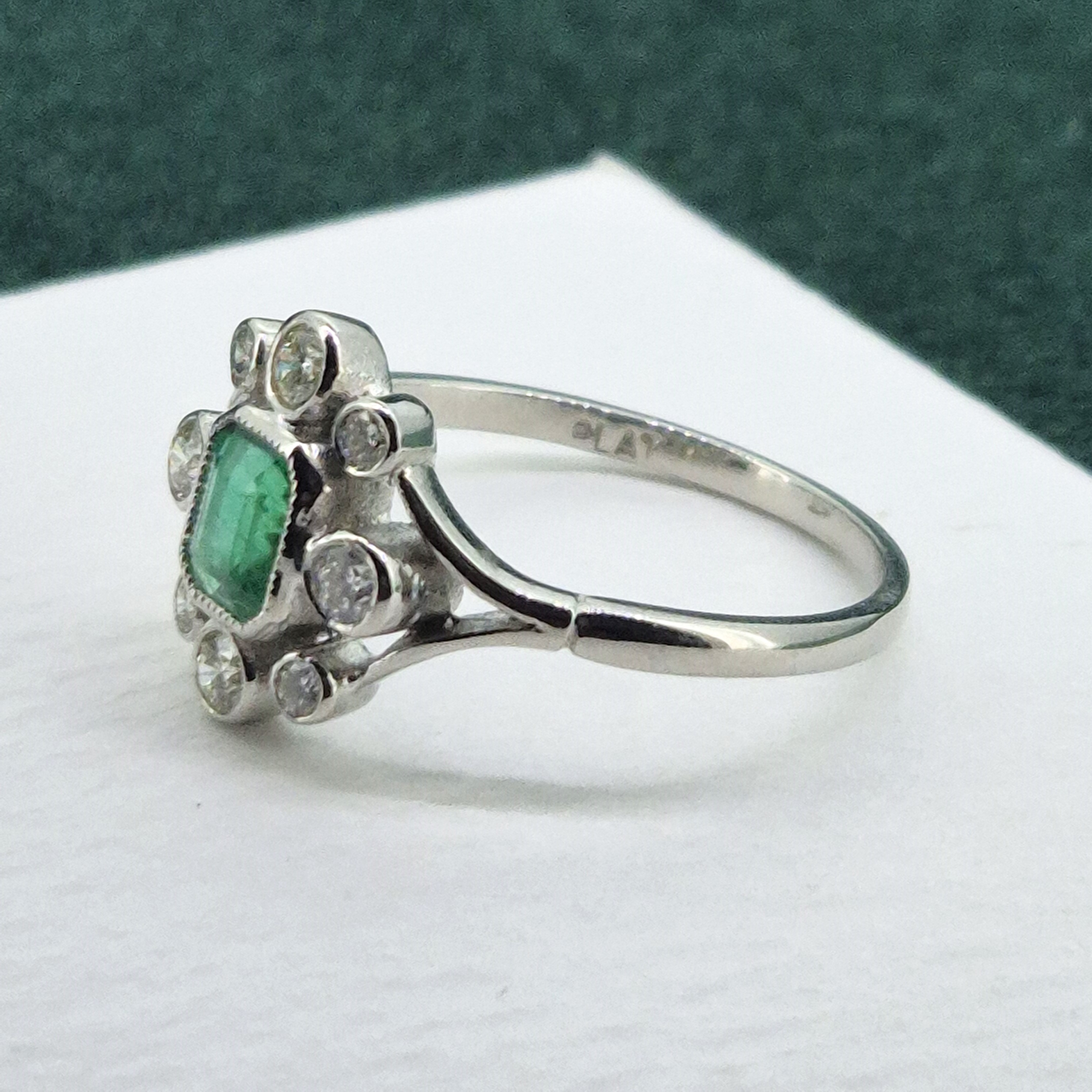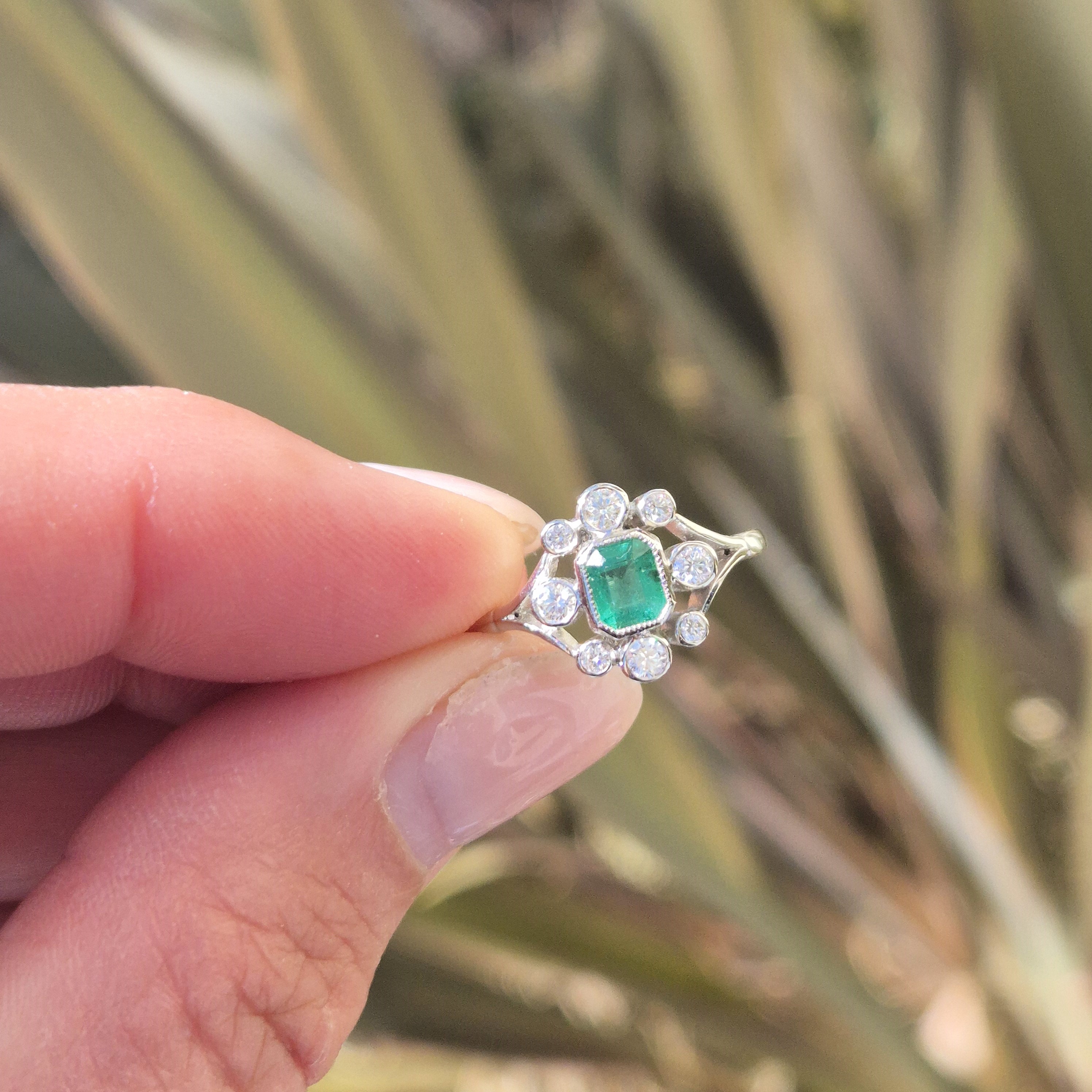 A beautiful Antique Emerald and Diamond Ring crafted from Platinum.