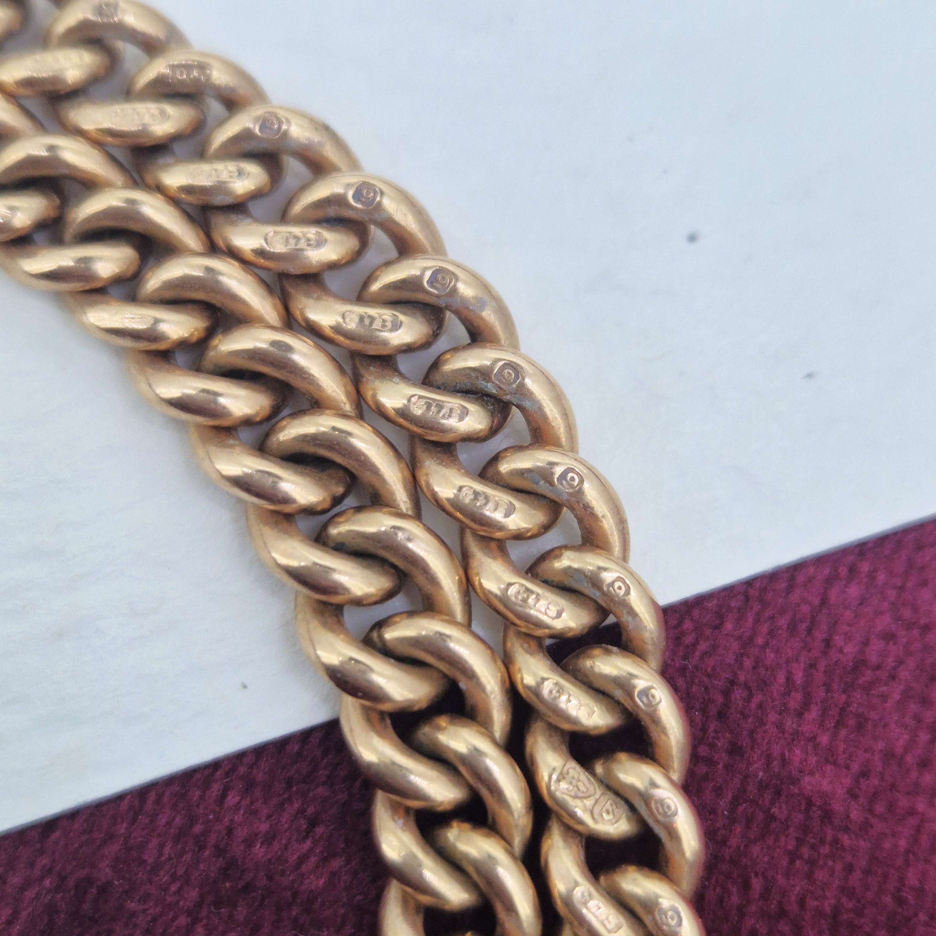 The chain features Traditional Curb links that graduate from 4.5mm to 6.5mm that are all individually hallmarked. The links are a lovely Rose Gold colour and are very tight making this piece traditional and timeless.