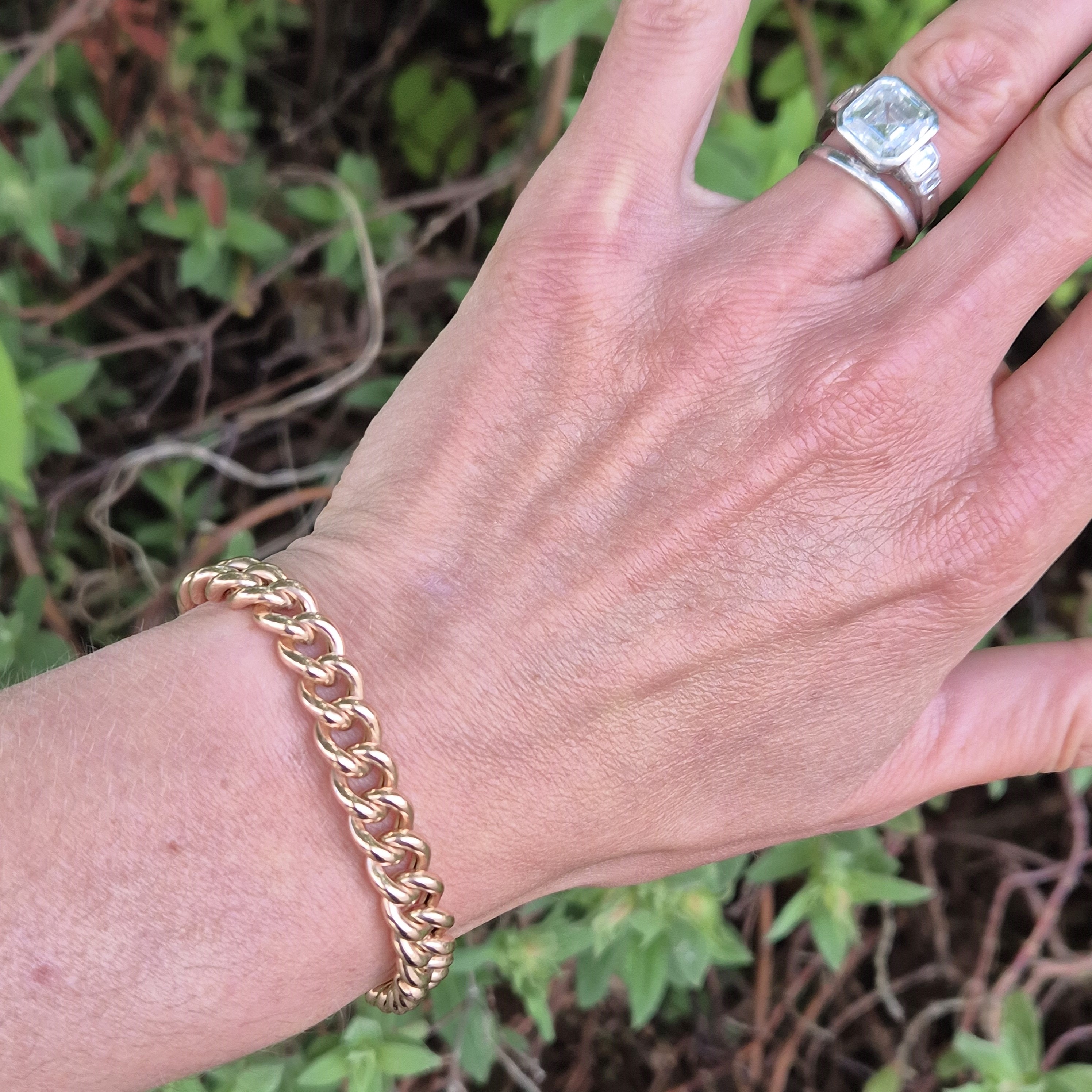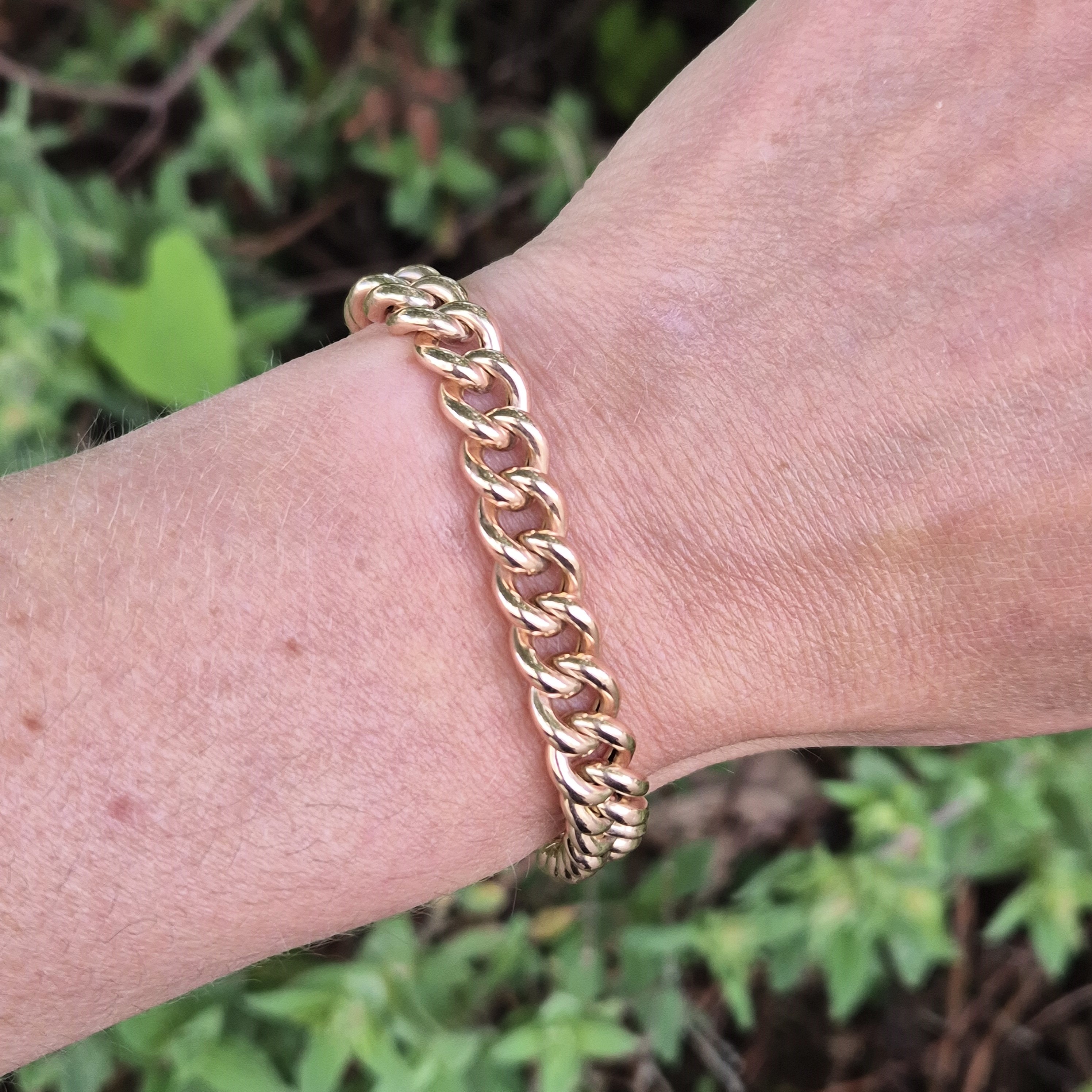 The bracelet features open Traditional Curb links that measure 9mm in width and look fabulous. It looks great on the wrist as a standalone piece or can be layered with additional bracelets for the multiplier effect.