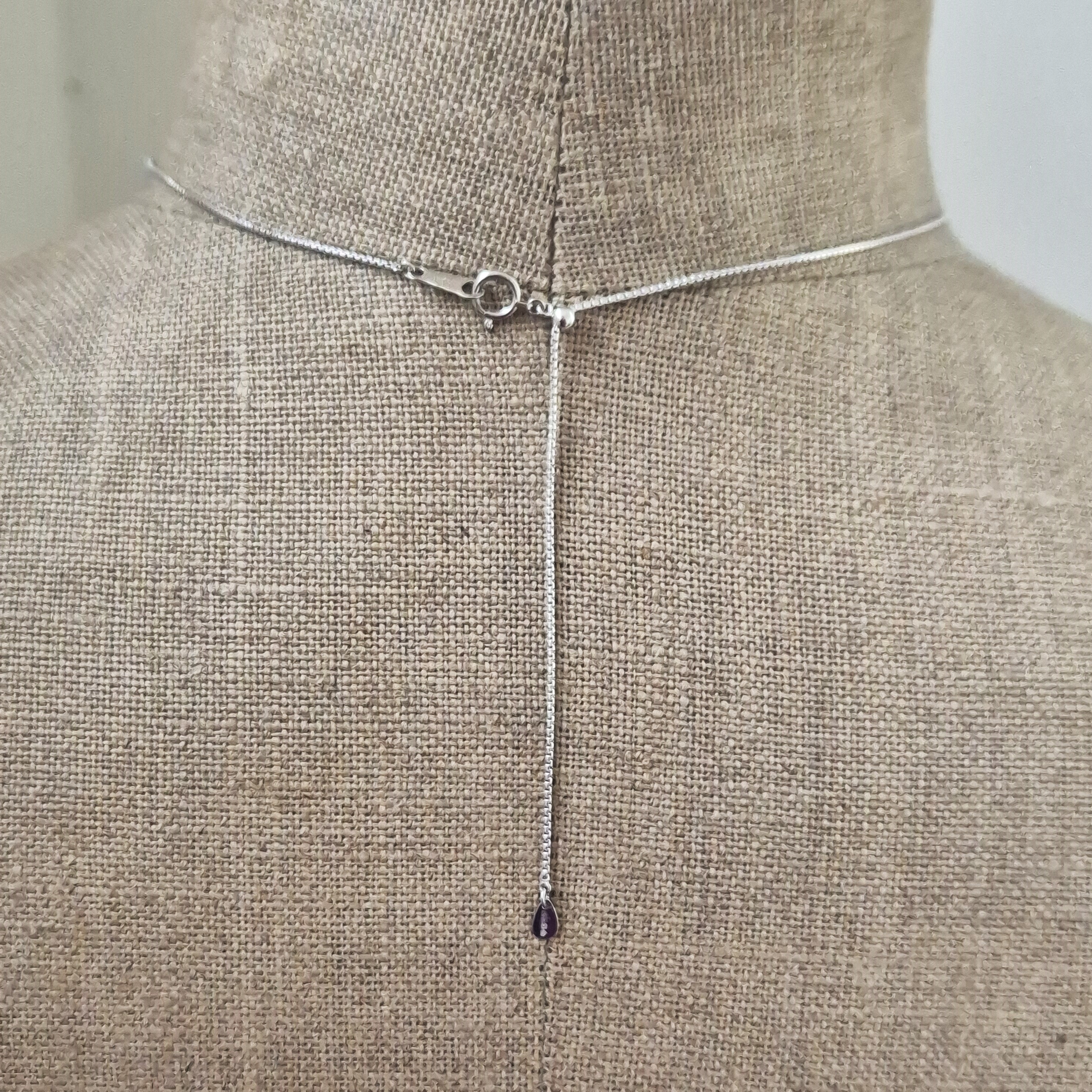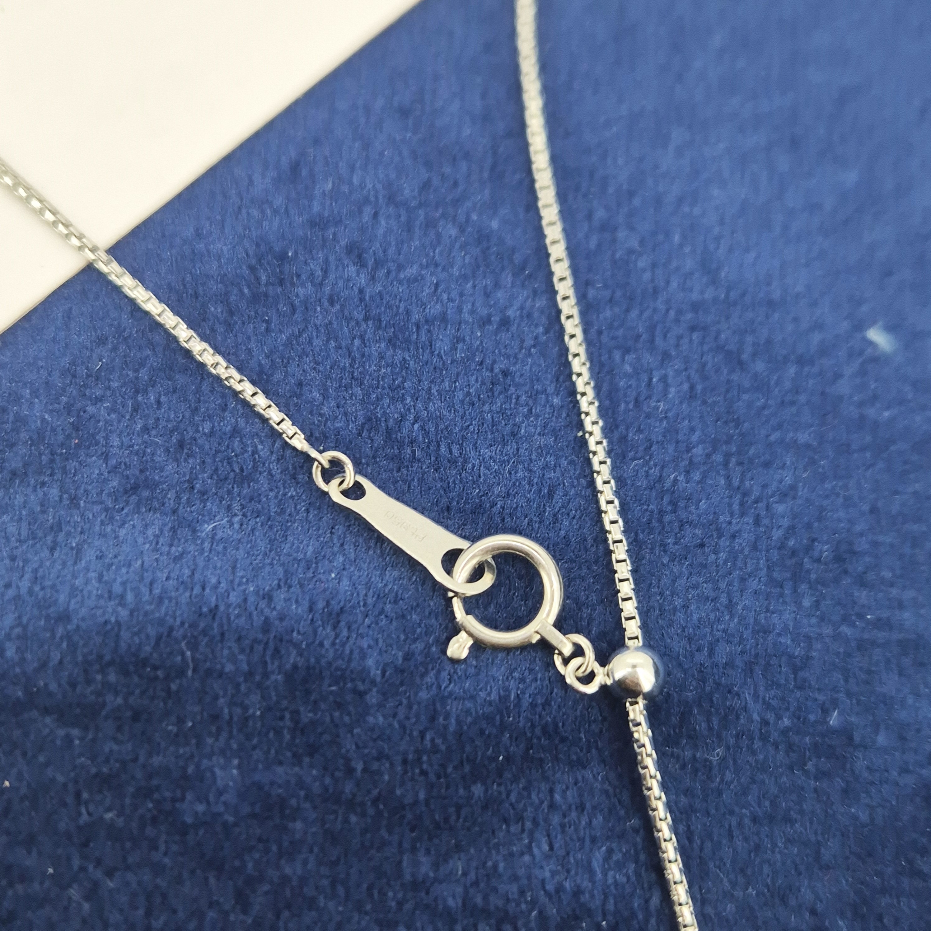 The pendant measures 10mm in width and weighs 6 grams. The chain has slider fittings, which allows you to wear it and different lengths.