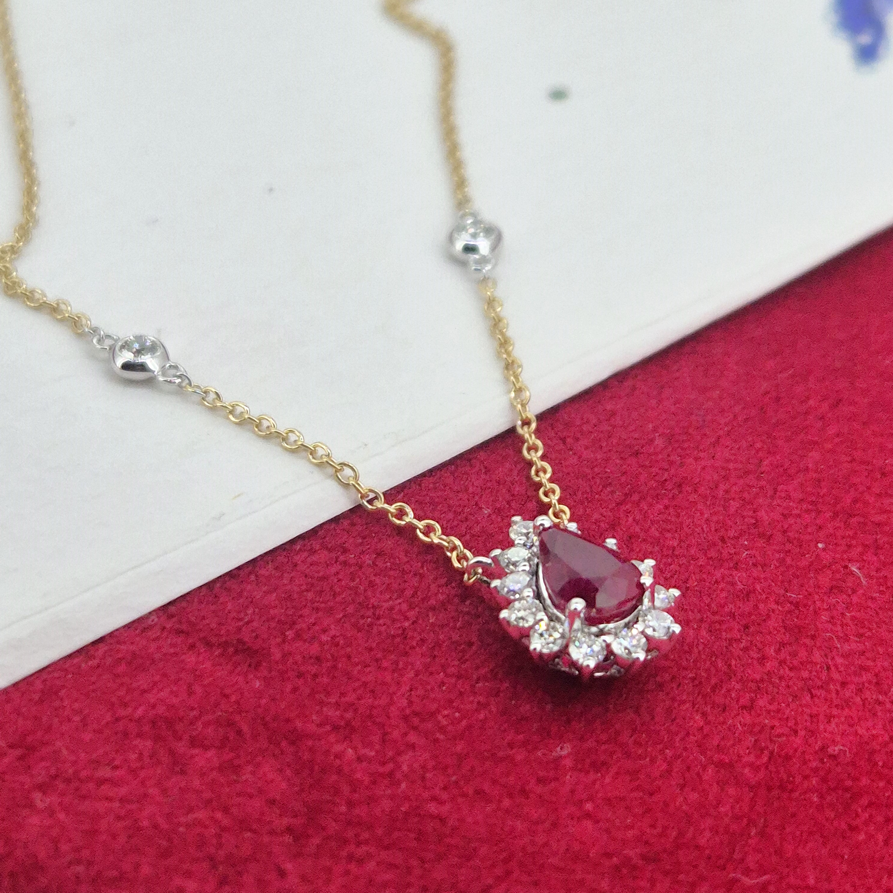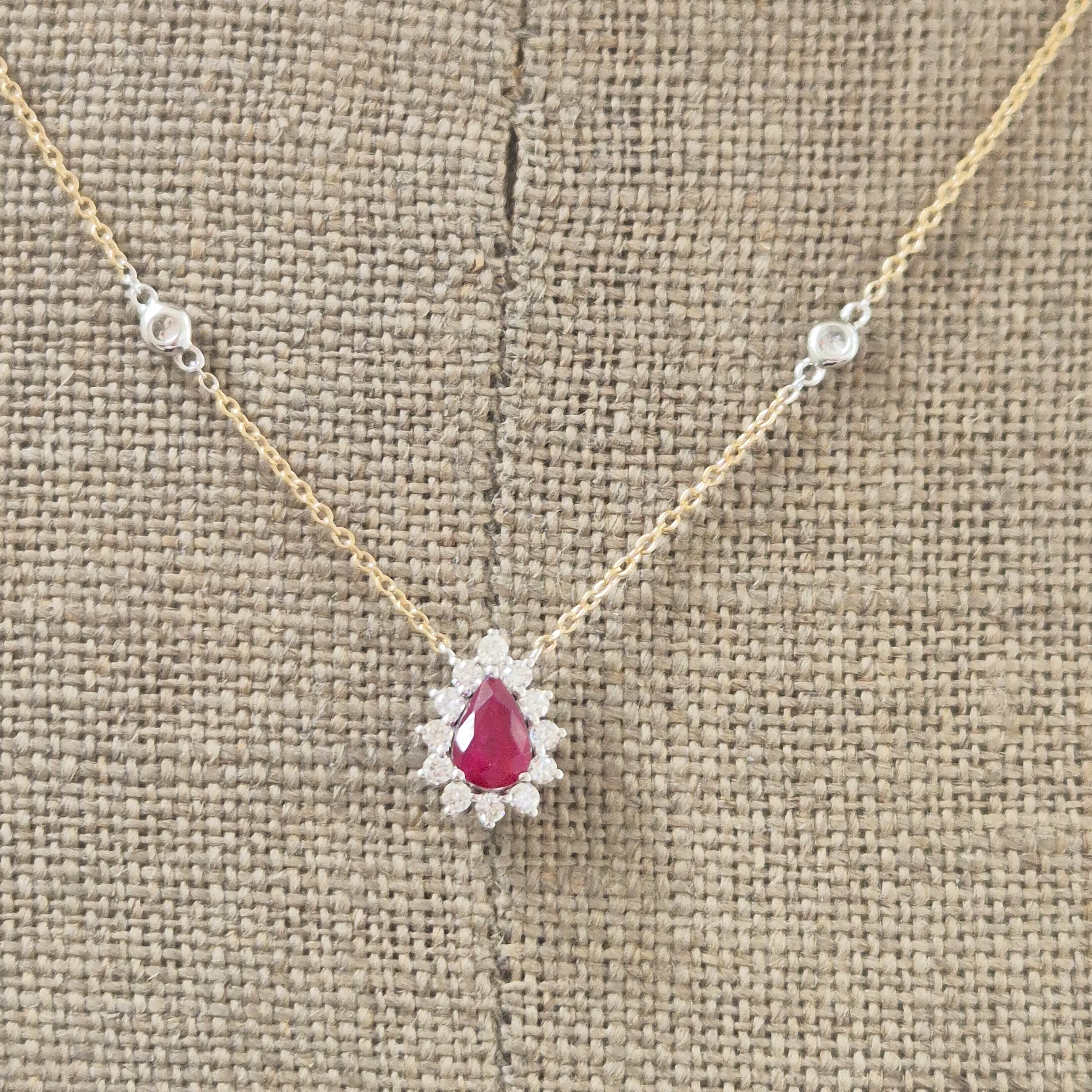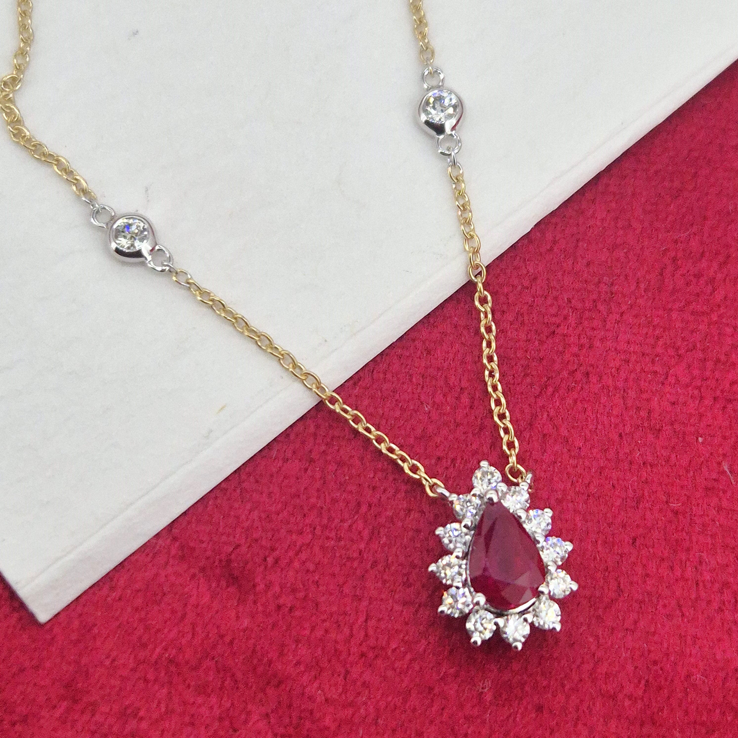 A stunning Ruby and Diamond Tear Drop Pendant crafted from 18ct Yellow and White Gold.