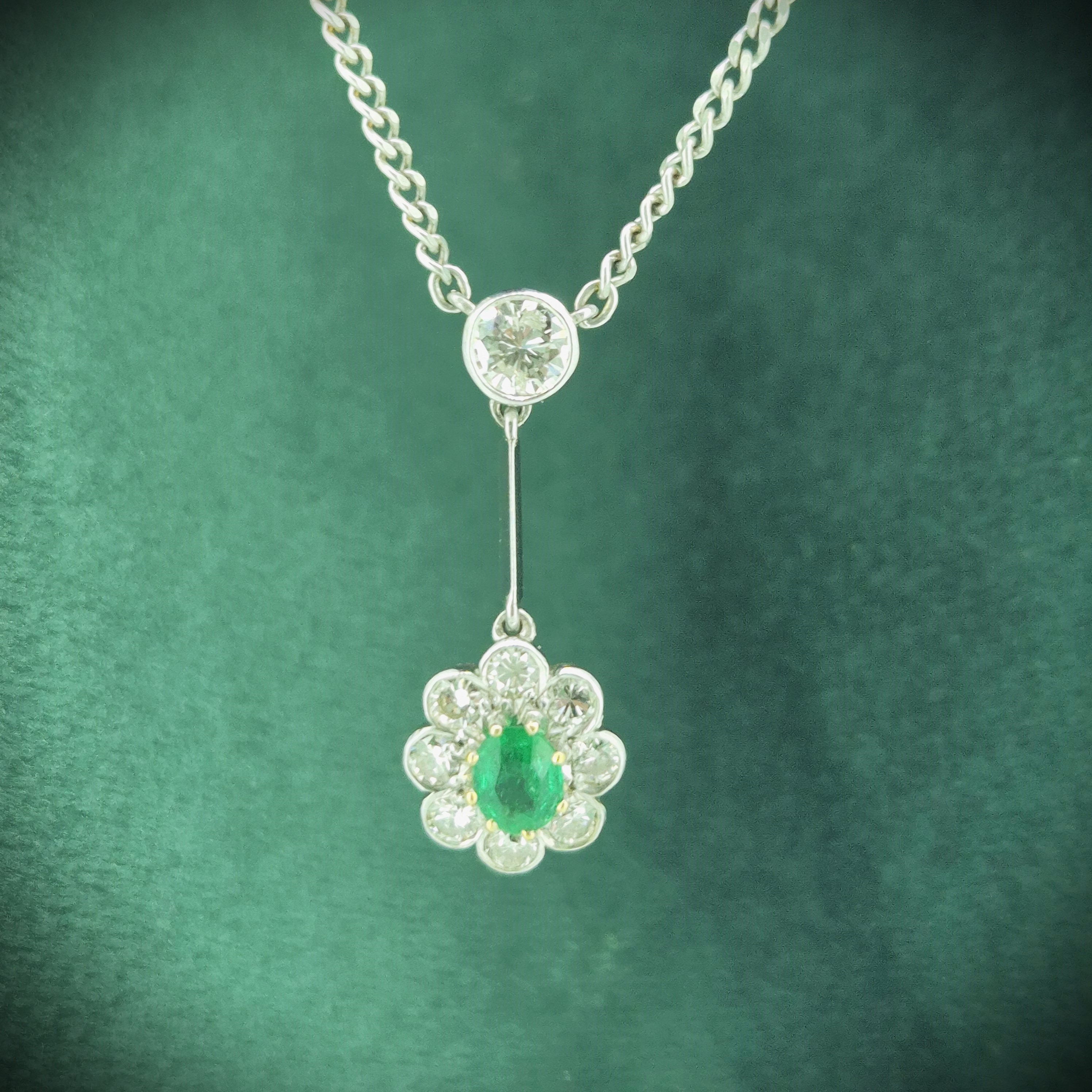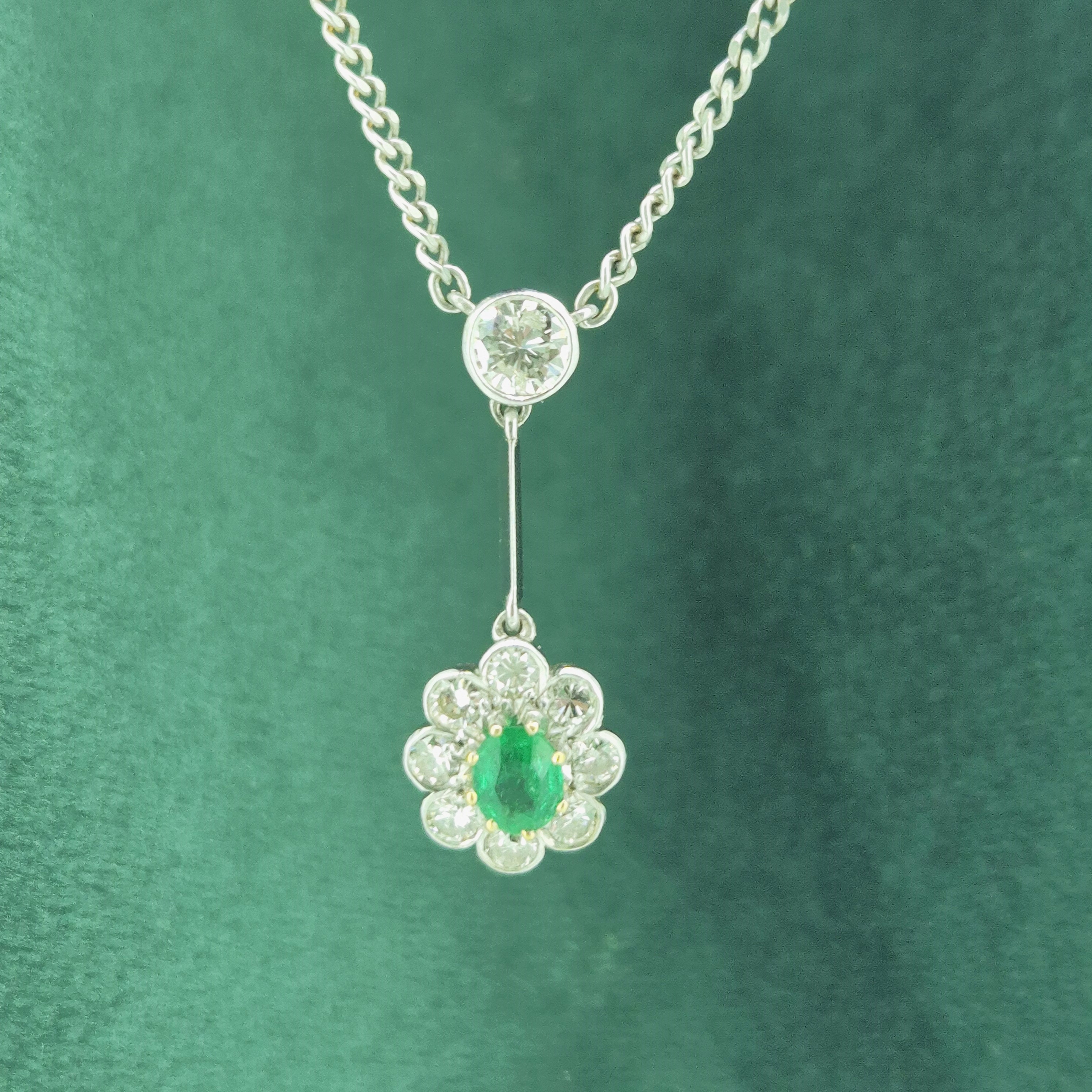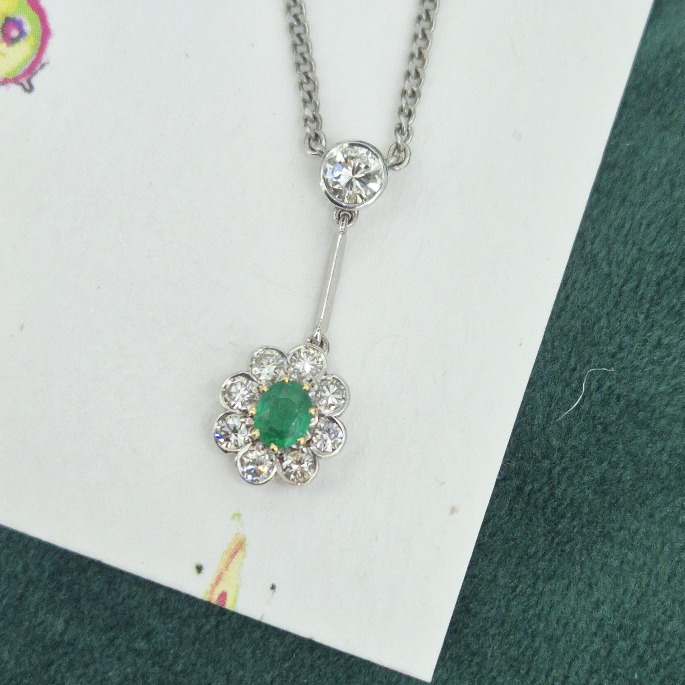 A stunning Handmade Emerald and Diamond Pendant crafted from 18ct White Gold.