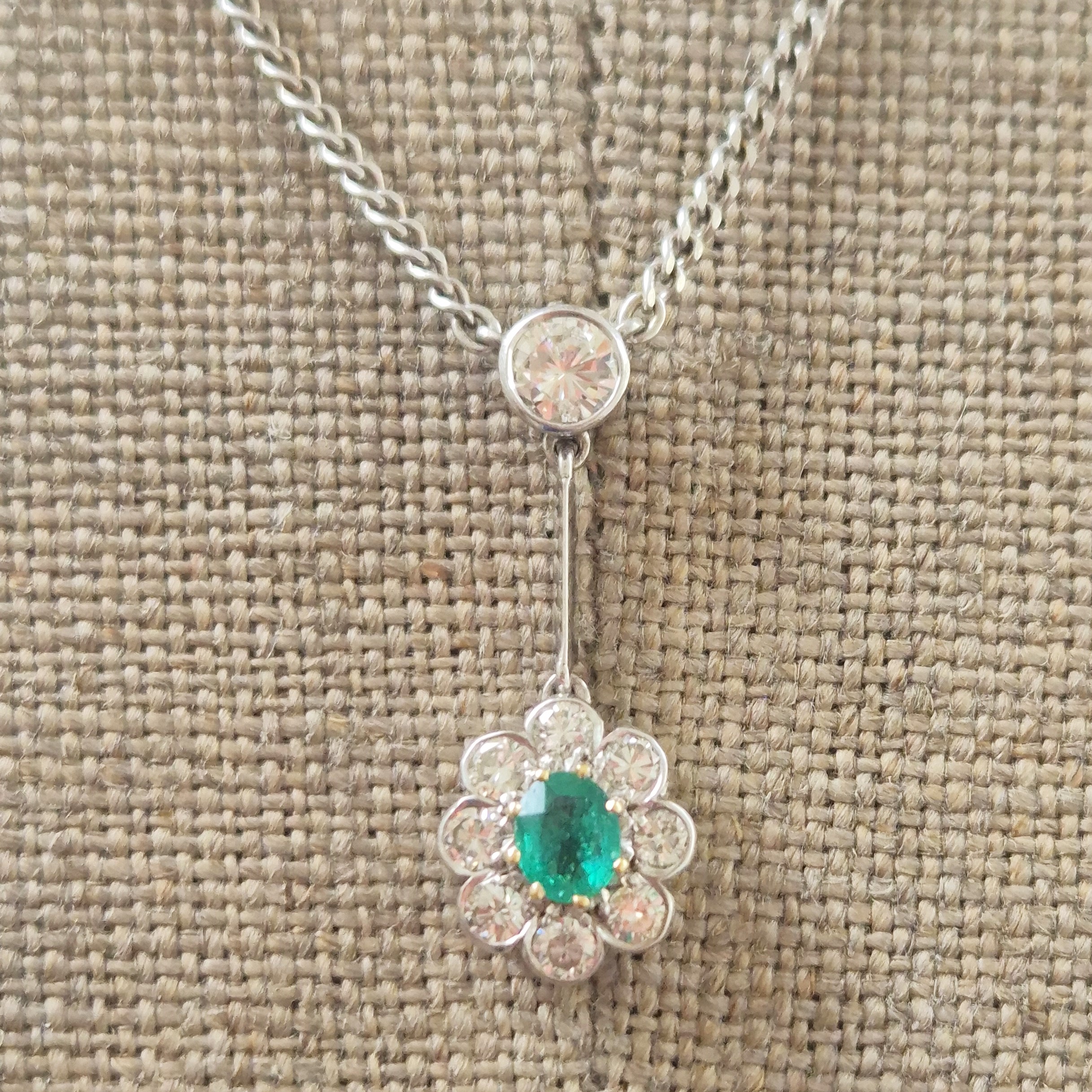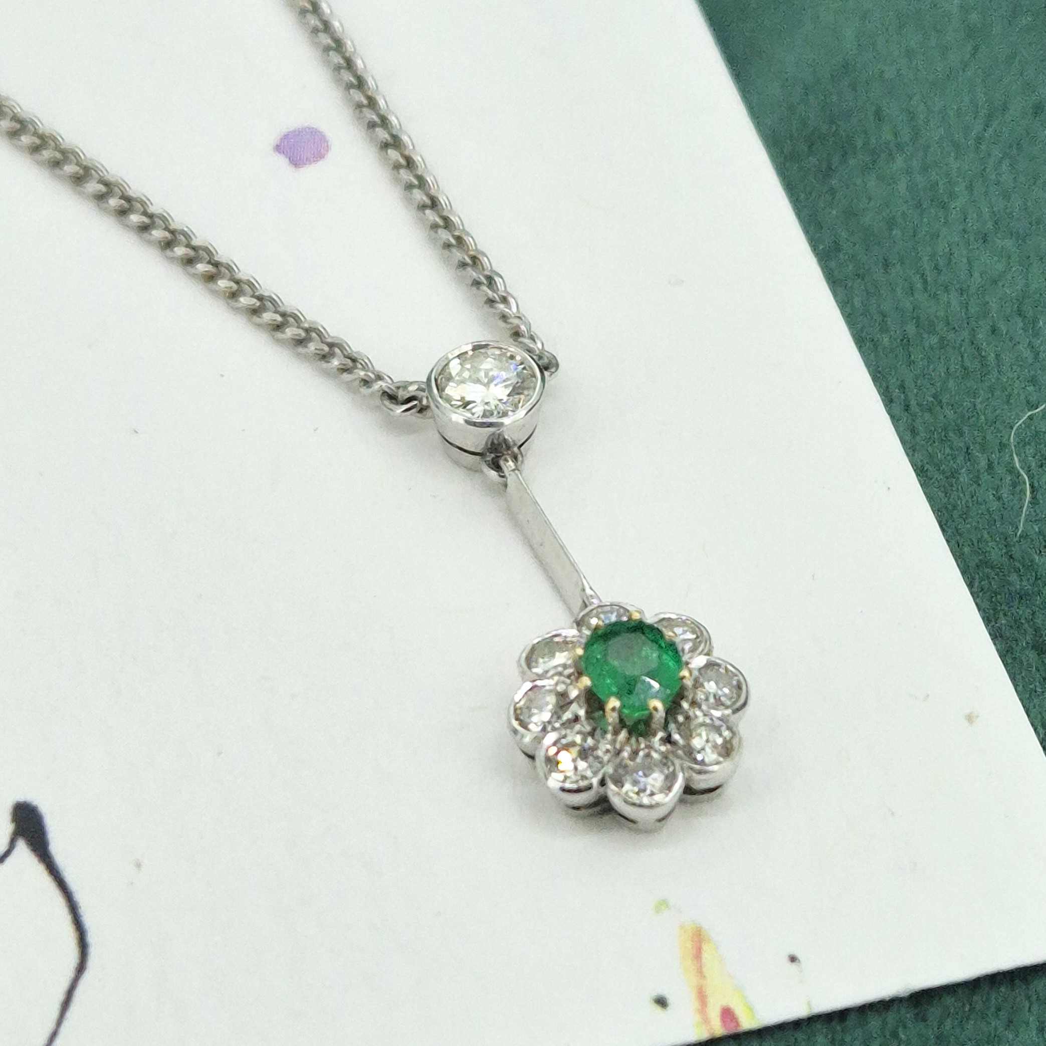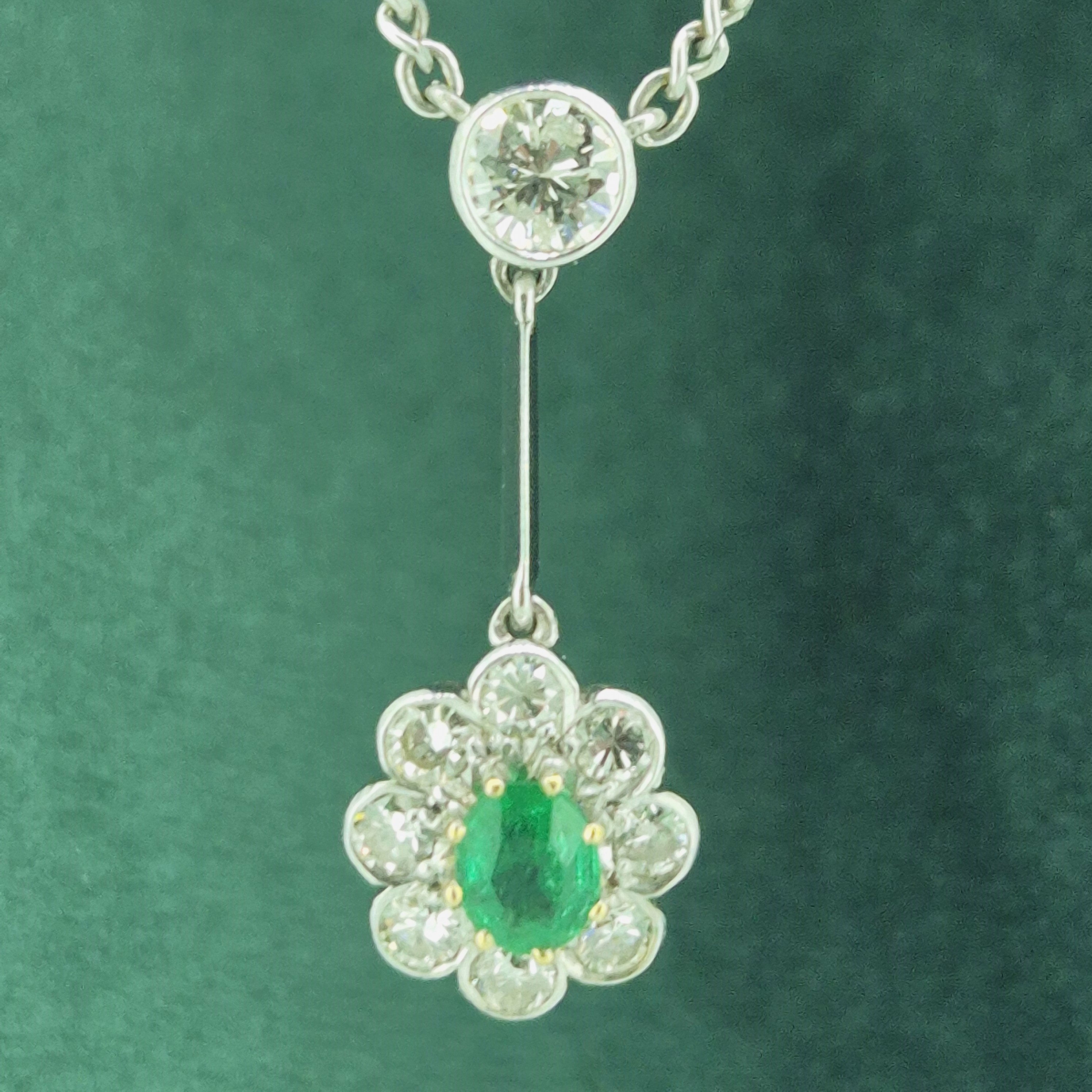 A stunning Handmade Emerald and Diamond Pendant crafted from 18ct White Gold.