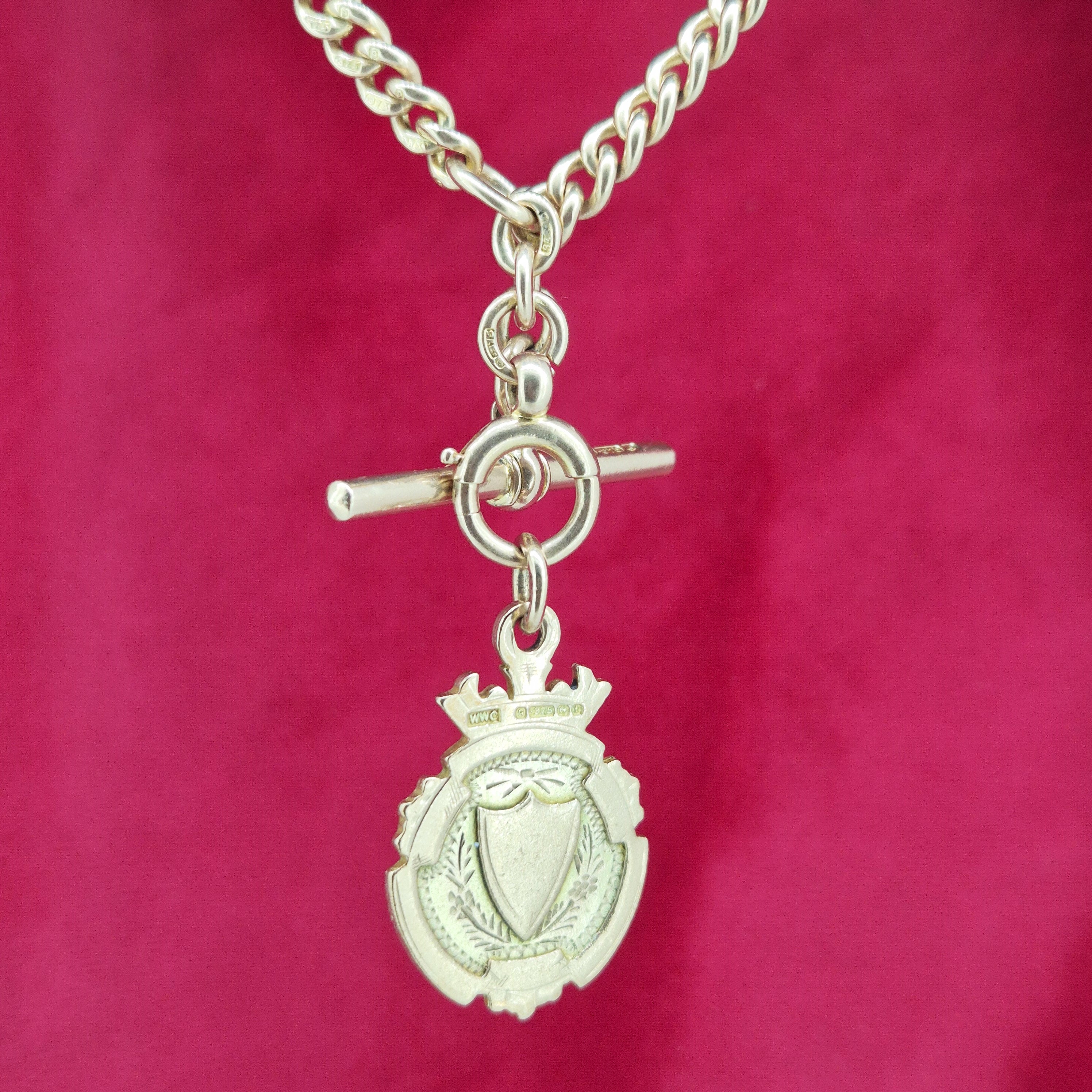 It is fitted with a T-Bar in the centre, which hangs from the chain using extra links. The T-Bar measures 32mm in length and is stamped by J.G & S.