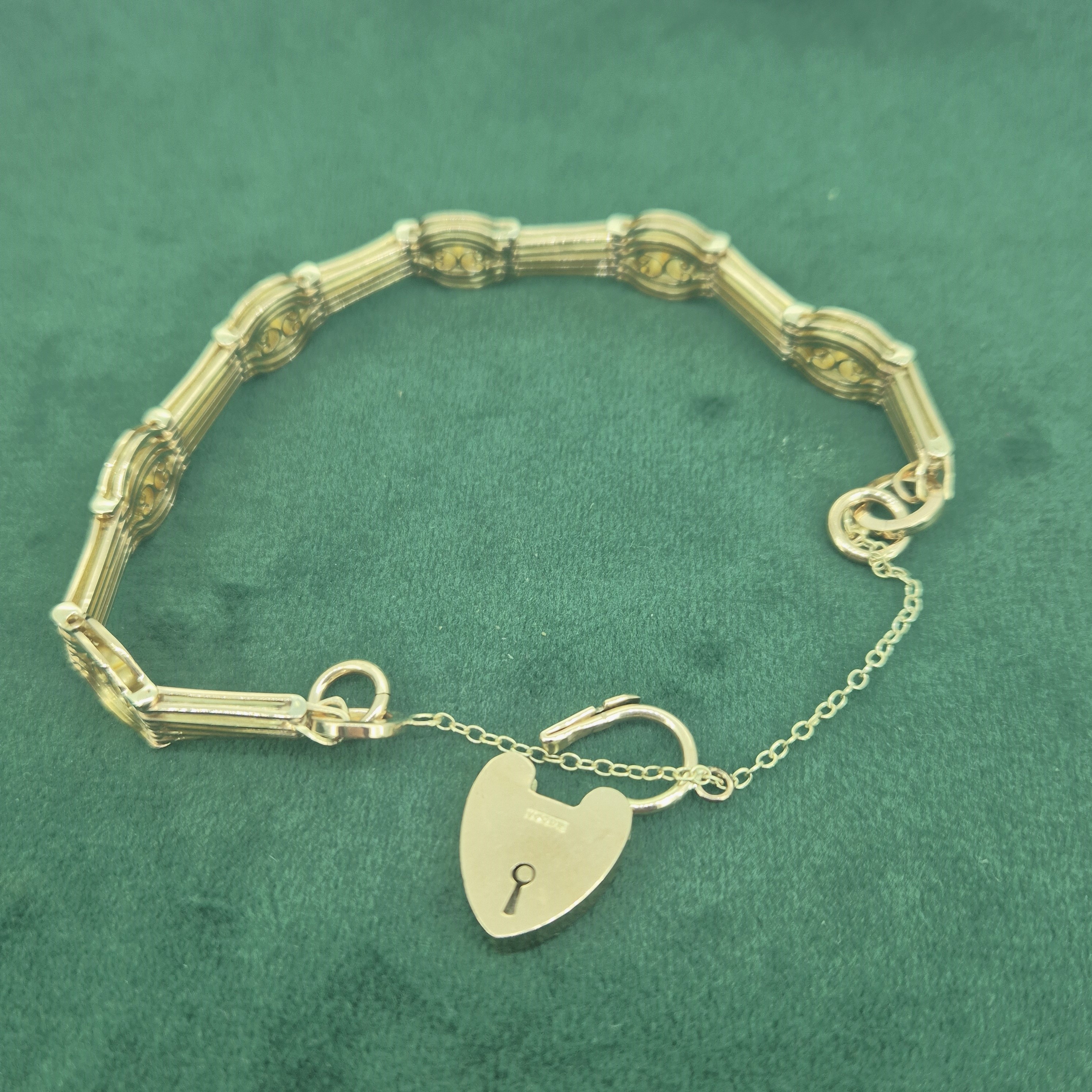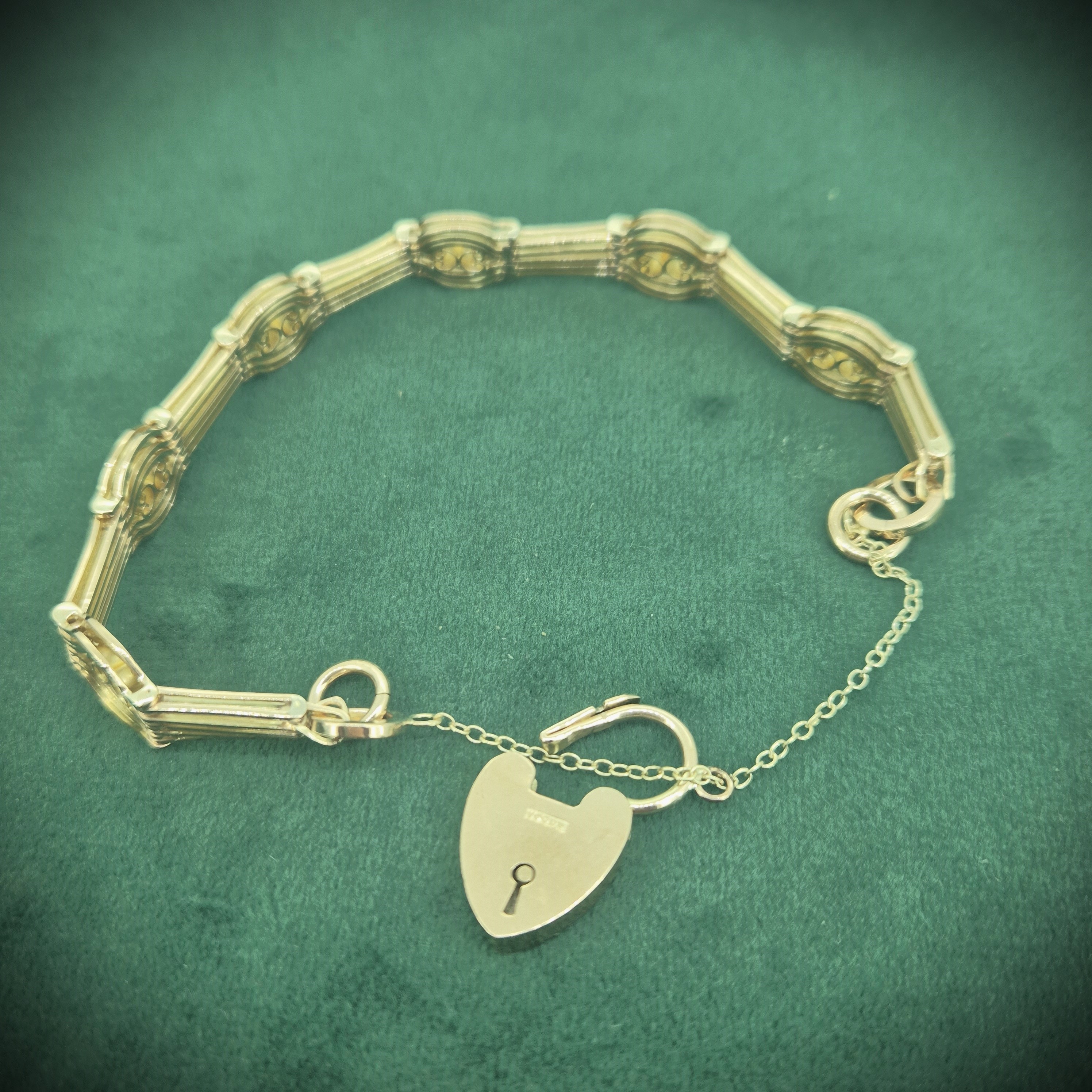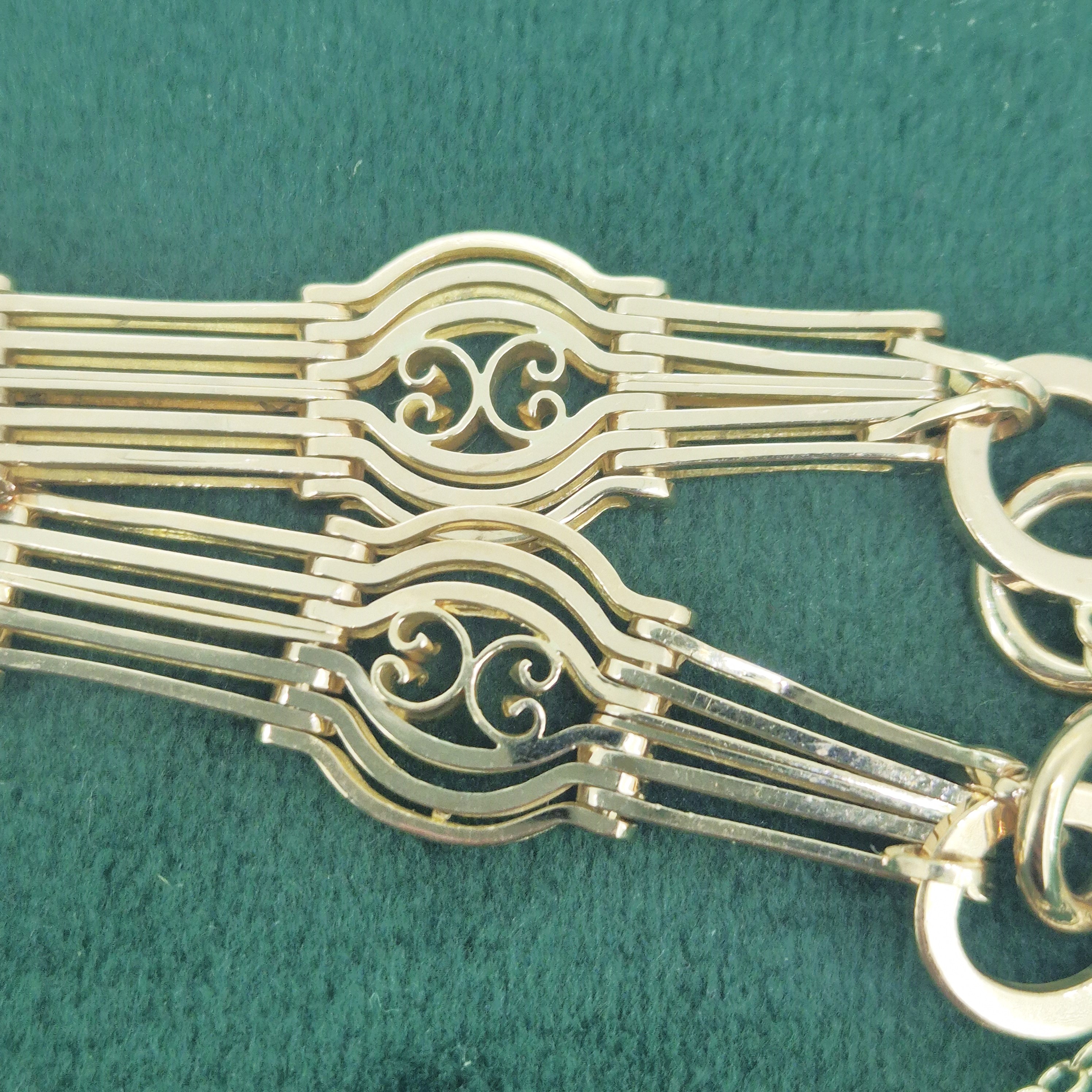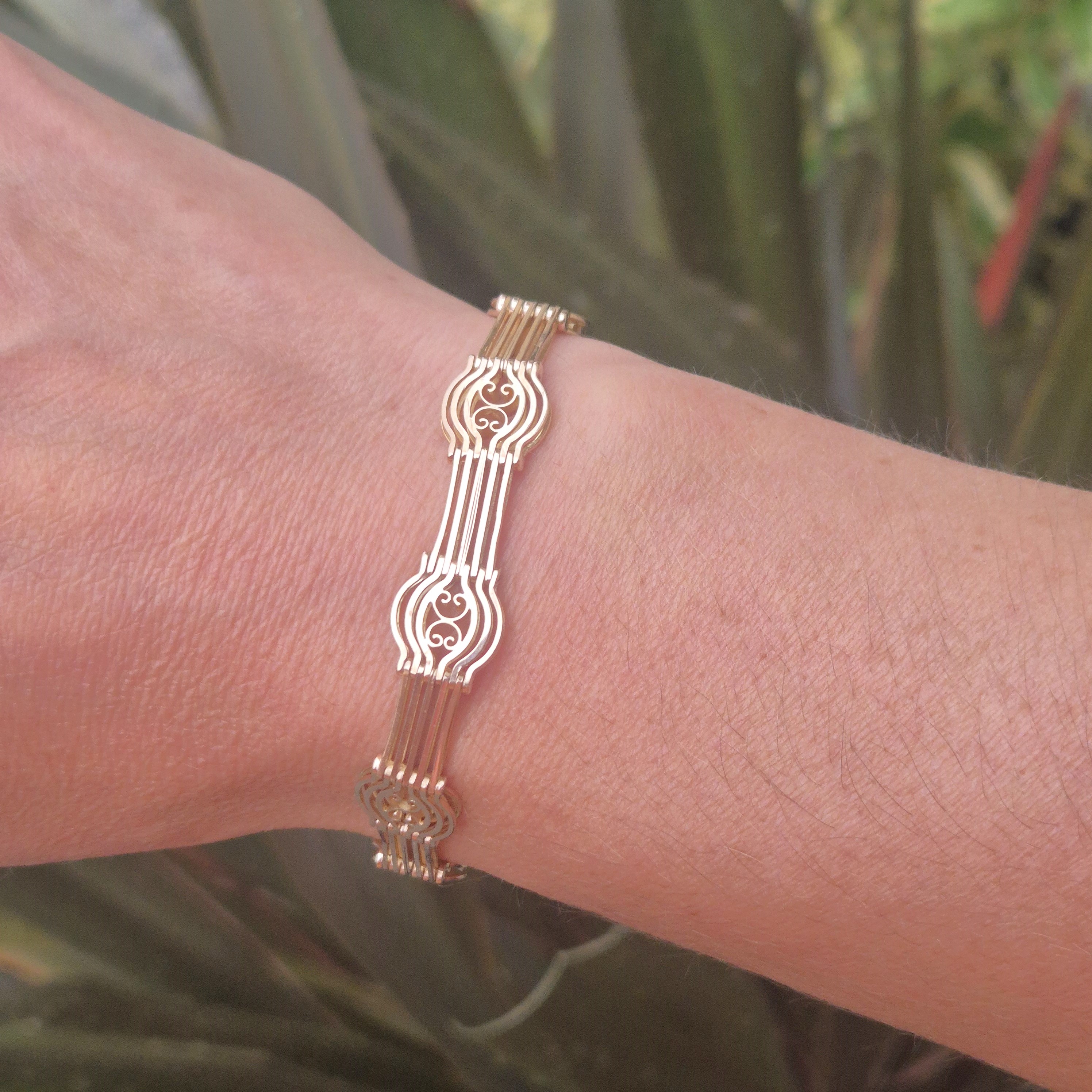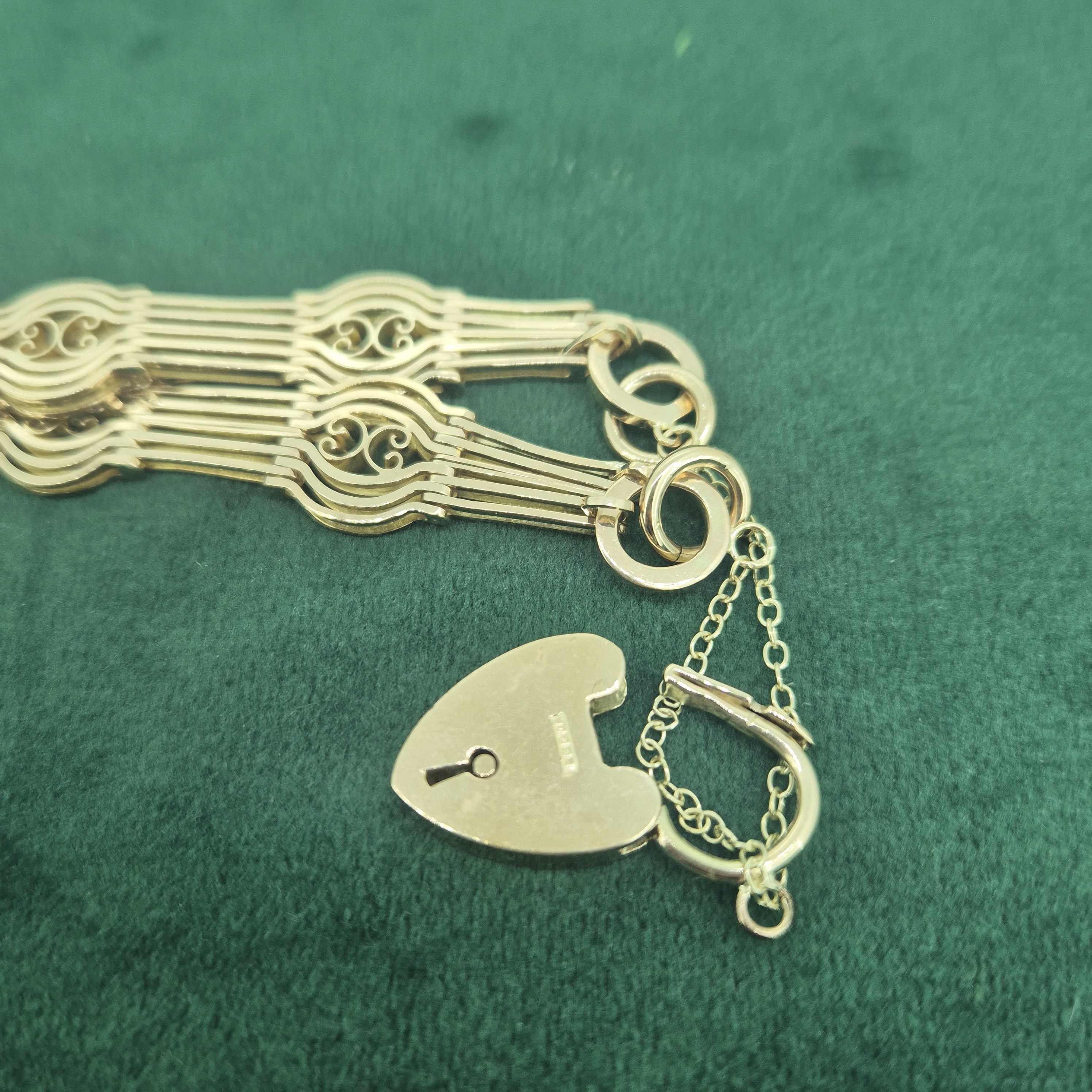 A fancy Antique Gate Bracelet crafted from 9ct Yellow Gold.
