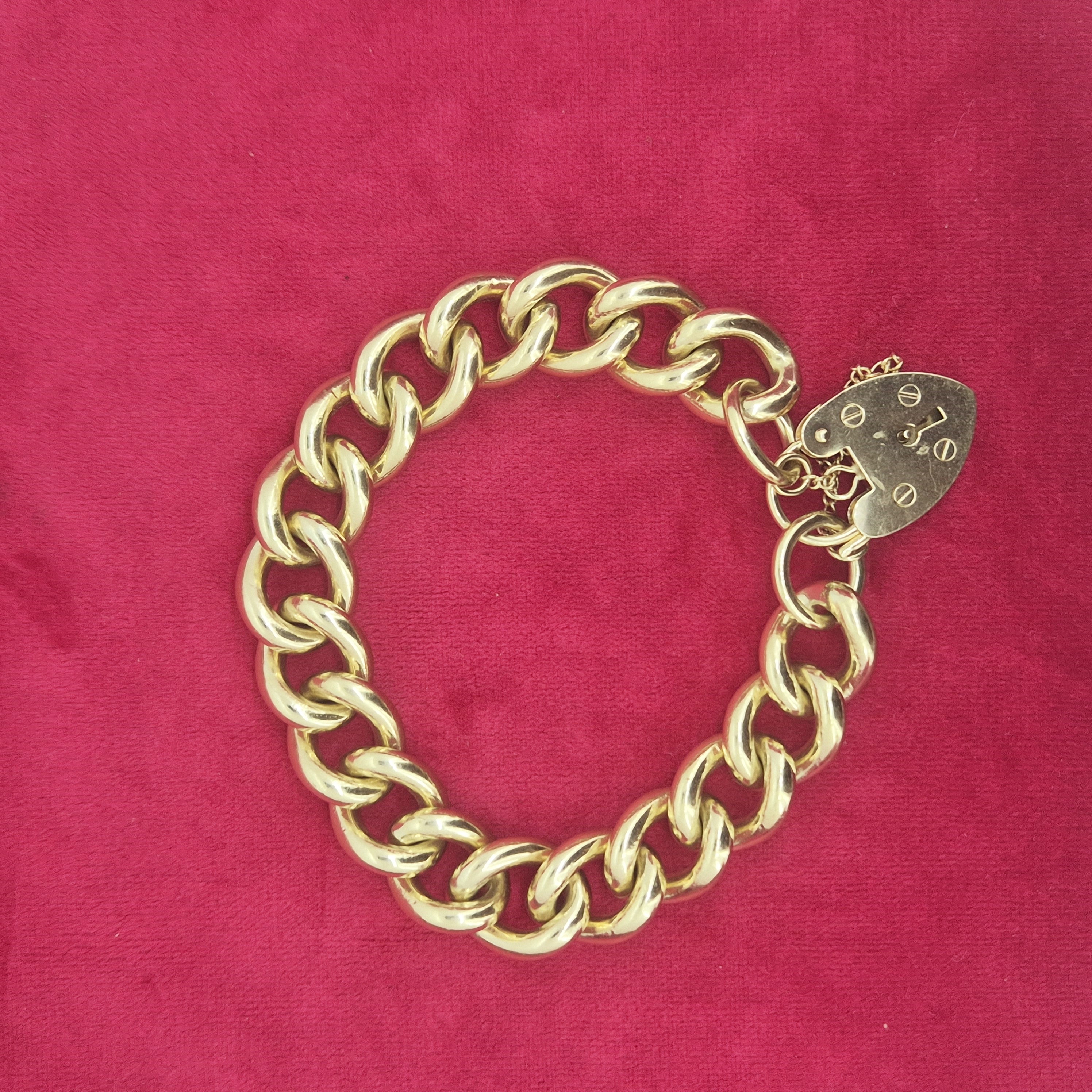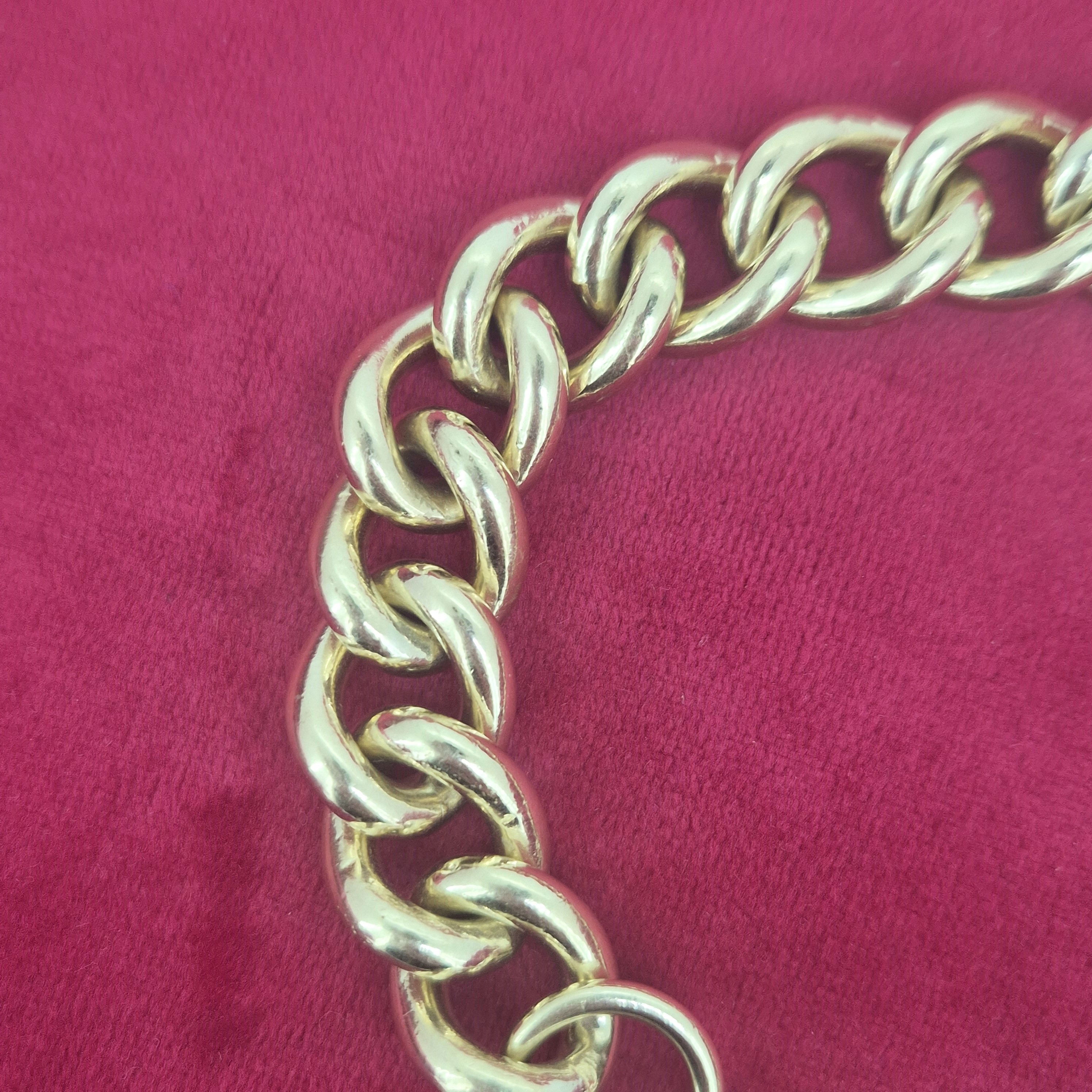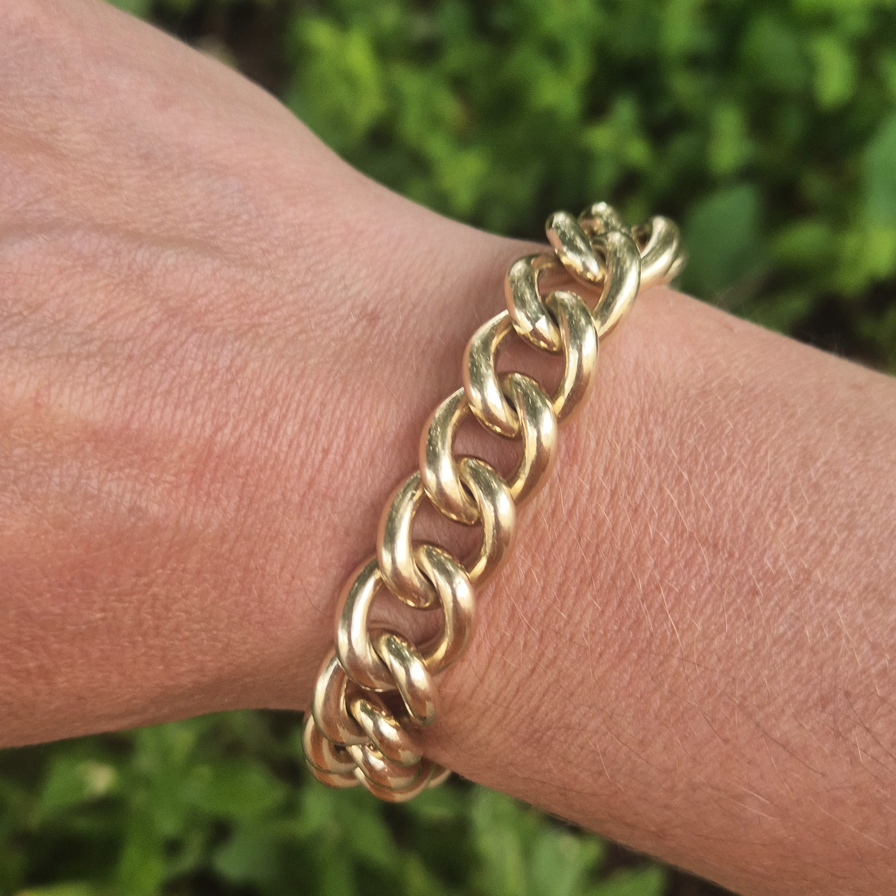 This bracelet is made using solid Traditional Curb links that measure 13mm in width. It weighs an impressive 75.4 grams and feels lovely on the wrist. It can be worn as it is or it can have Vintage charms attached.
