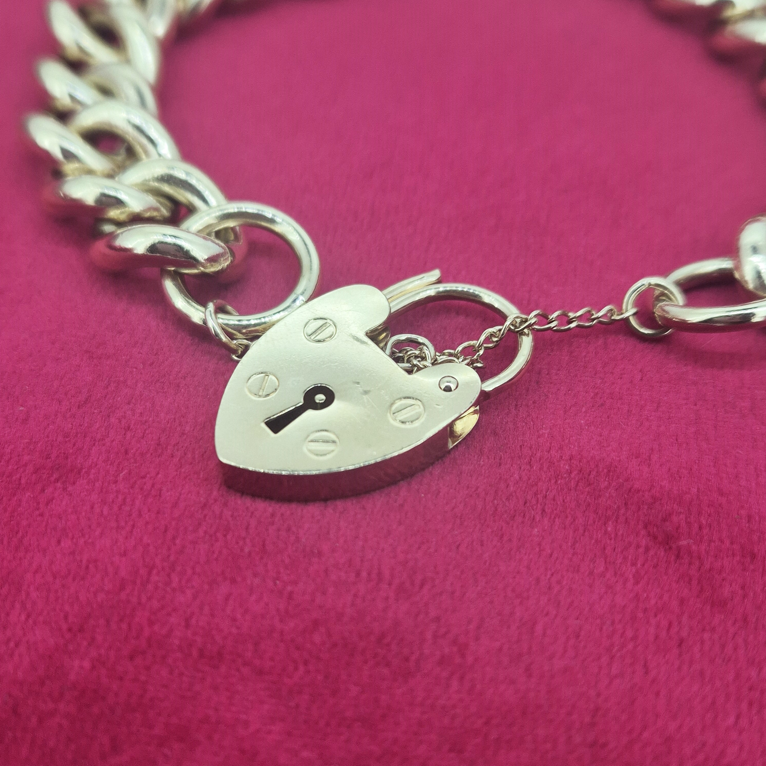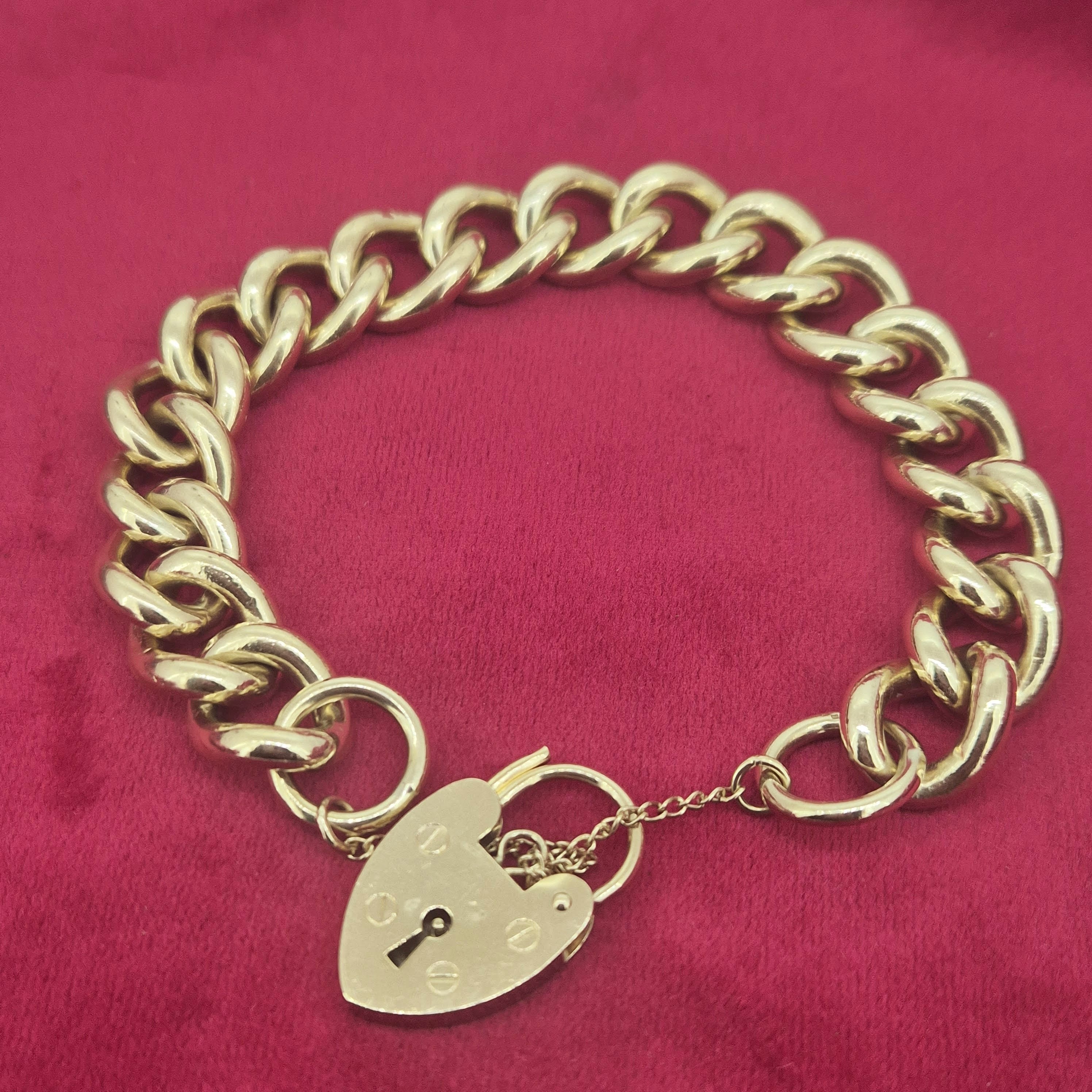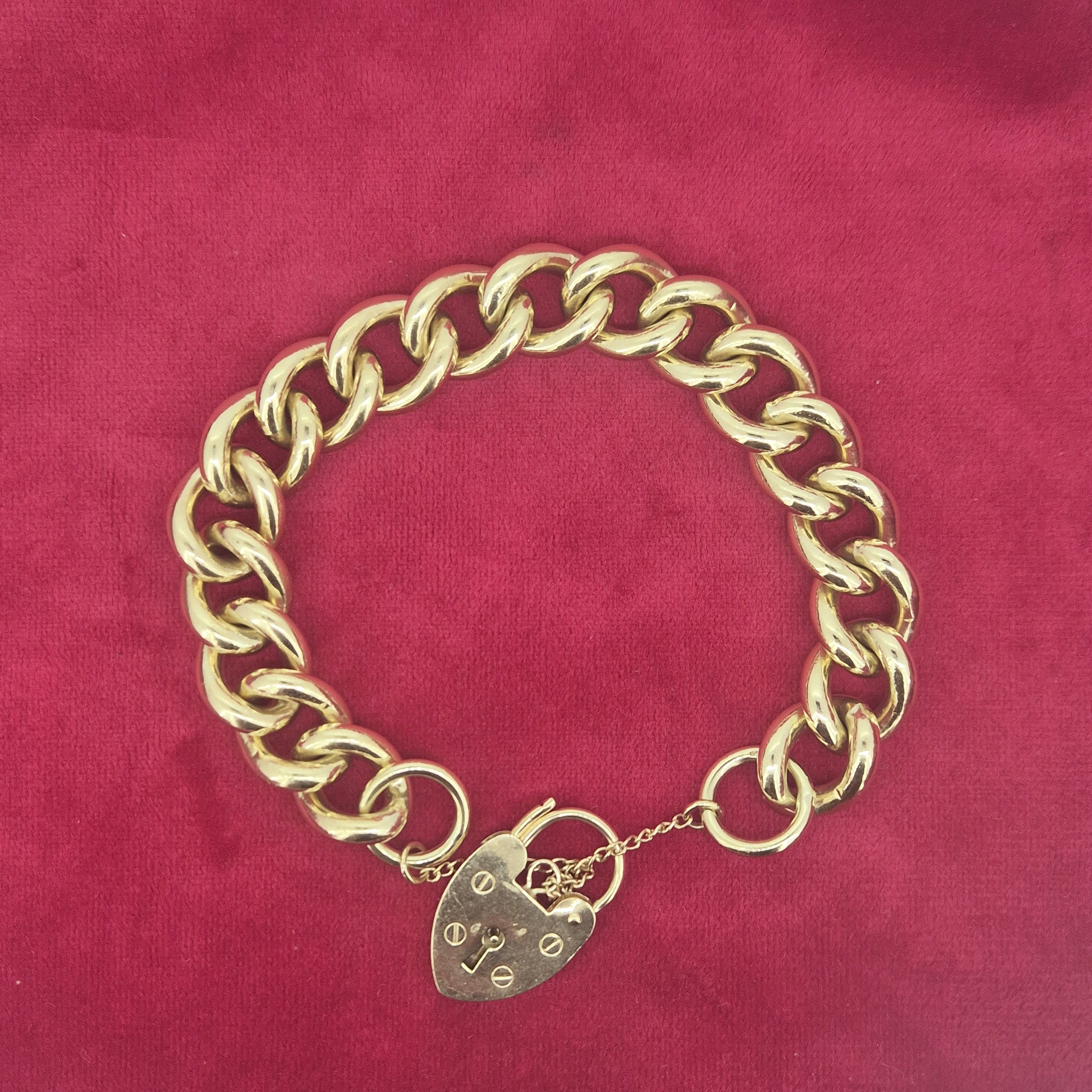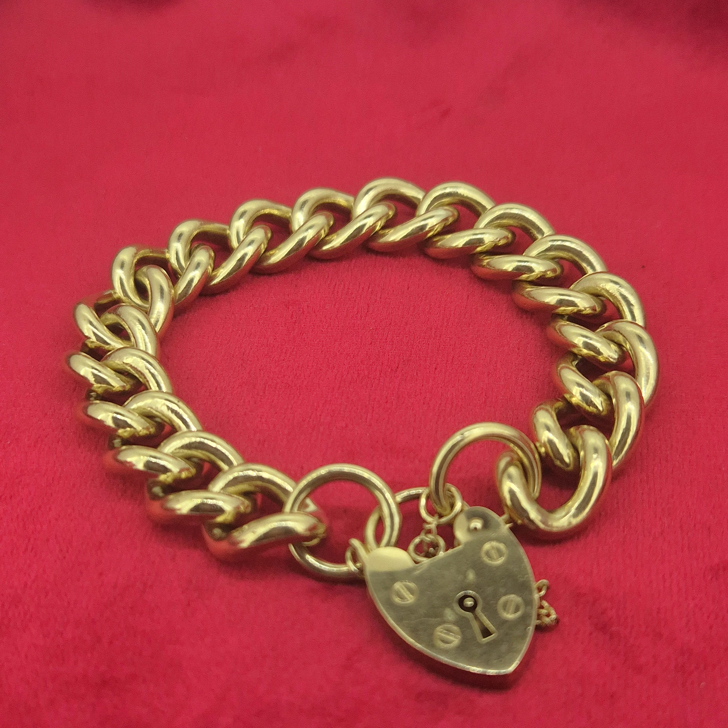 This bracelet is made using solid Traditional Curb links that measure 13mm in width. It weighs an impressive 75.4 grams and feels lovely on the wrist. It can be worn as it is or it can have Vintage charms attached.
