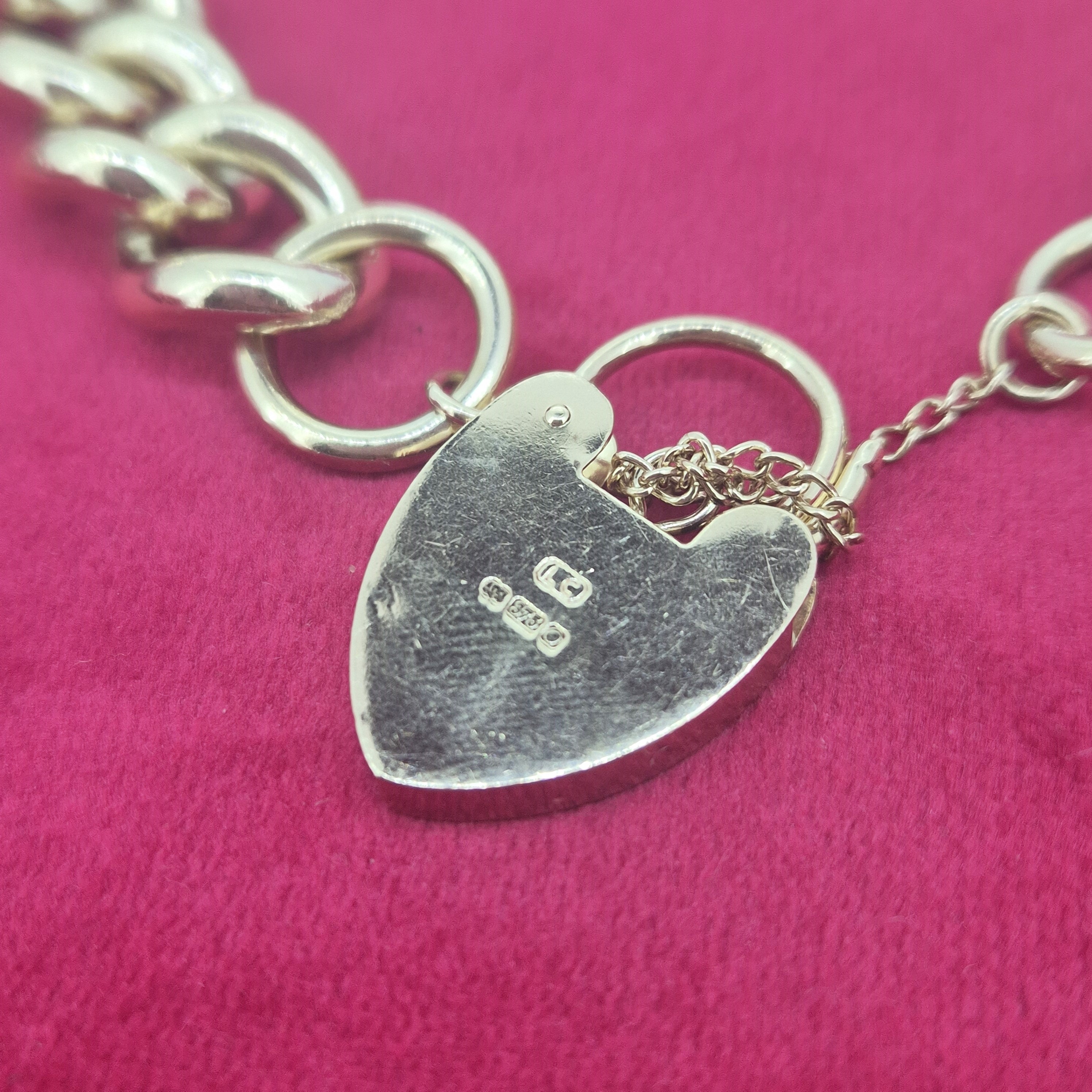 It will fit an 18cm wrist and is secured using a solid heart padlock and safety chain.