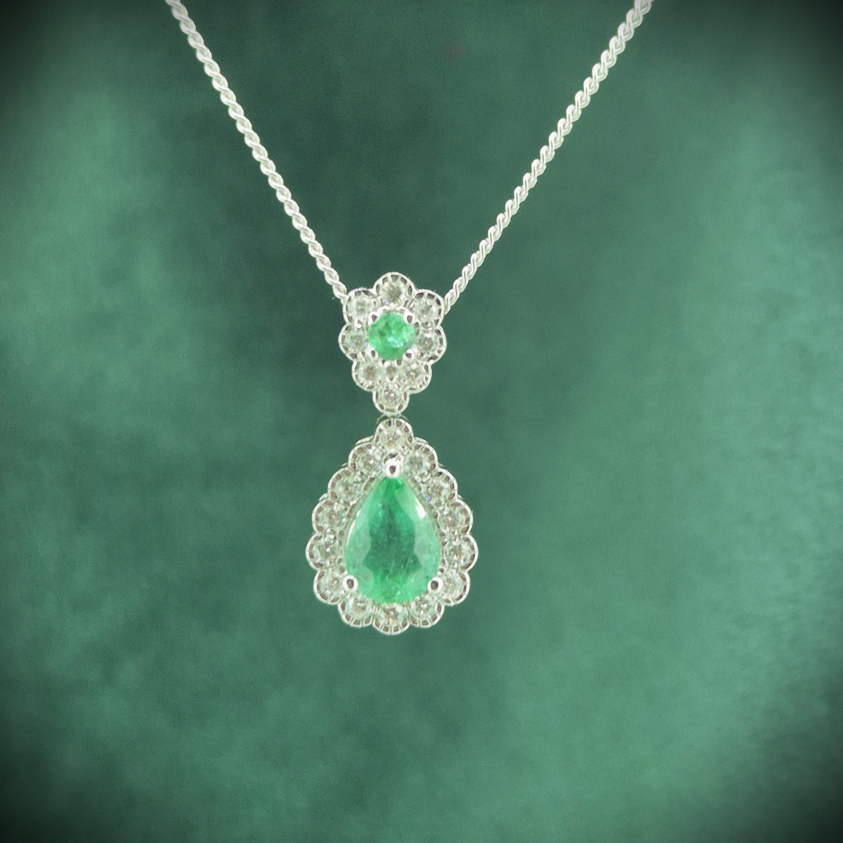 A stunning Emerald and Diamond Pendant crafted from 18ct White Gold.