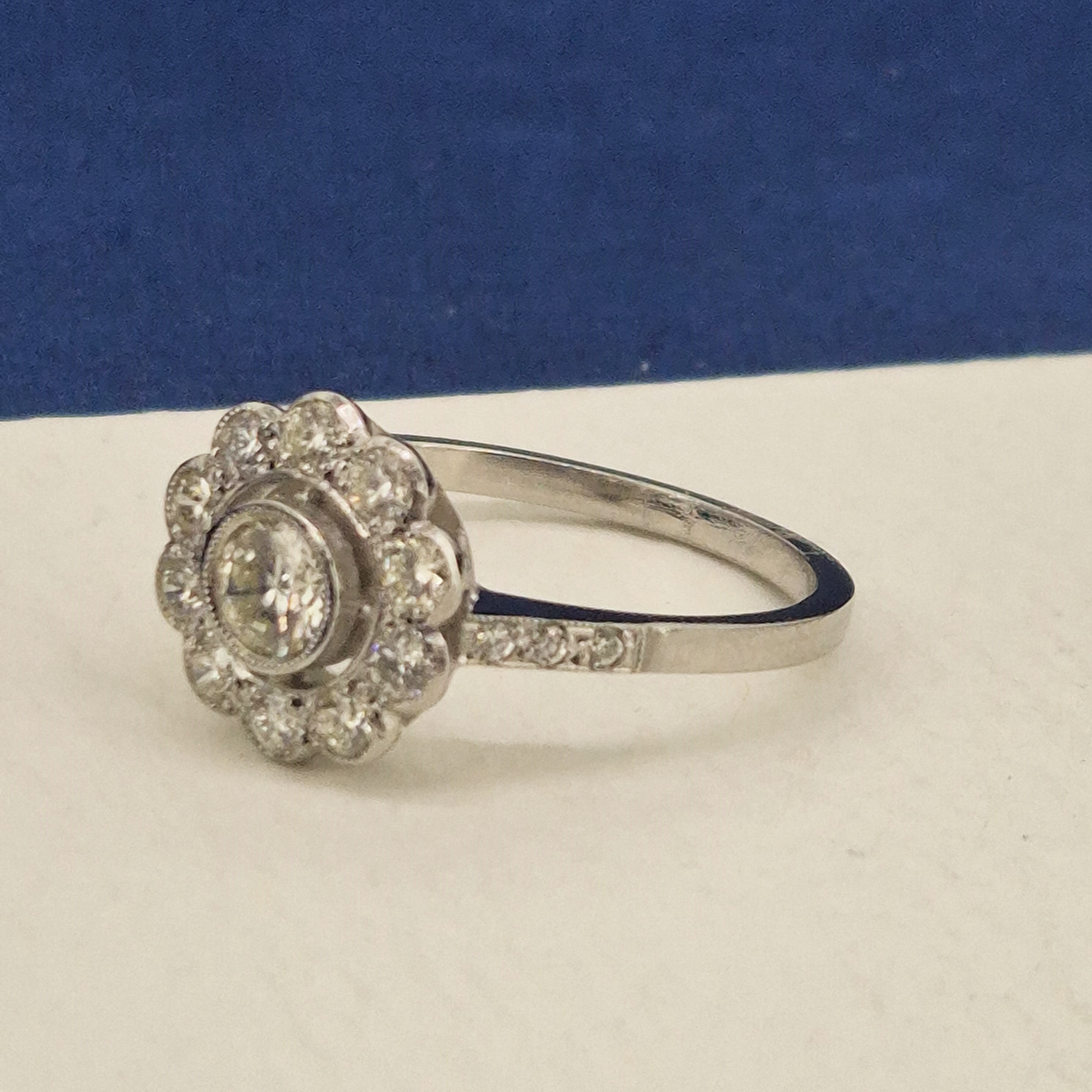 A beautiful Diamond Daisy Cluster Ring crafted from Platinum.