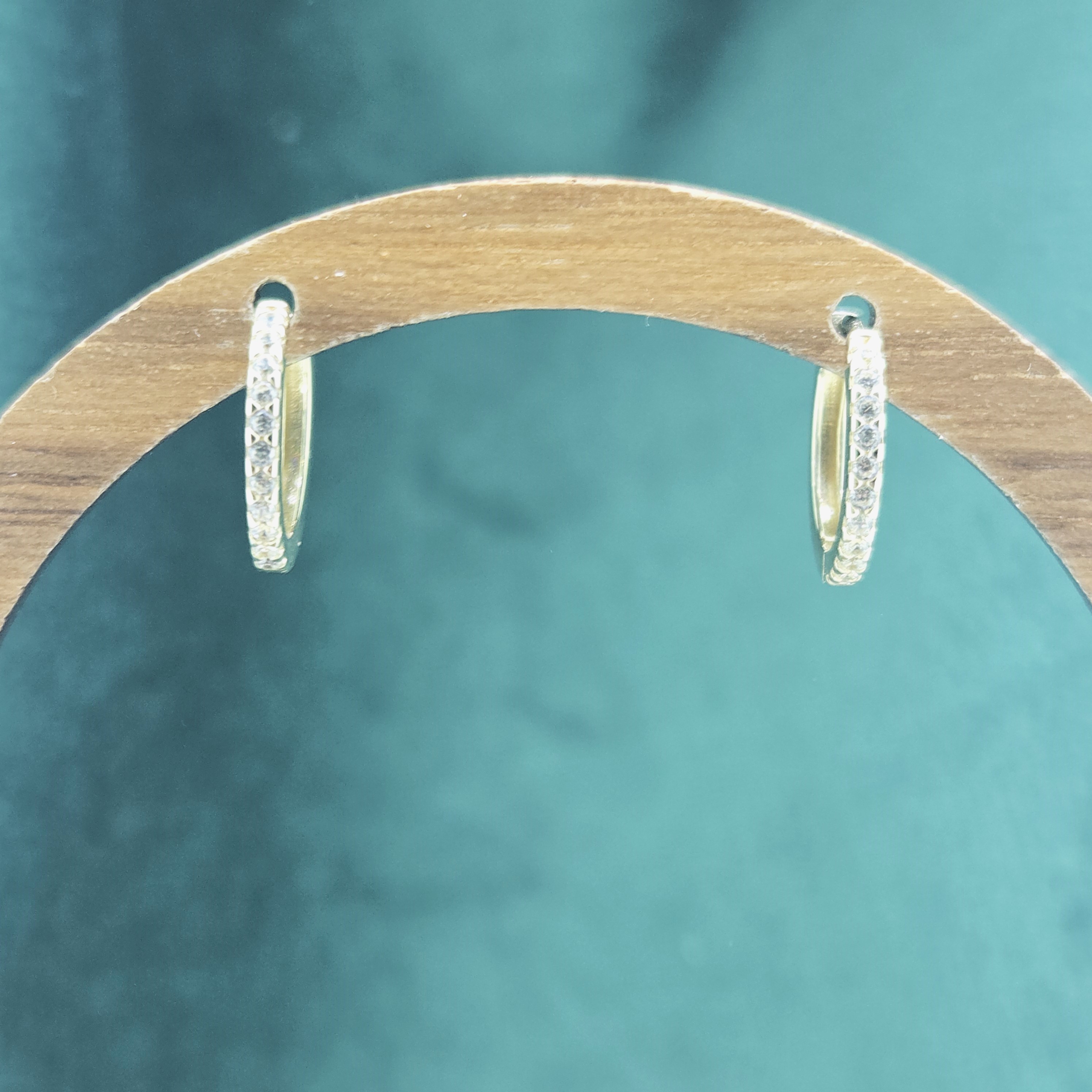 A pair of CZ Huggie Hoop Earrings crafted from 9ct Yellow Gold.