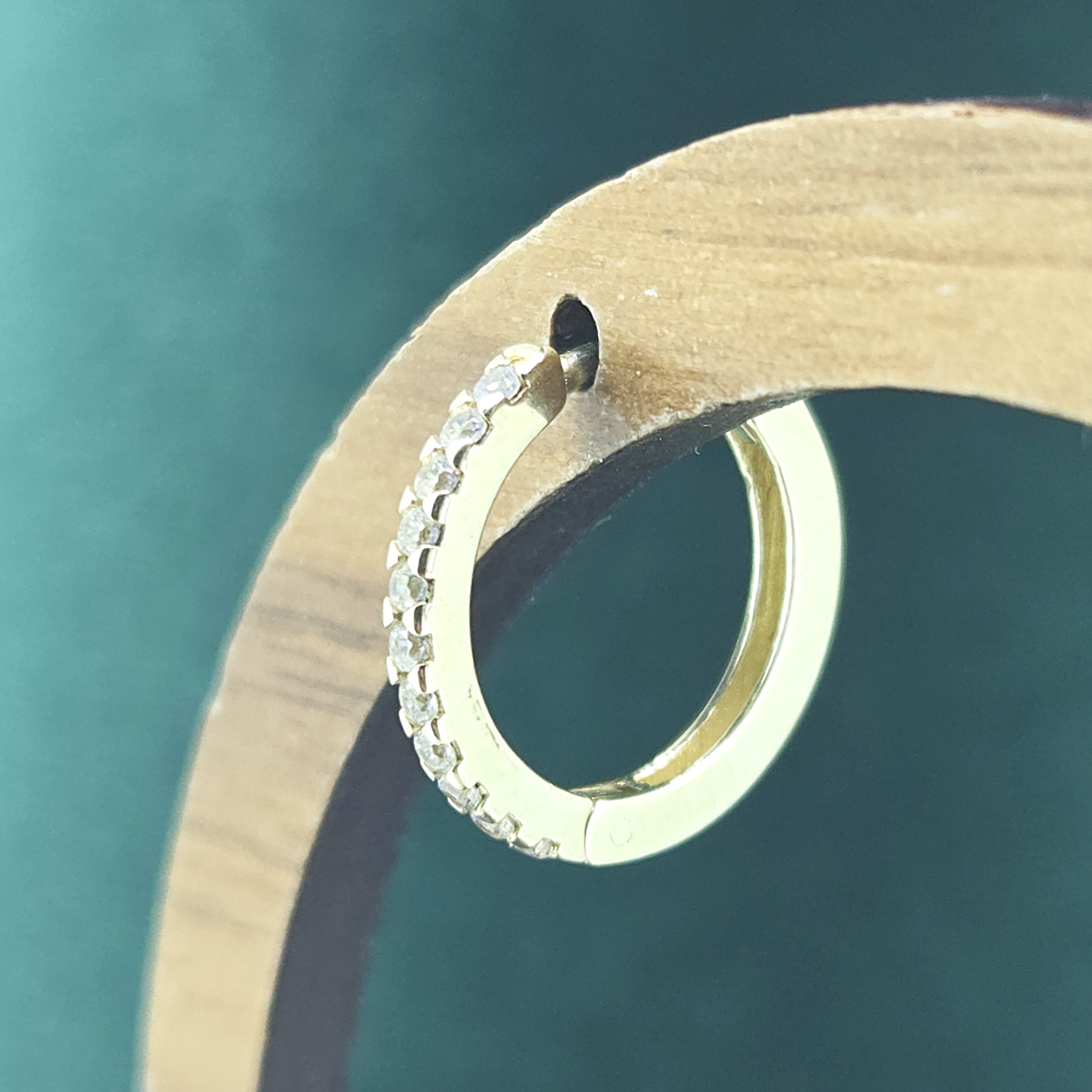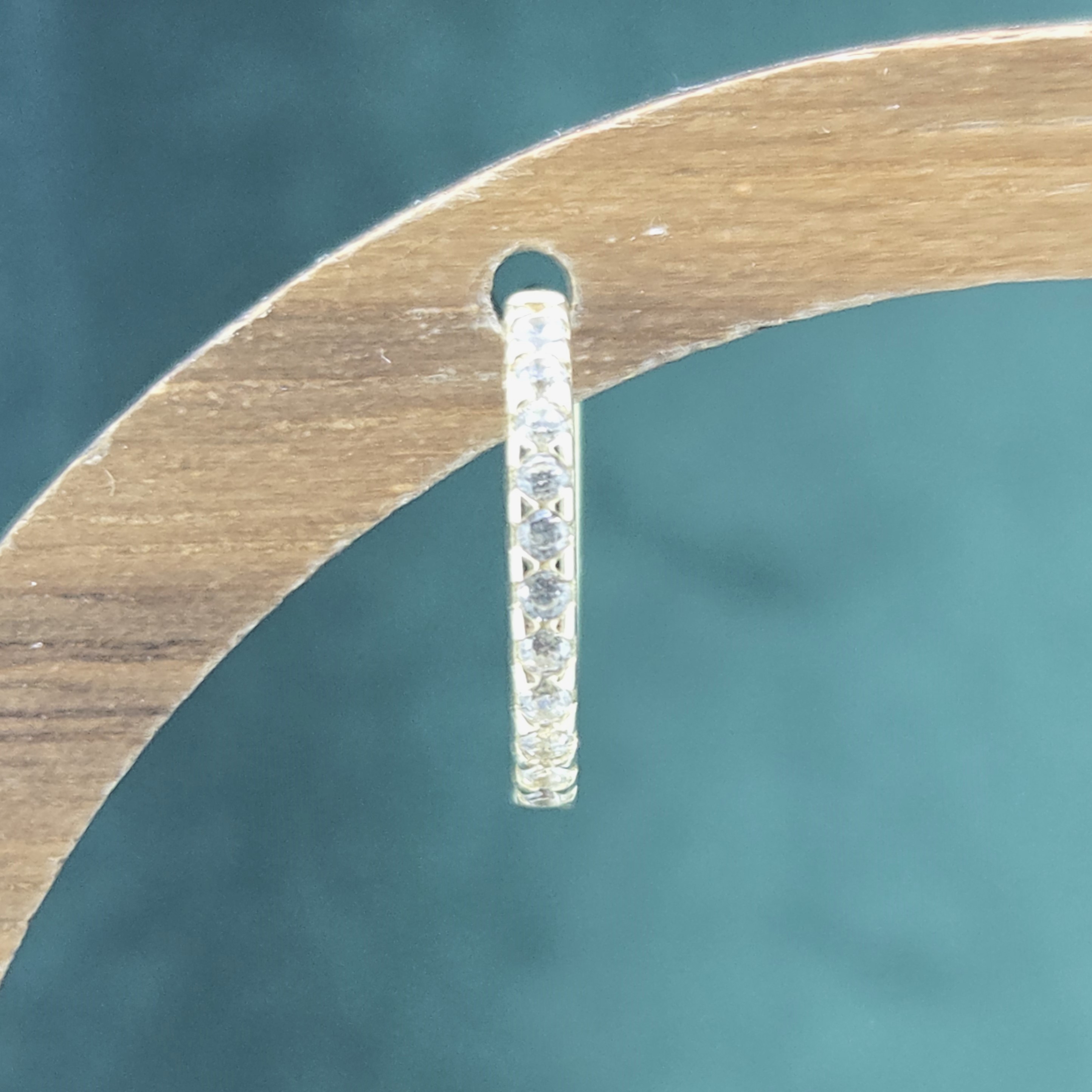They measure 12mm in diameter and 1.5mm in width. They are claw set with CZ stones and weigh 1.2 grams.