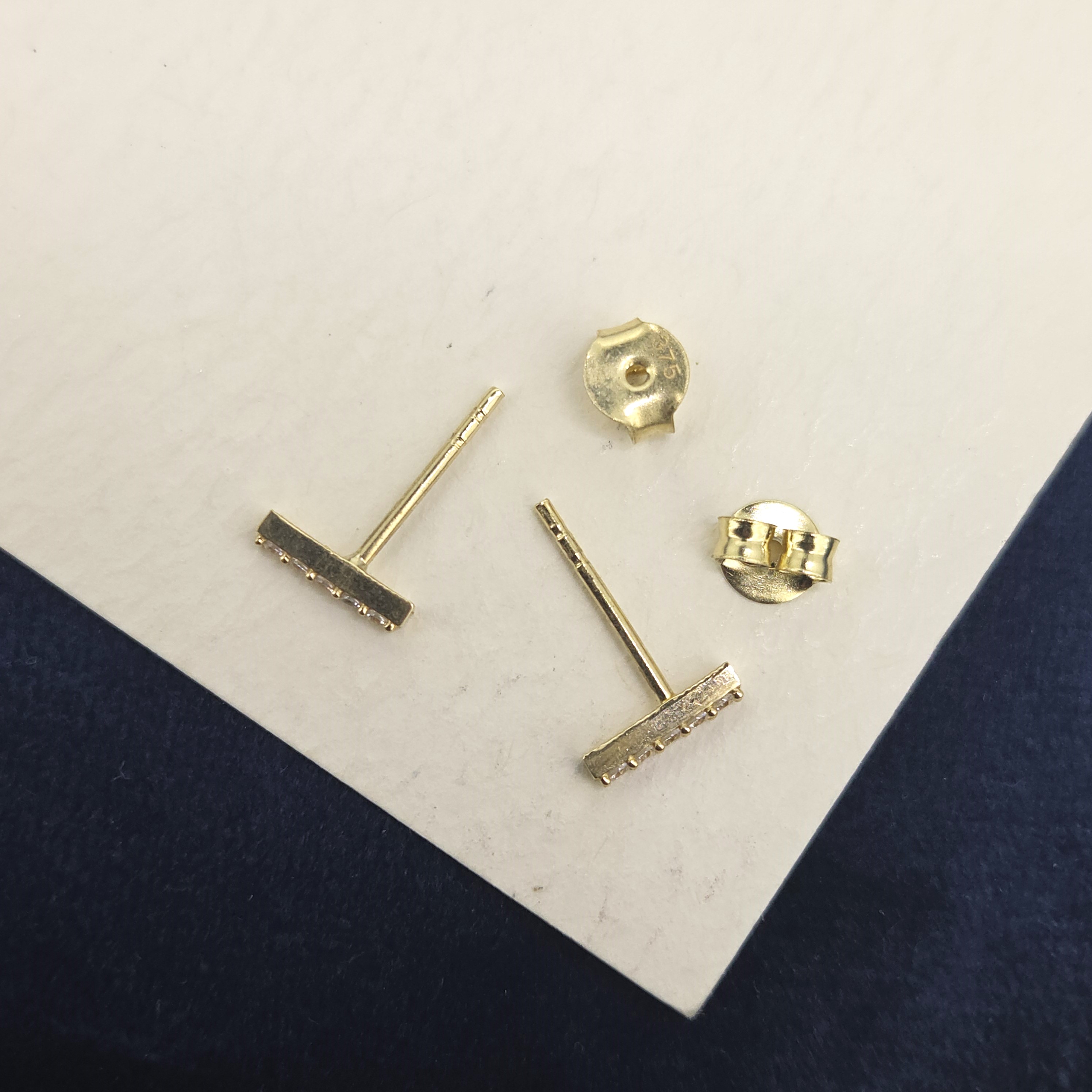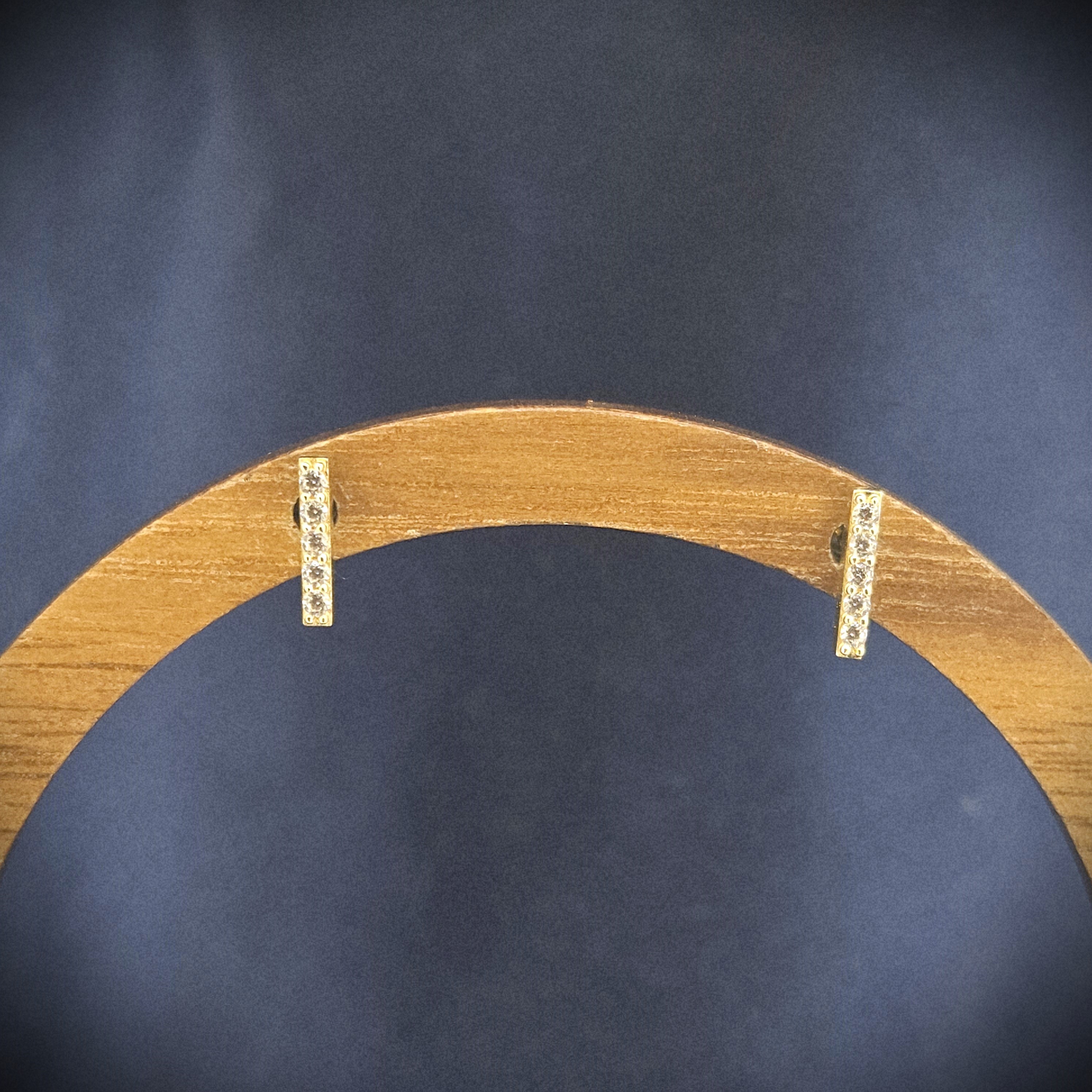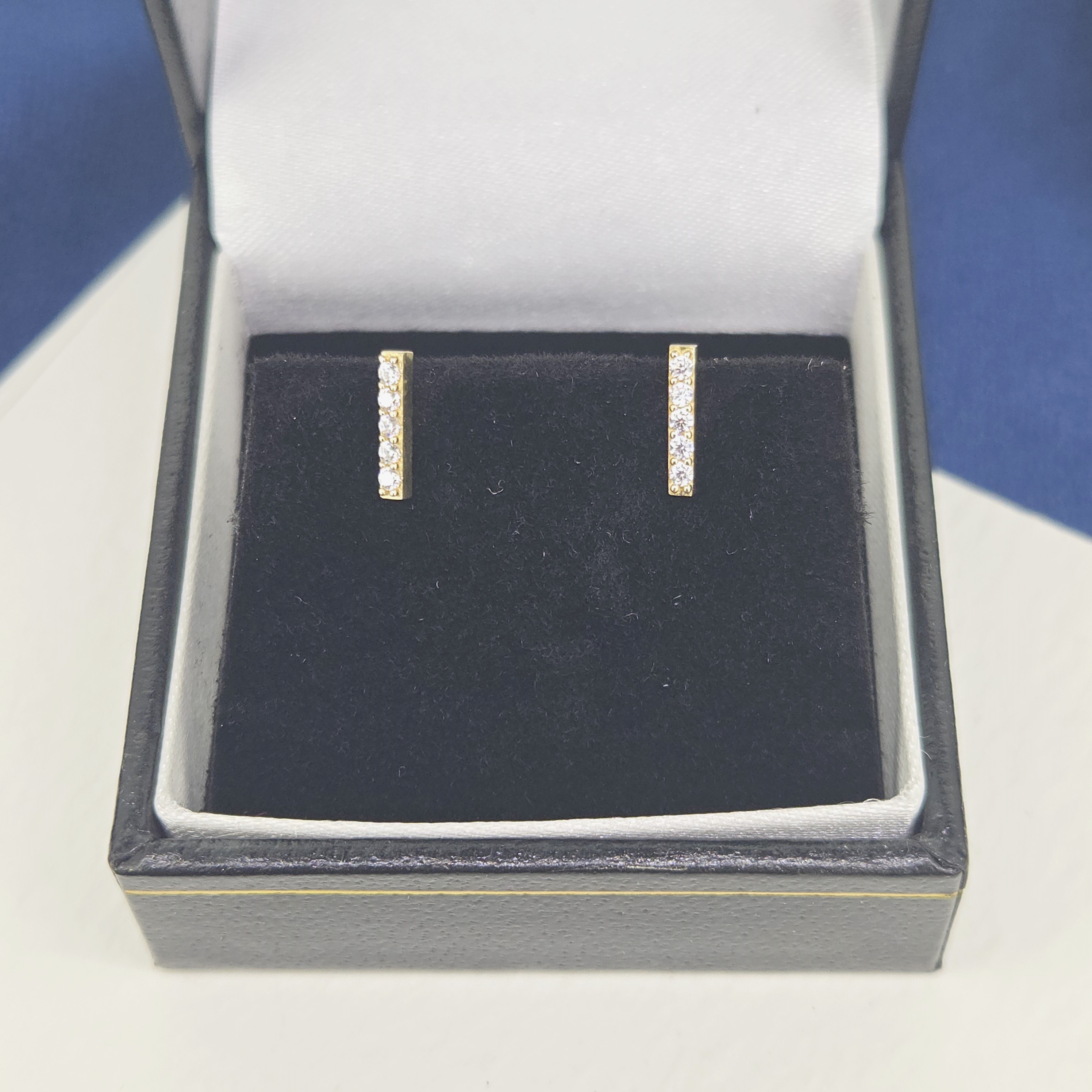 A pair of CZ Set Bar Stud Earrings crafted from 9ct Yellow Gold.