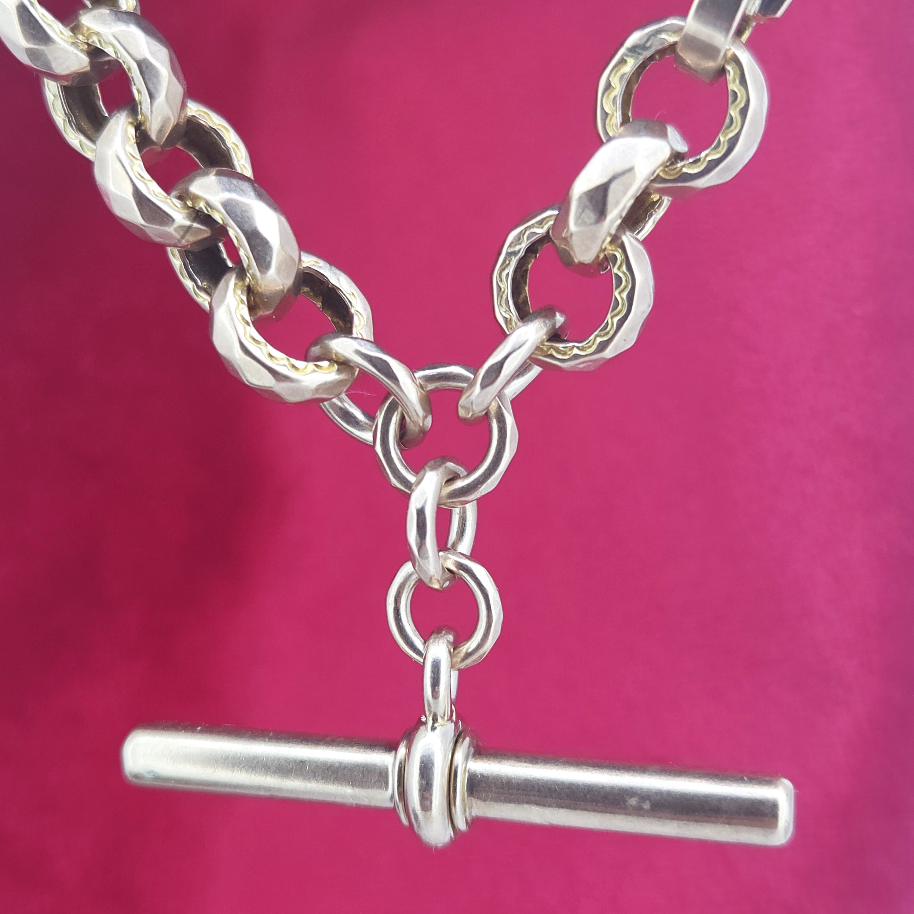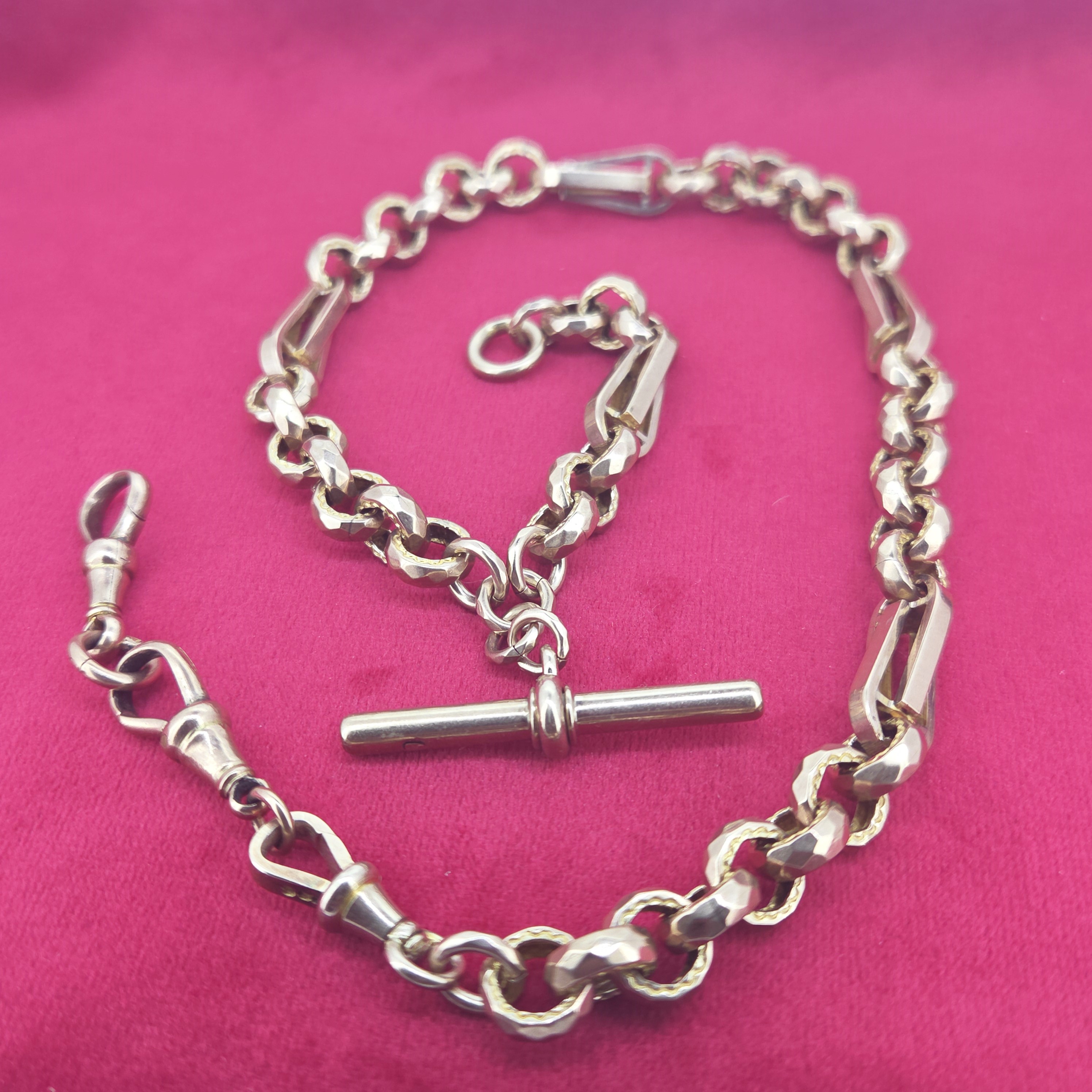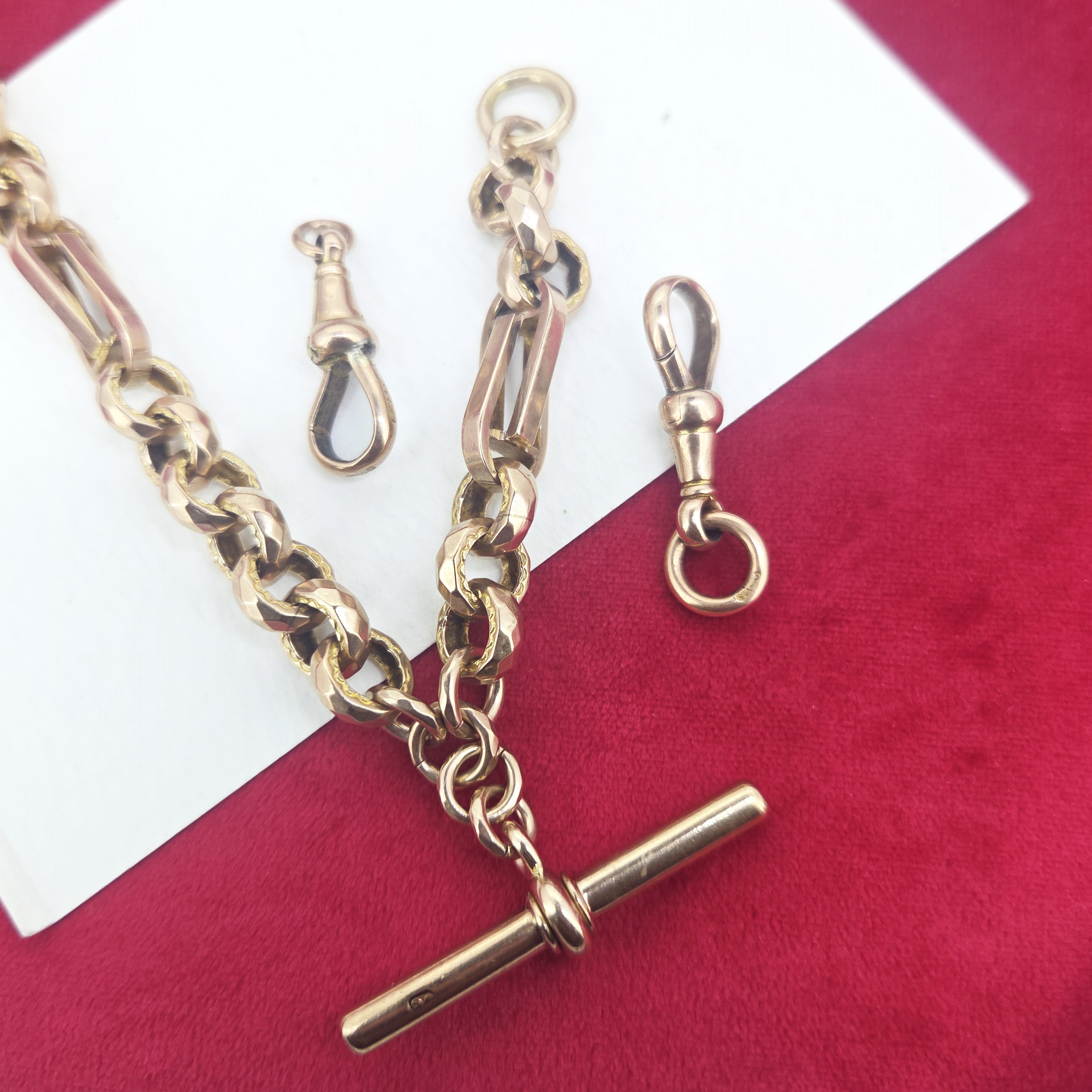 This Albert chain features substantial 10mm links that create a chunky, confident look while remaining surprisingly comfortable to wear. It looks heavier than it is, a hallmark of well-made Antique Jewellery.
