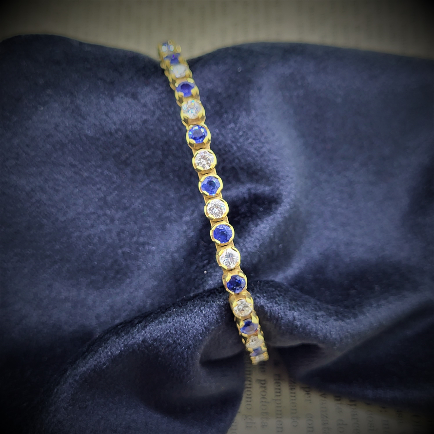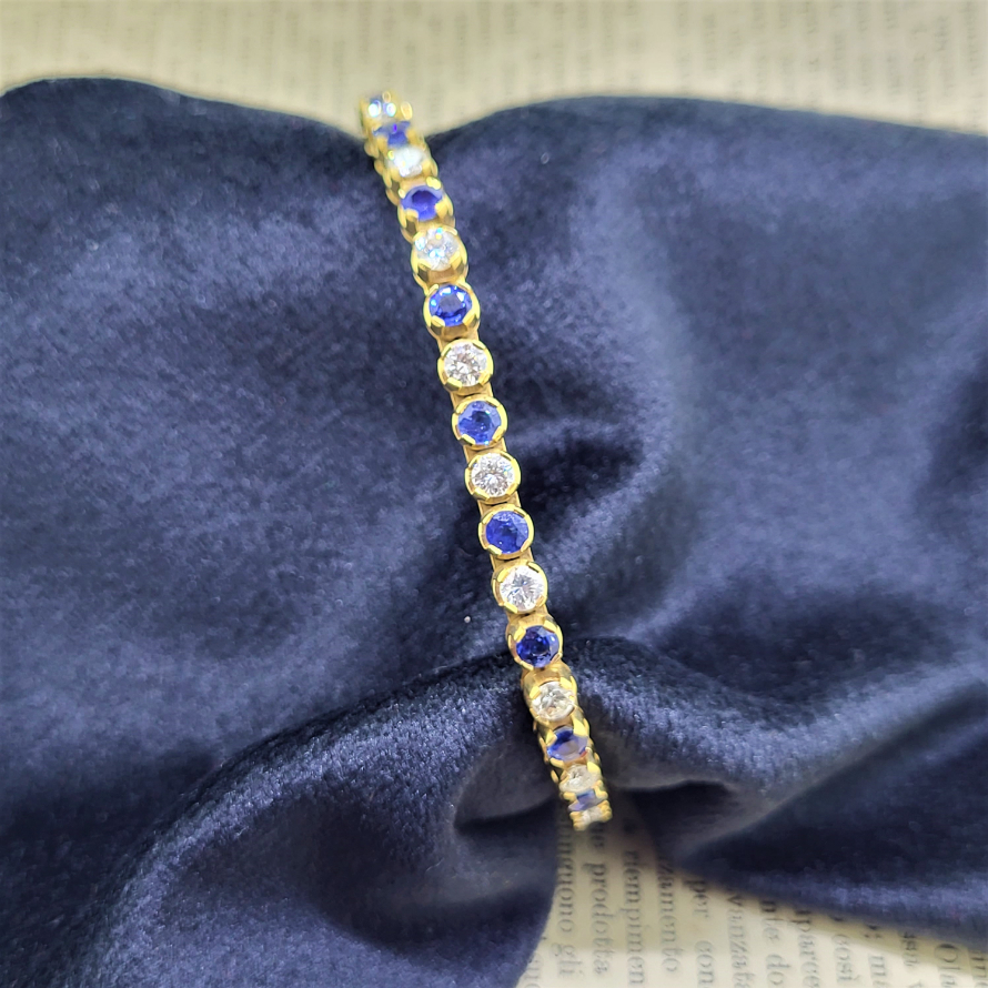 A fabulous Sapphire and Diamond Line Bracelet set in 18ct Yellow Gold.