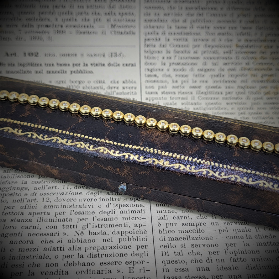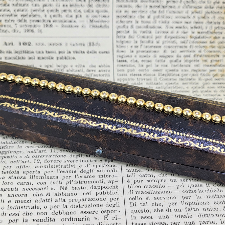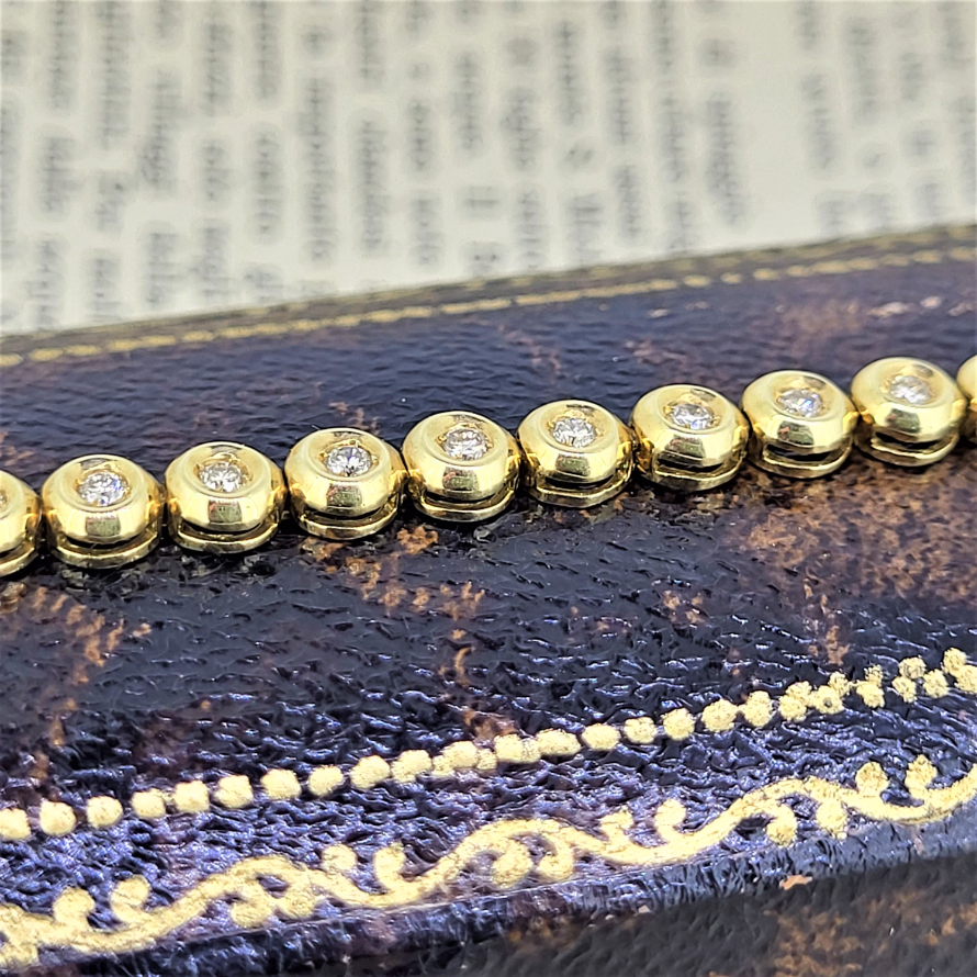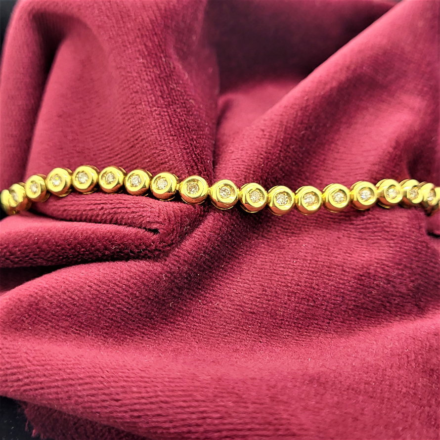 A beautiful diamond line bracelet set in 18ct yellow gold in a rub-over setting.