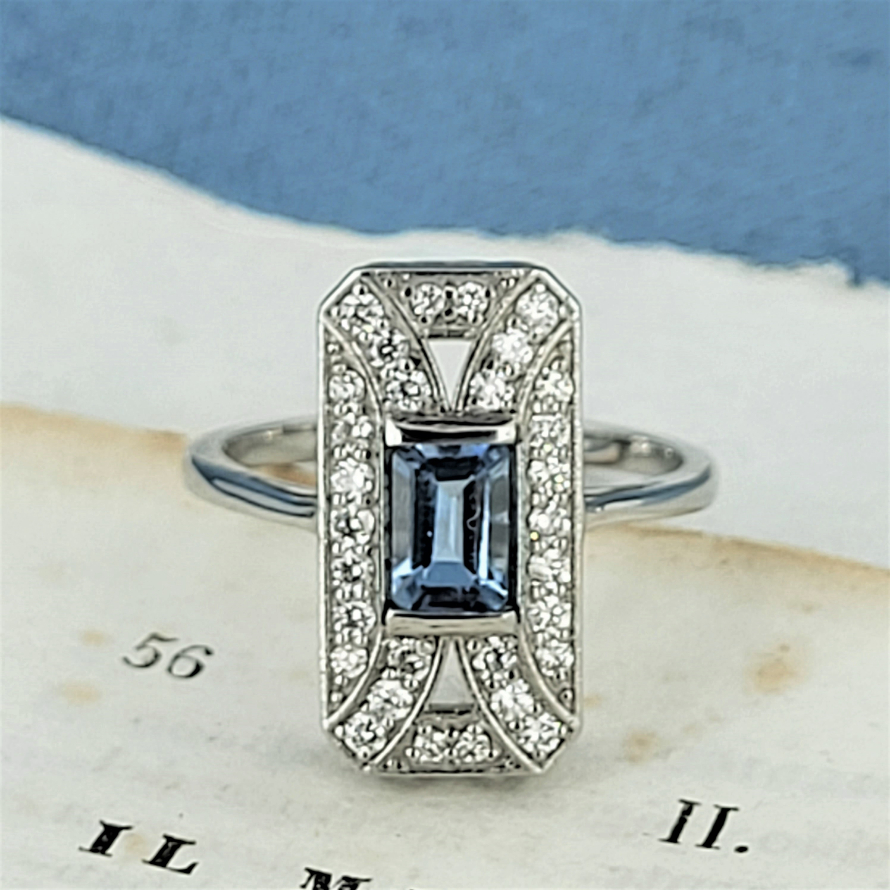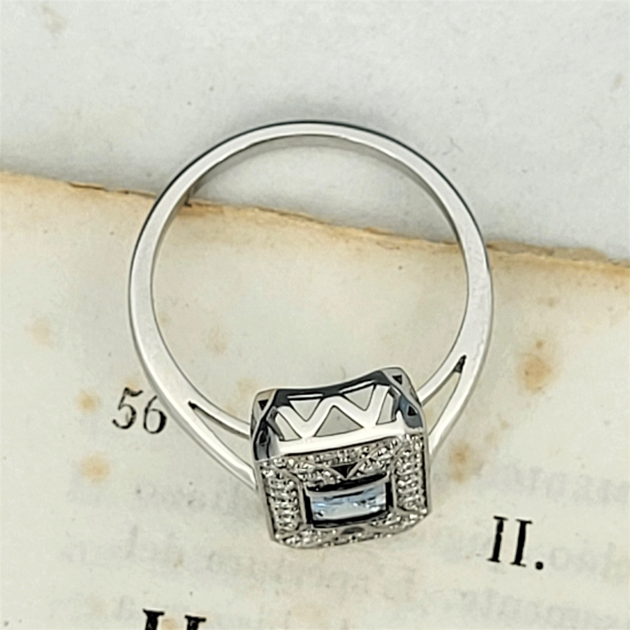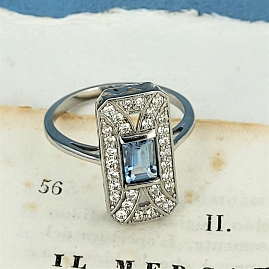 A gorgeous art deco inspired Aquamarine and Diamond Ring.