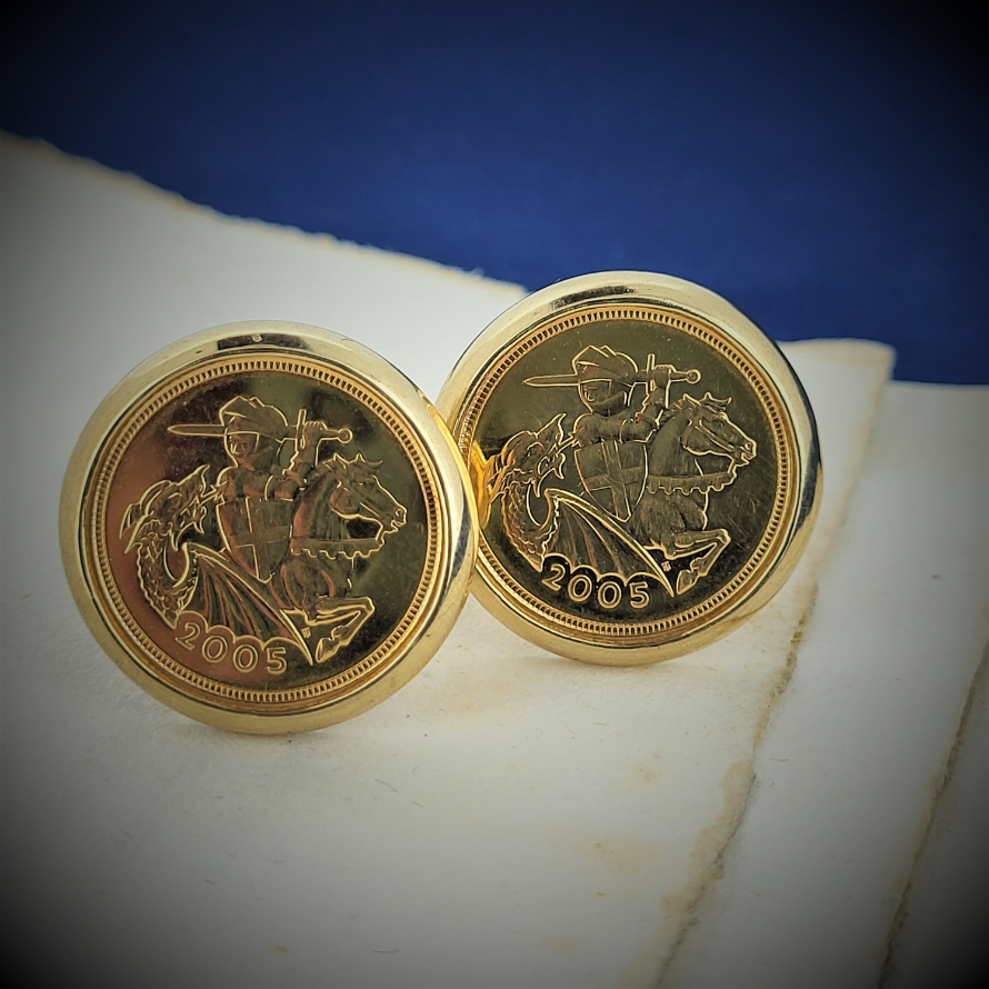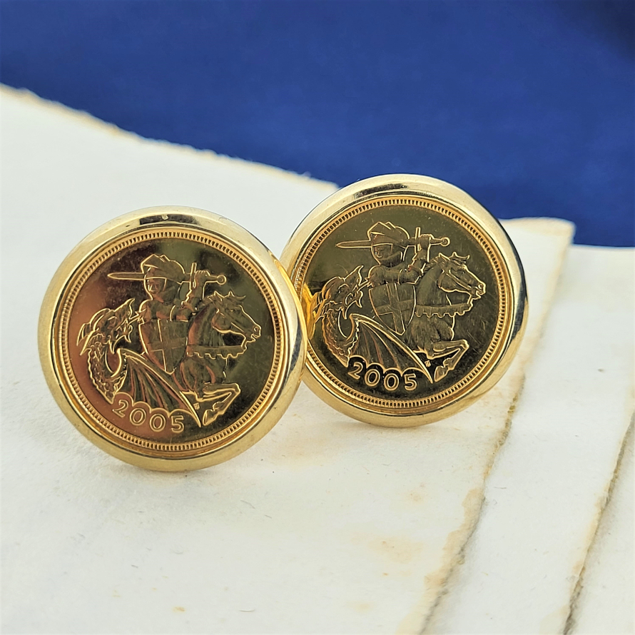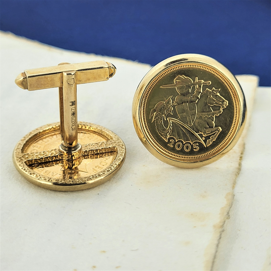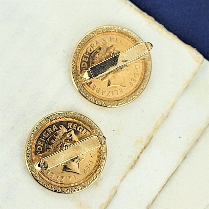 Half Sovereign Cufflinks set in 9ct Gold with Square Bar and U fittings.