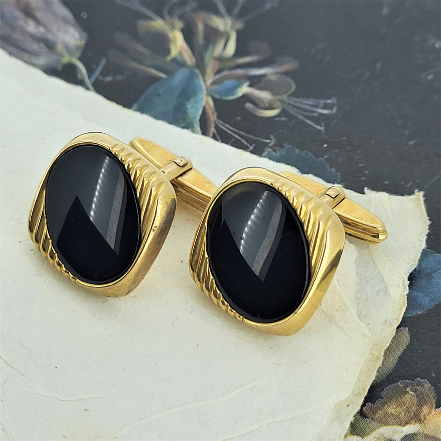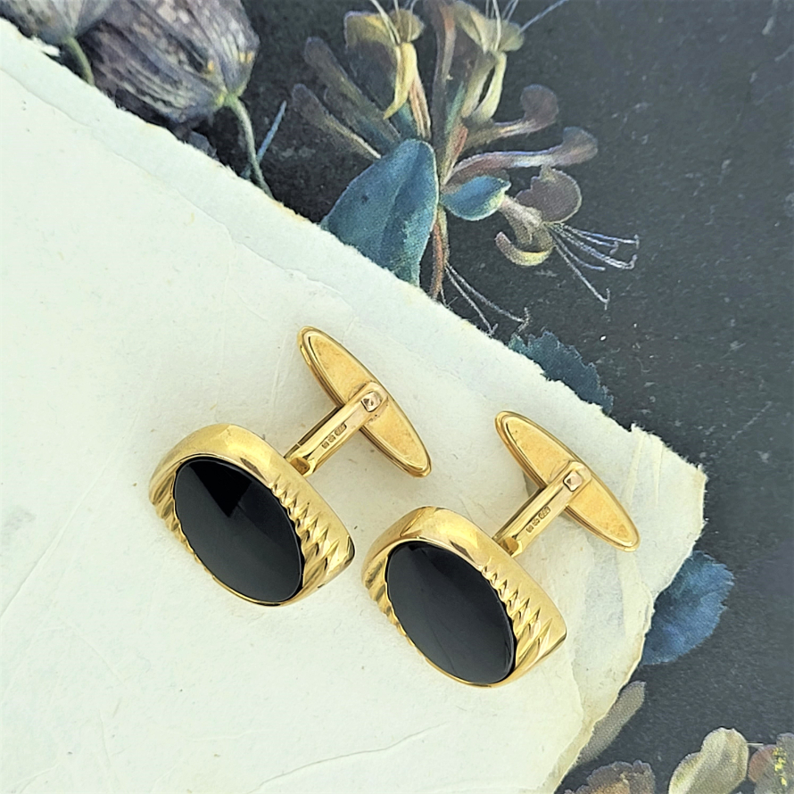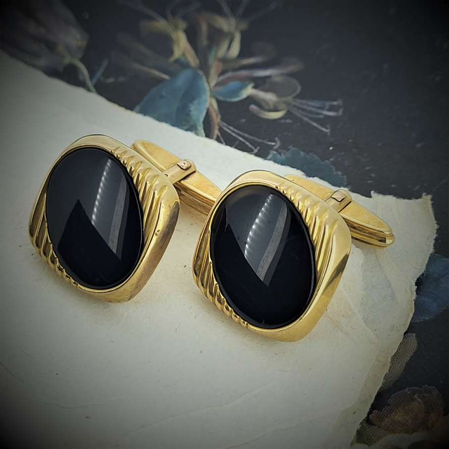 Almost 2cm in diameter with a diagonally set oval black onyx and bevelled edge they are subtle yet eye catching.