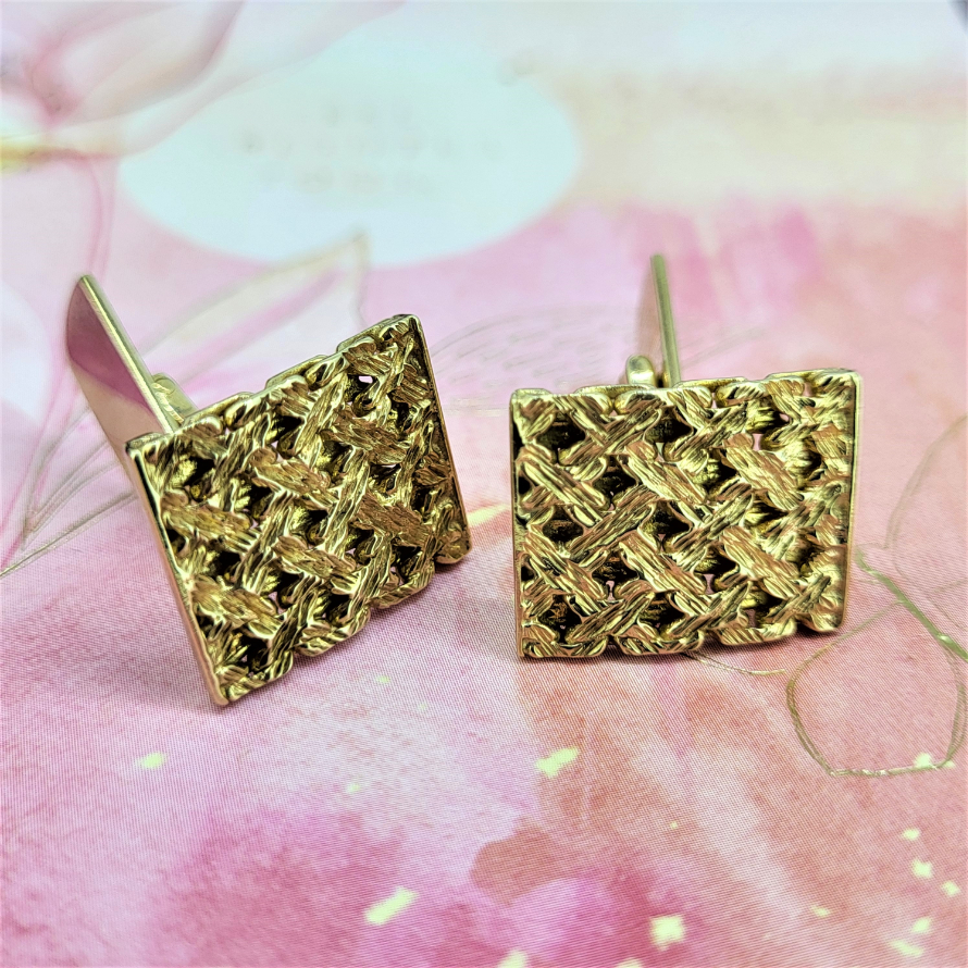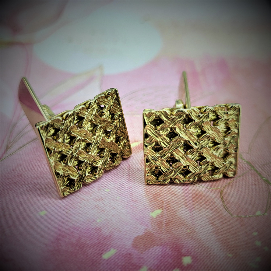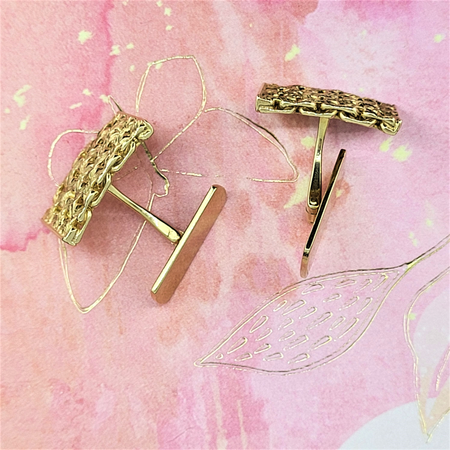 These cufflinks are fabulous and certainly not understated! With a bark effect, cross stitch design the rectangular plates measure 19mm by 14mm and combined the cufflinks weigh just over 13 grams.