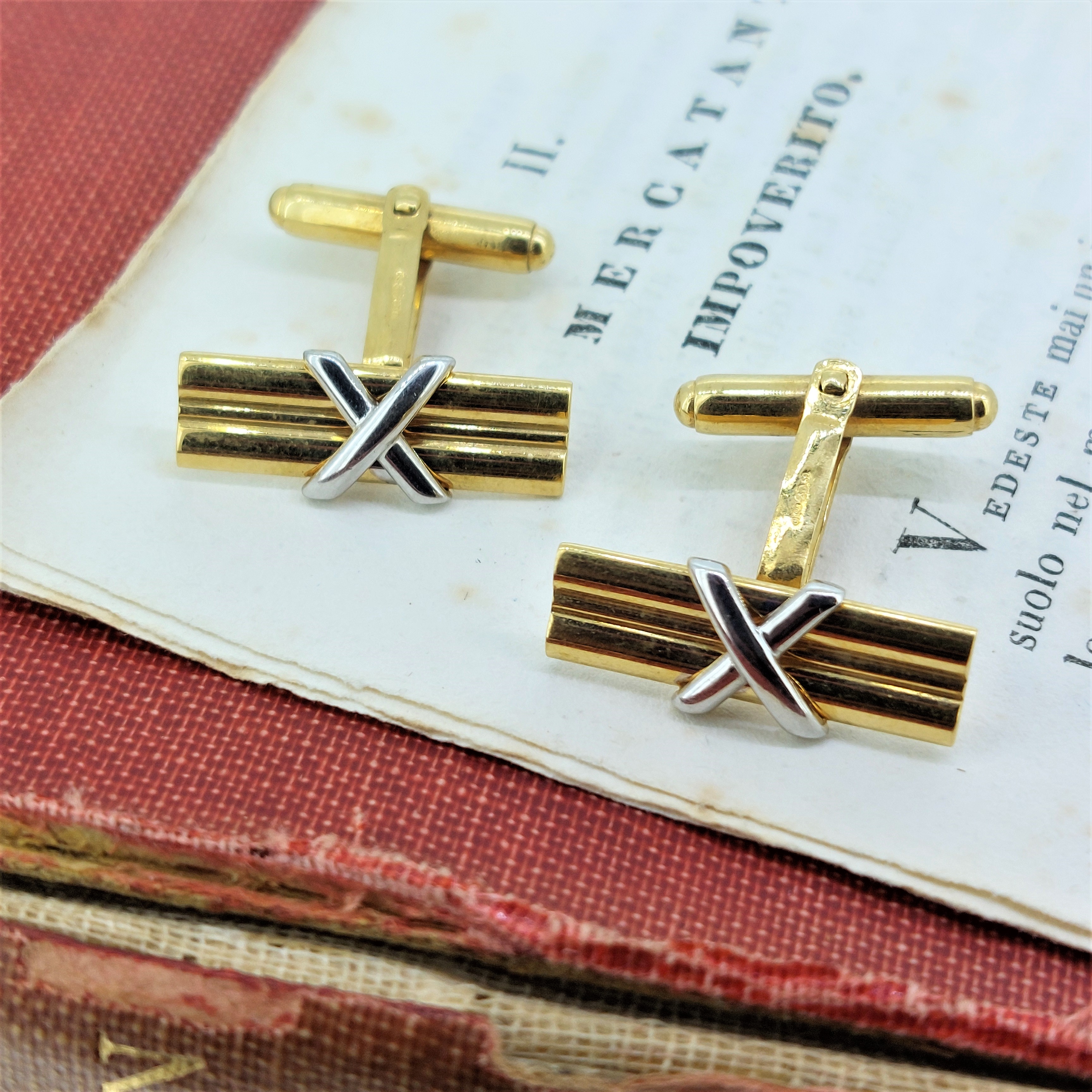 The bi-metal feature makes them the perfect dress accessory for steel or gold watch wearers. Measuring 20mm by 6mm with bar and u-arm plain fittings. The cufflinks weigh 4.2 grams.