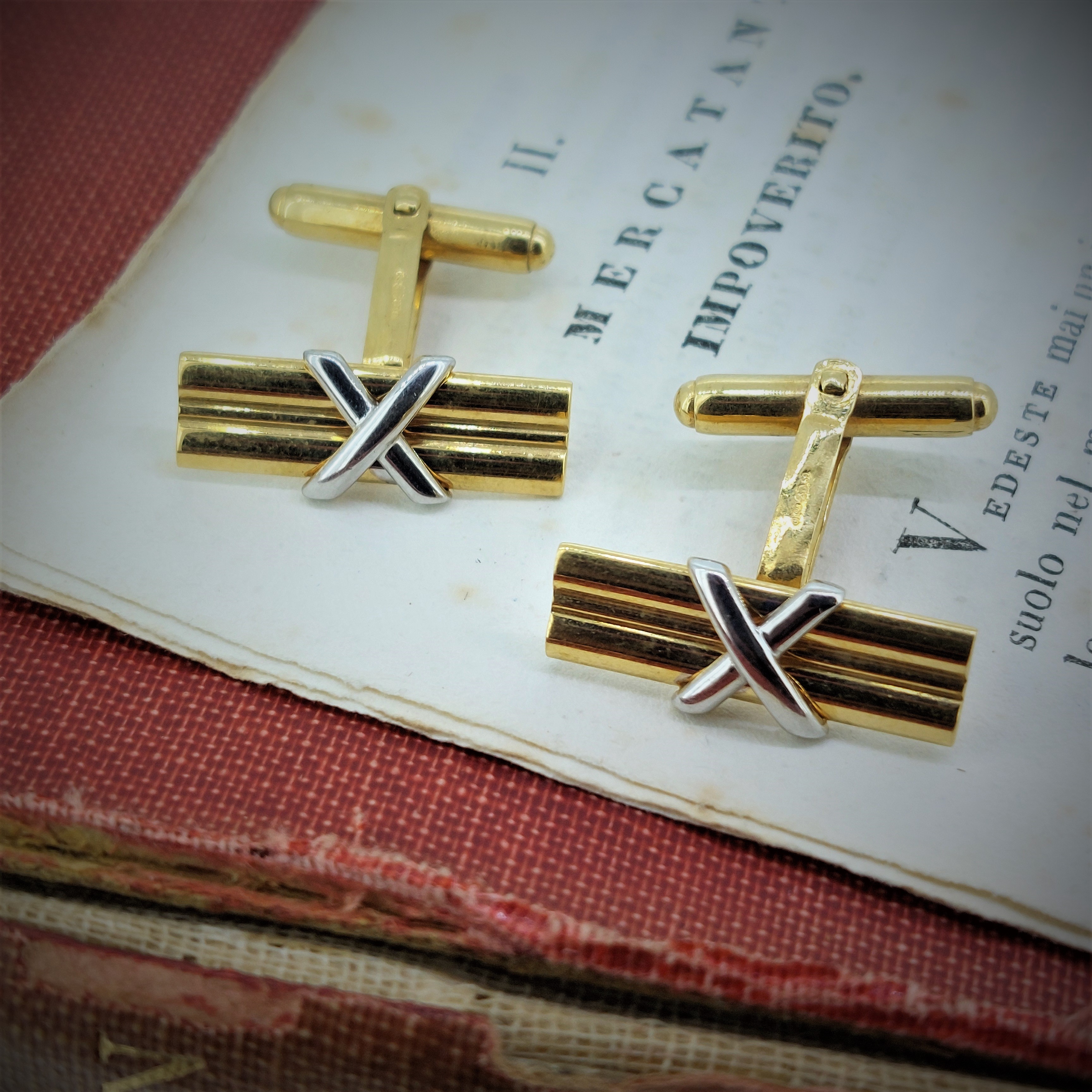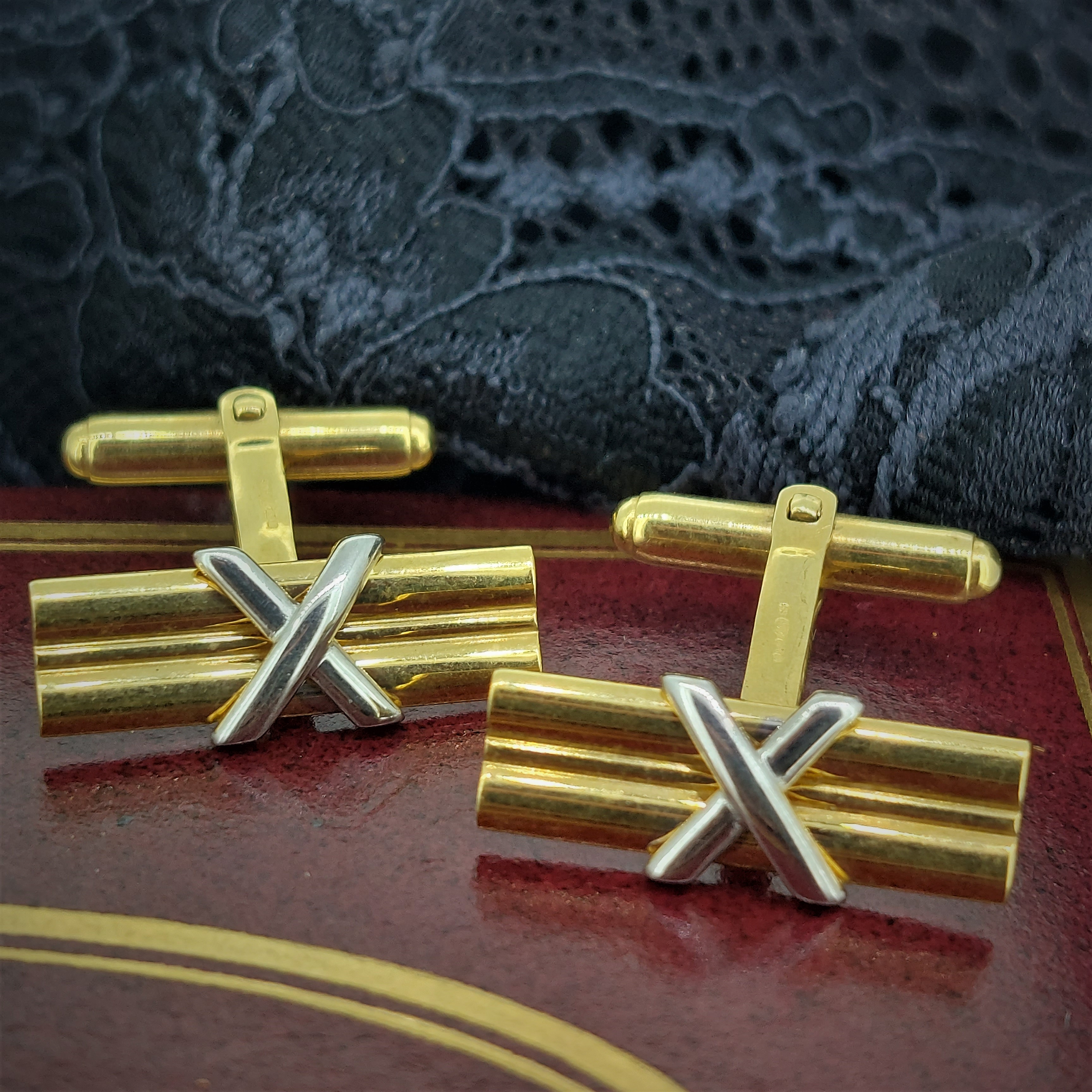 Discreet yet incredibly dressy 9ct Yellow Gold Cufflinks mounted with a 9ct White Gold cross.