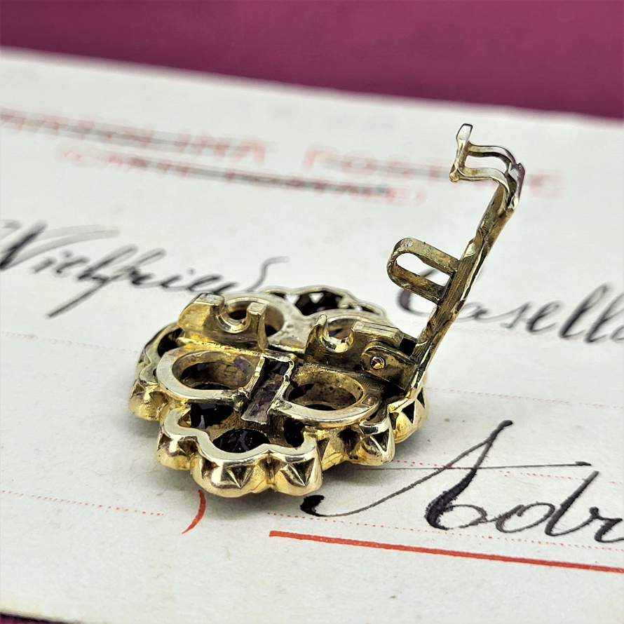 The clasp on the reverse, although functioning perfectly is not fully intact. Over the years it is likely that a safety clasp has been removed potentially due to the owner at the time considering repurposing the piece. And then, understandably changing their minds.