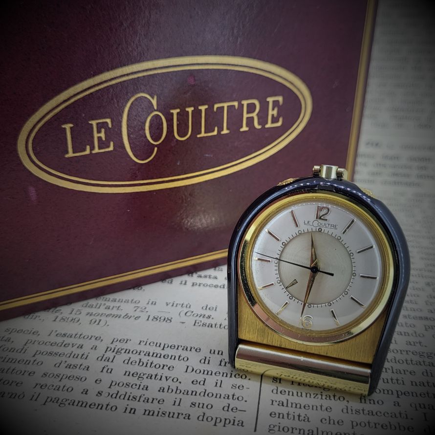 This is a beautiful piece of old school. Originally boxed and in full working order we present a Jaeger LeCoutre travel alarm clock. The sound of the alarm takes you back in time. These alarm clocks are not as rare as you think but in this sort of condition with its original box this is a real find. Measuring 37mm by 43mm.