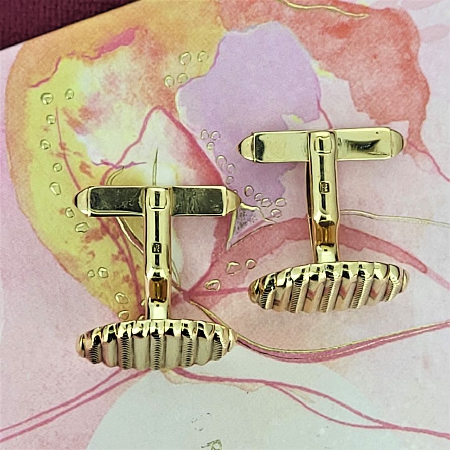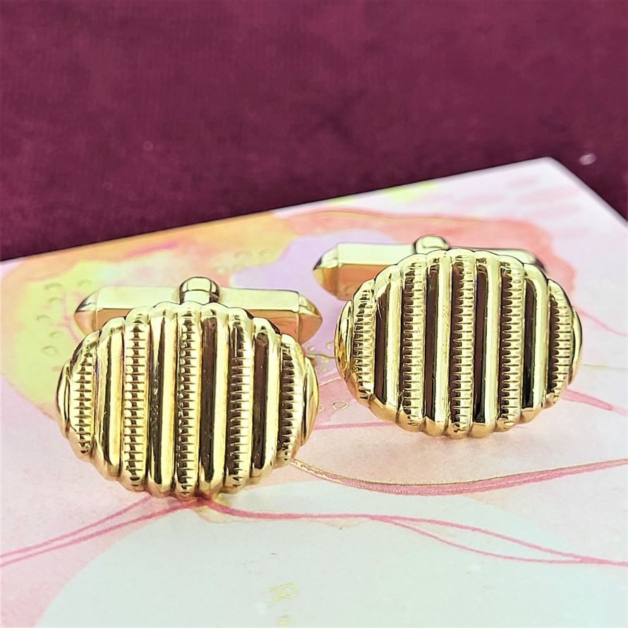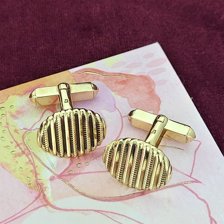 Keep things simple with these beautifully crafted oval cufflinks. The elegant design features ridges alternating between plain and textured with U-arm fittings.