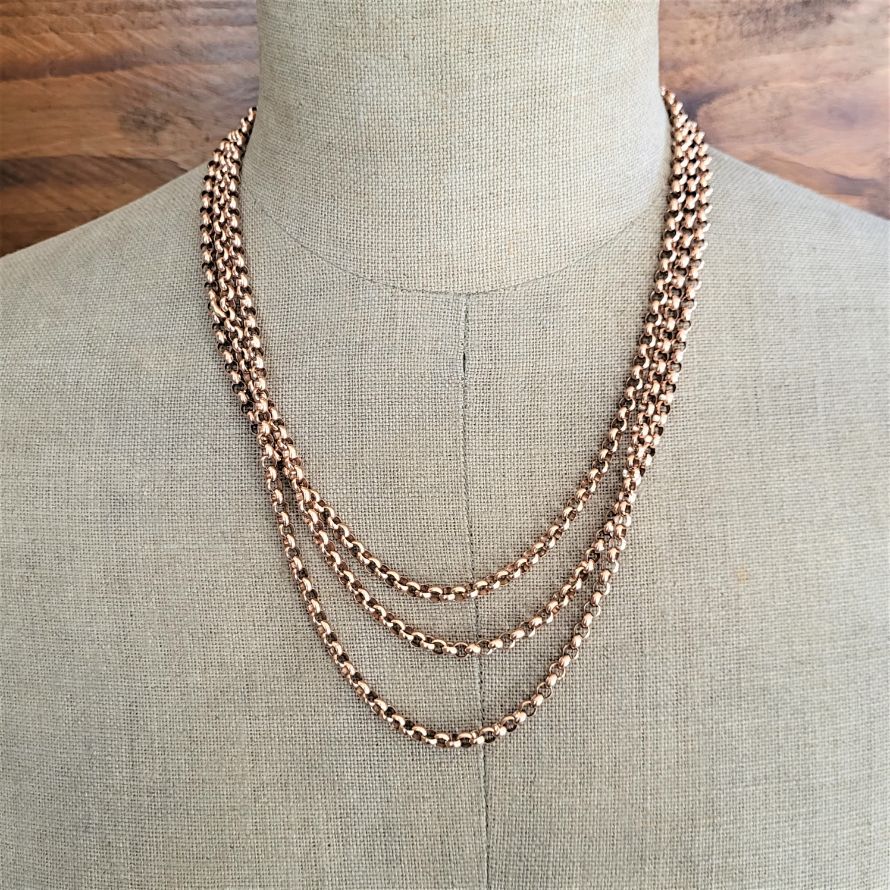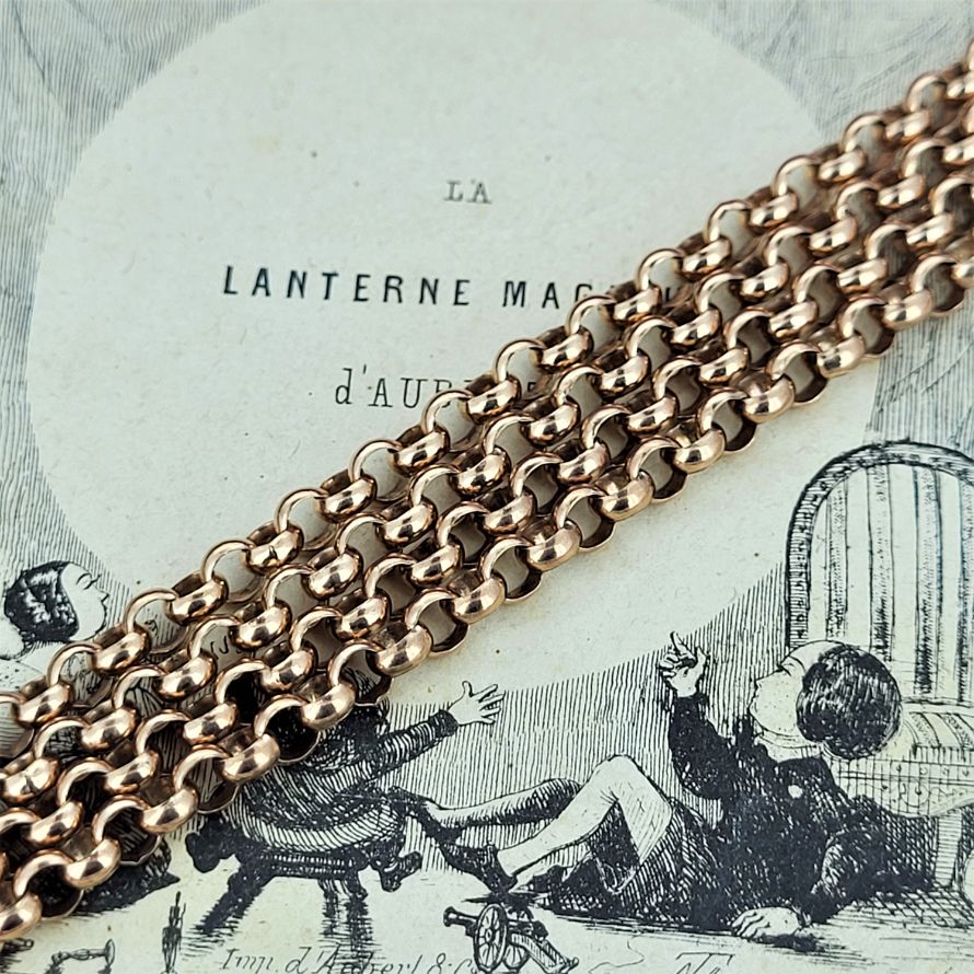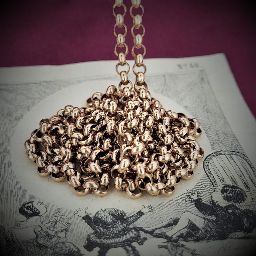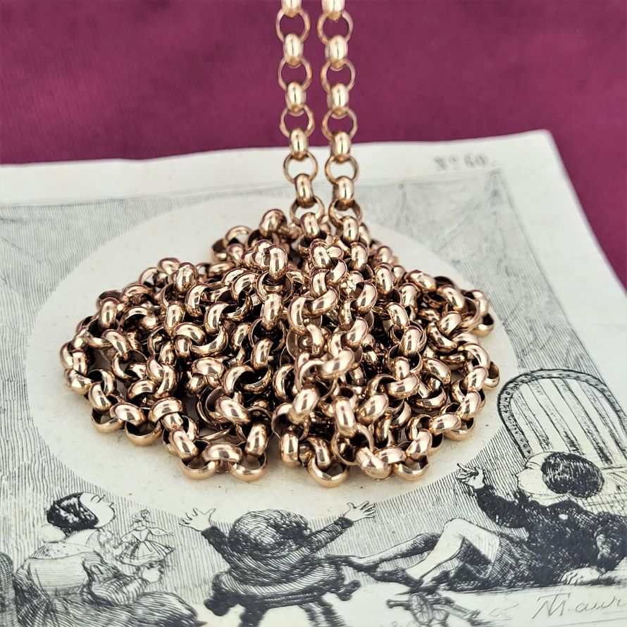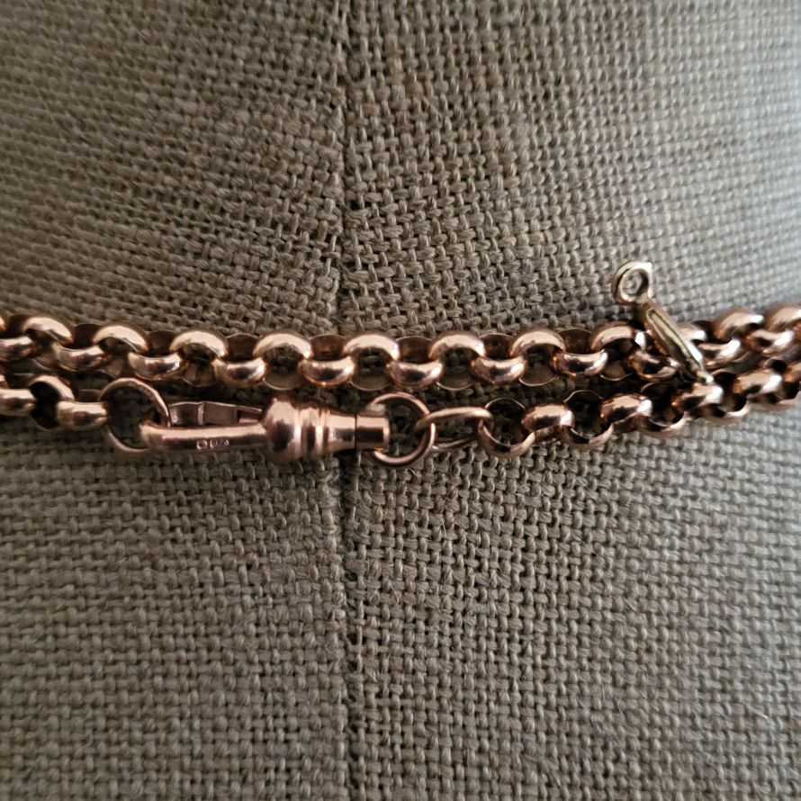 A fabulous 4mm belcher link antique guard chain in the ever popular rose gold. Measuring 58 inches and weighing 58.6 grams this necklace is a classic must have for any collector. Complete with swivel and removable bolt ring, the latter of which helps lock your desired 'layered' look in place.