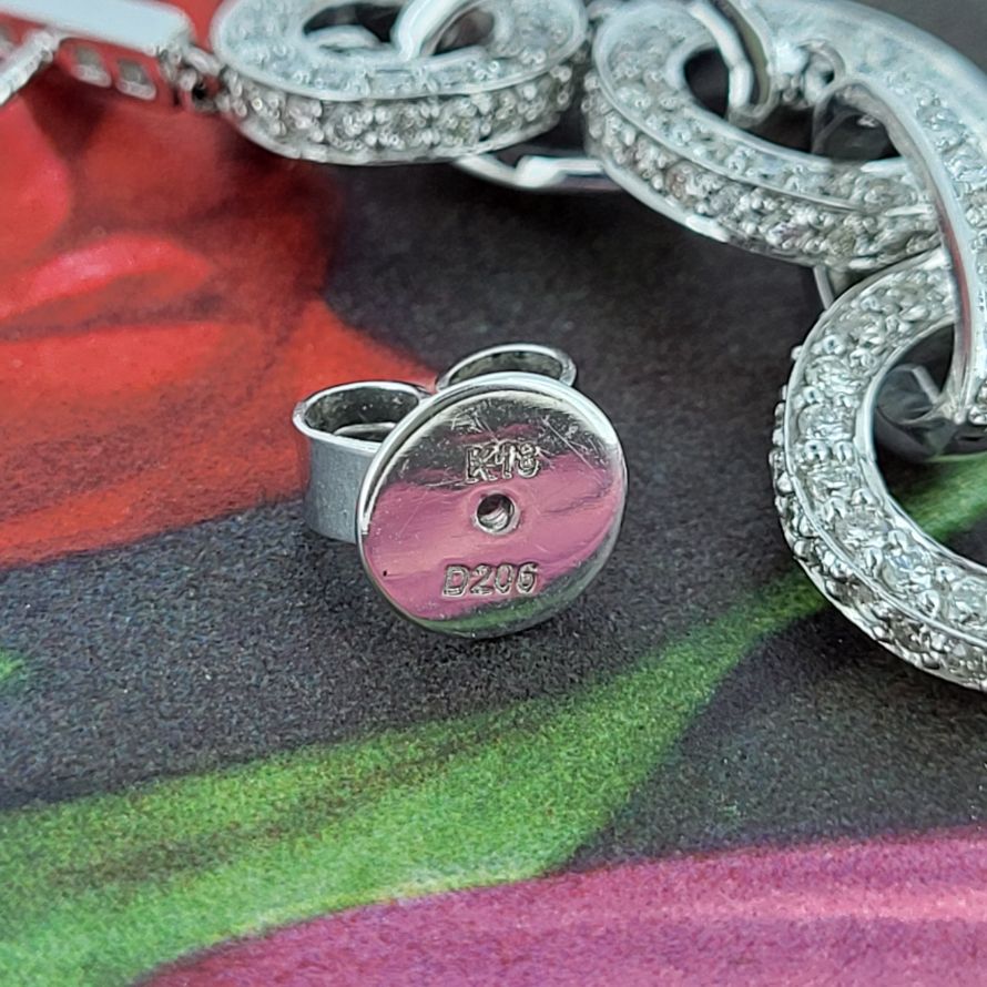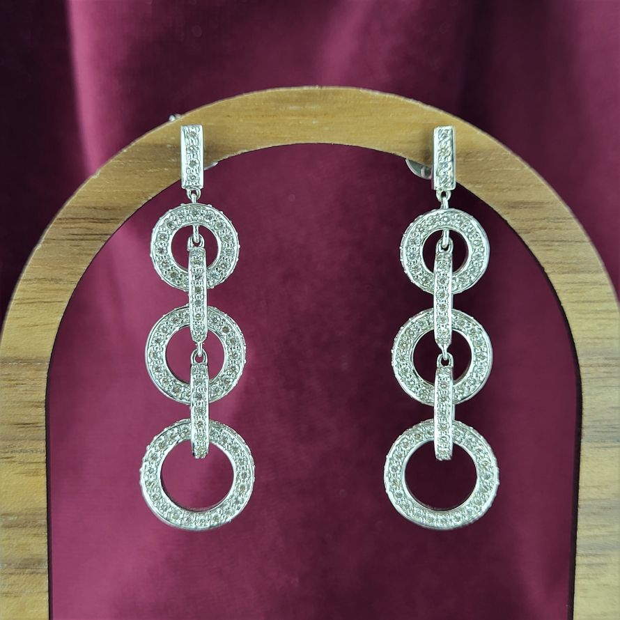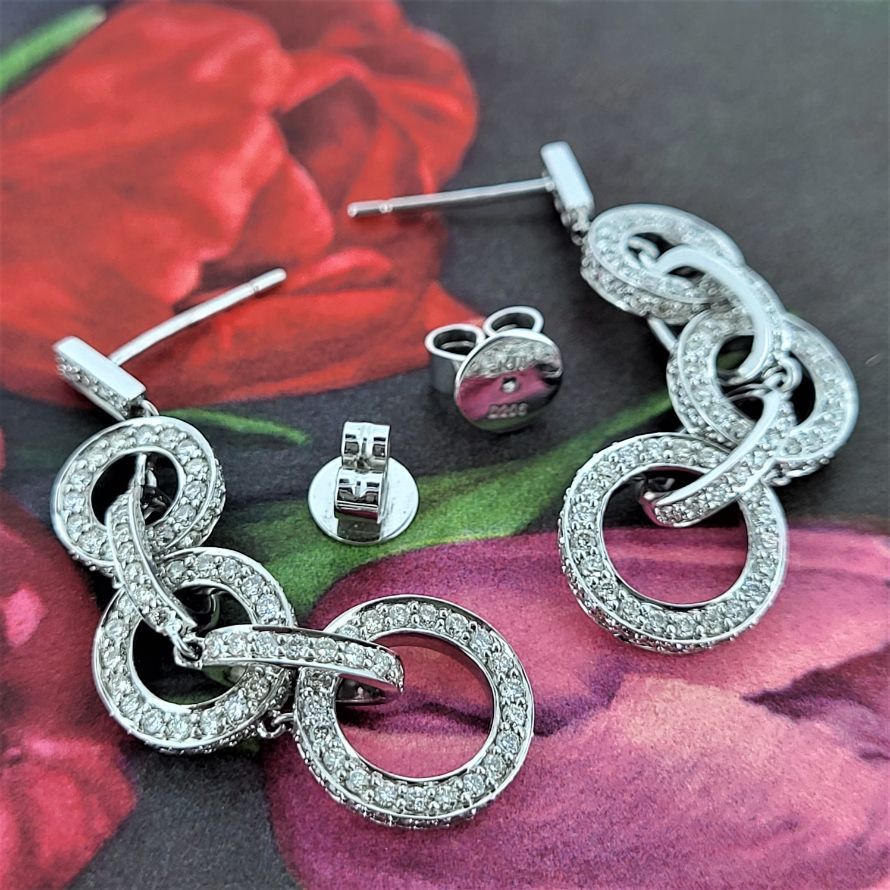 Fancy diamond drop earrings to add that touch of sparkle! A total 4cm and 2.08 carats of deliciously sparkly diamonds dazzle! All set in 18ct white gold with pushback settings.