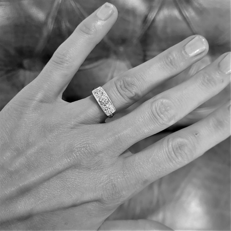 The ring itself is a block design suitable for both men and women and extremely impressive on the finger. Measuring 15mm across the ring will fill the span of the average ladies ring finger and the average mens pinky.