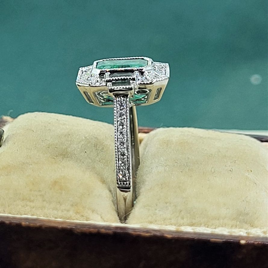 A fabulous Art Deco Emerald and Diamond Ring set in 18ct White Gold.