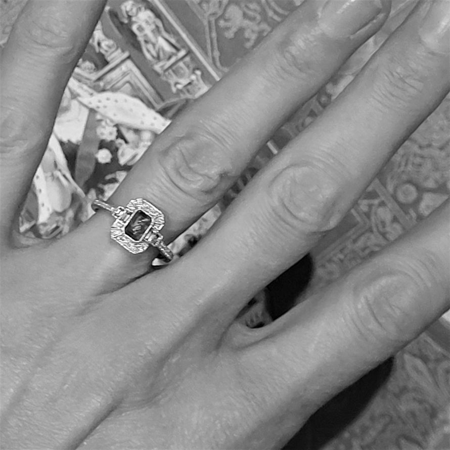 This is a wonderfully pretty ring, the central emerald measuring 4mm by 6mm the ring itself has a 12mm by 10mm spread.Weighing 3.1grams and fully hallmarked. Currently Size O and can be sized to fit.Available in two larger sizes (this being the smallest) and a variety of coloured gemstones. It really is a beauty!All photography is done in-house. These images are not enhanced or airbrushed — what you see is exactly the item you will receive.