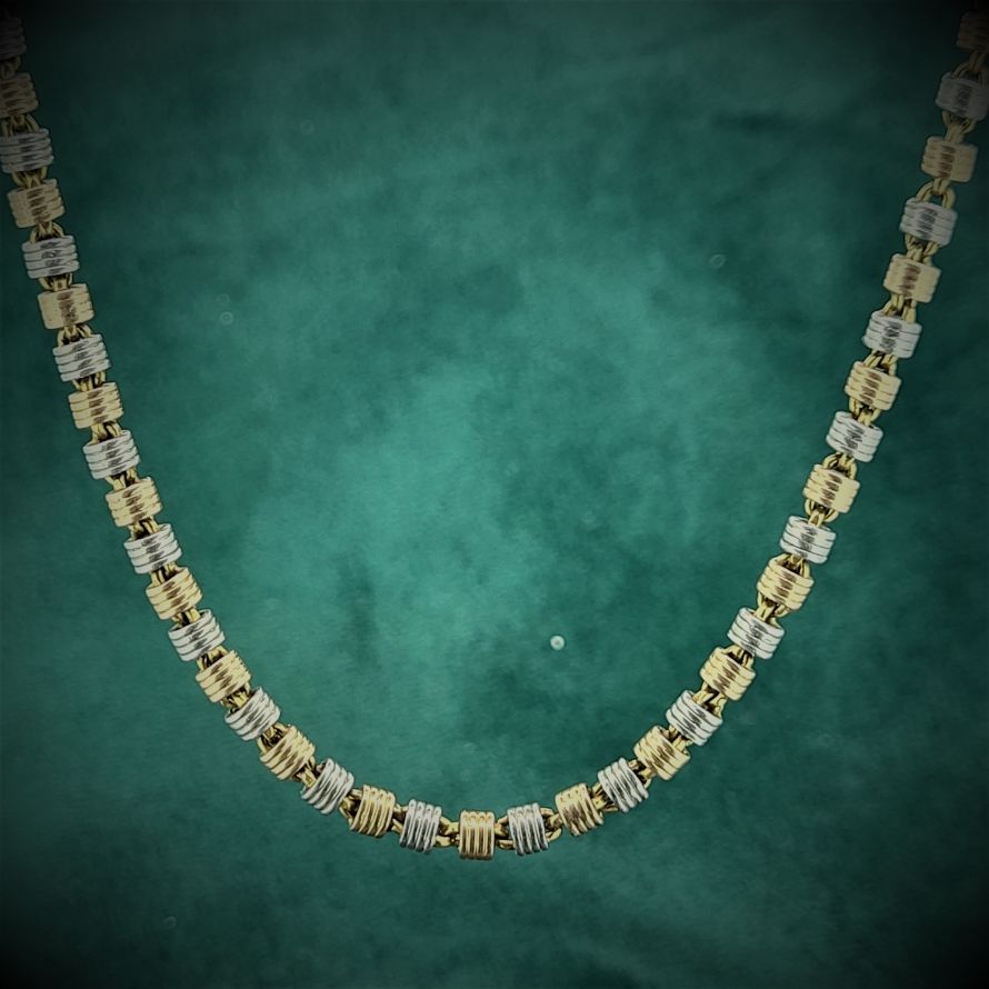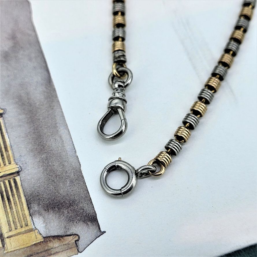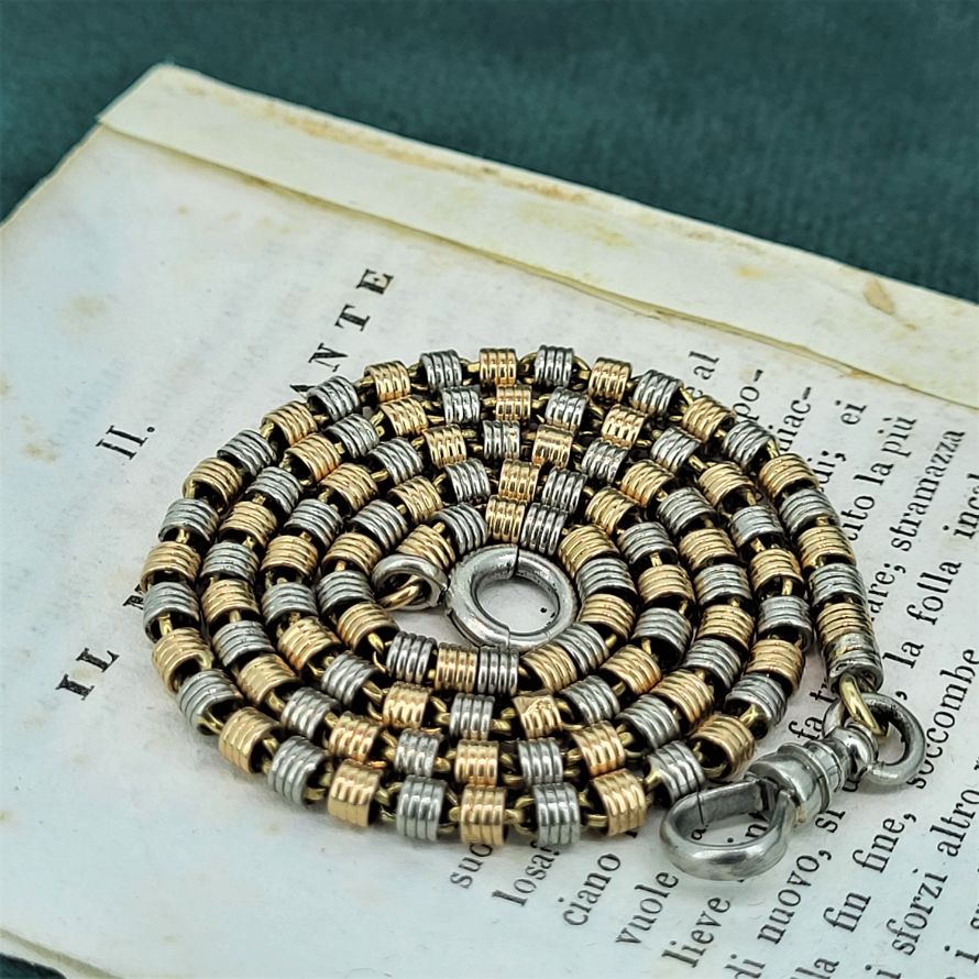The base chain is an elongated oval belcher and each link is surrounded by alternate rose gold and platinum casing. Perhaps most spectacular of all are the original platinum swivel and bolt ring - still in fabulous condition with intact and strong springs. This chain has been tested with an XRF analyser but there are no markings.