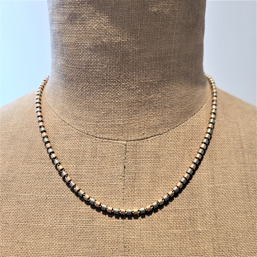 A rare find. We suspect that this Platinum and 18ct Rose Gold chain originated in Austria in the 1930s and was worn as a watch fob chain across the pocket.