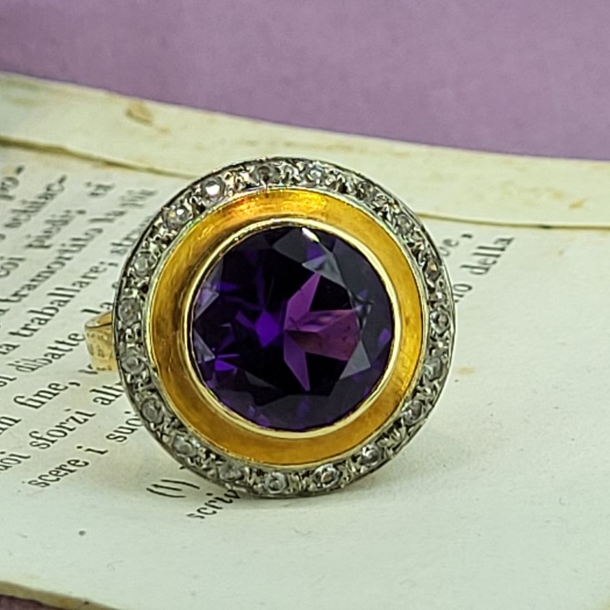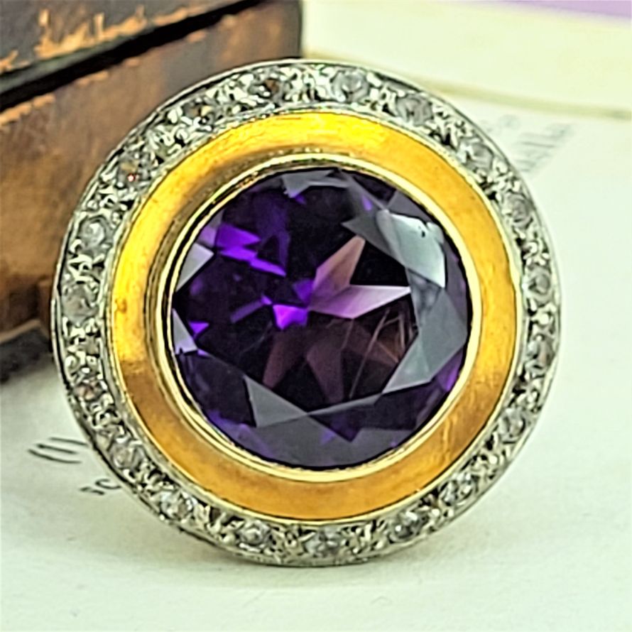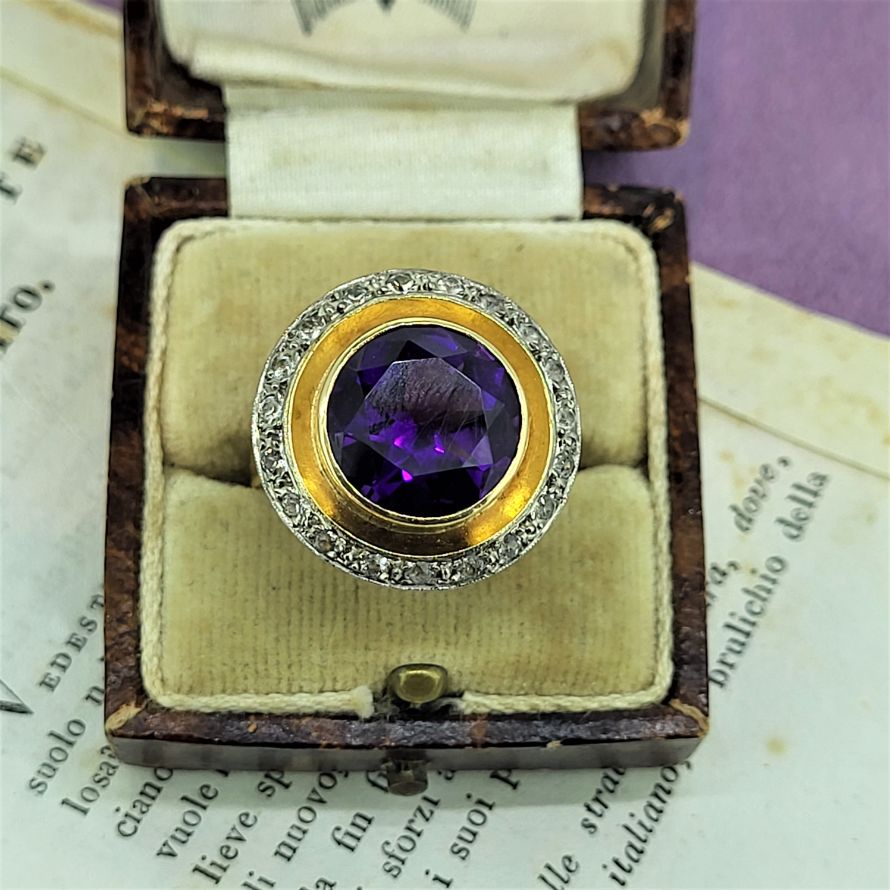 Here we present a most wonderful amethyst and diamond target ring. Fabulous old school glamour and yet so current, we adore this ring!