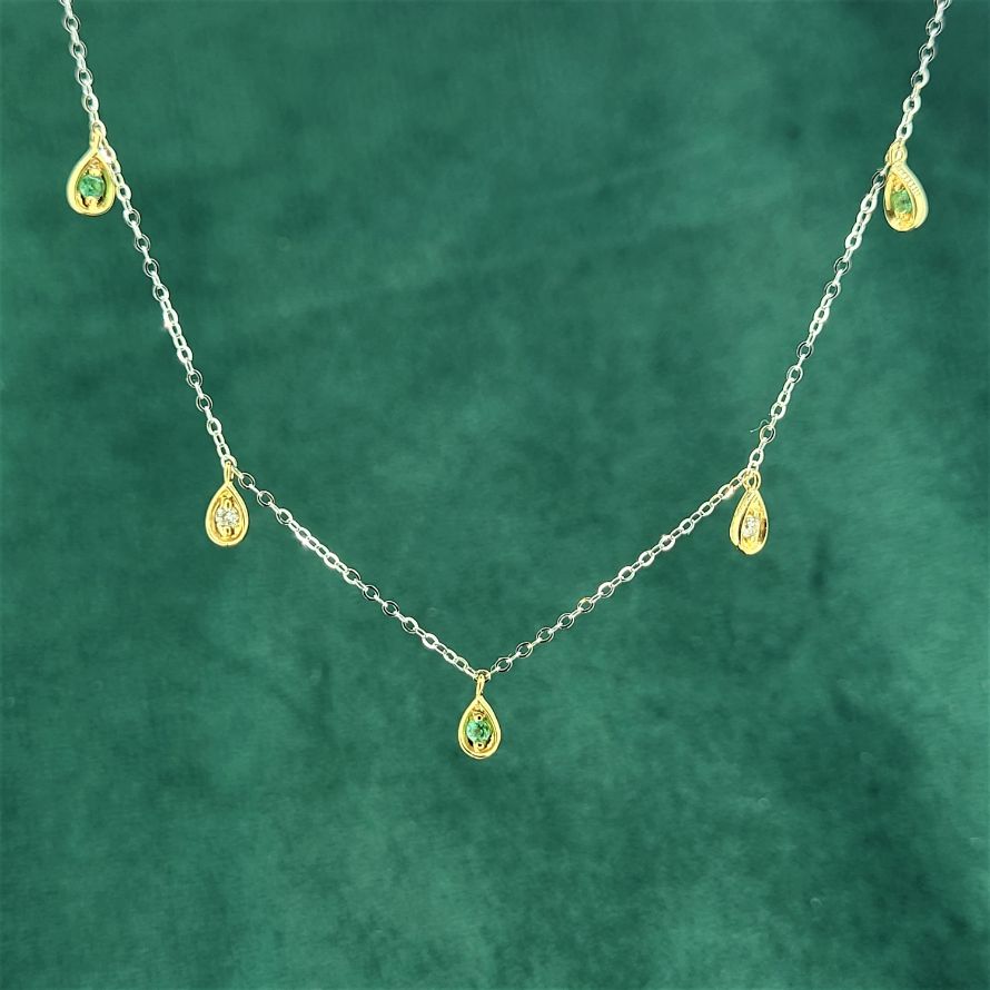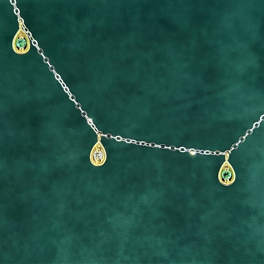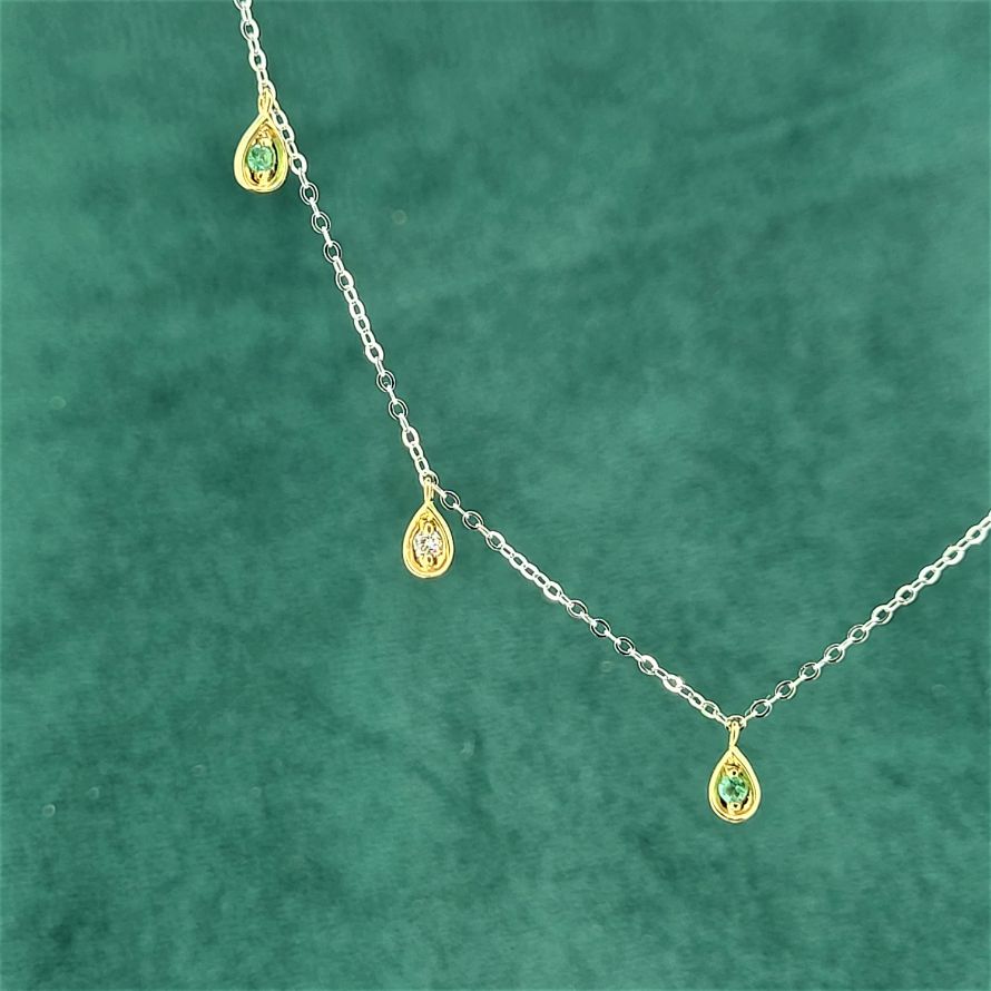 If you have been looking for a trace chain then this one is likely to tick all the boxes. In 18ct white gold with tiny yellow gold tear drops featuring alternating emerald and diamonds this is fabulously versatile. Both sparkly and discreet. We love it.