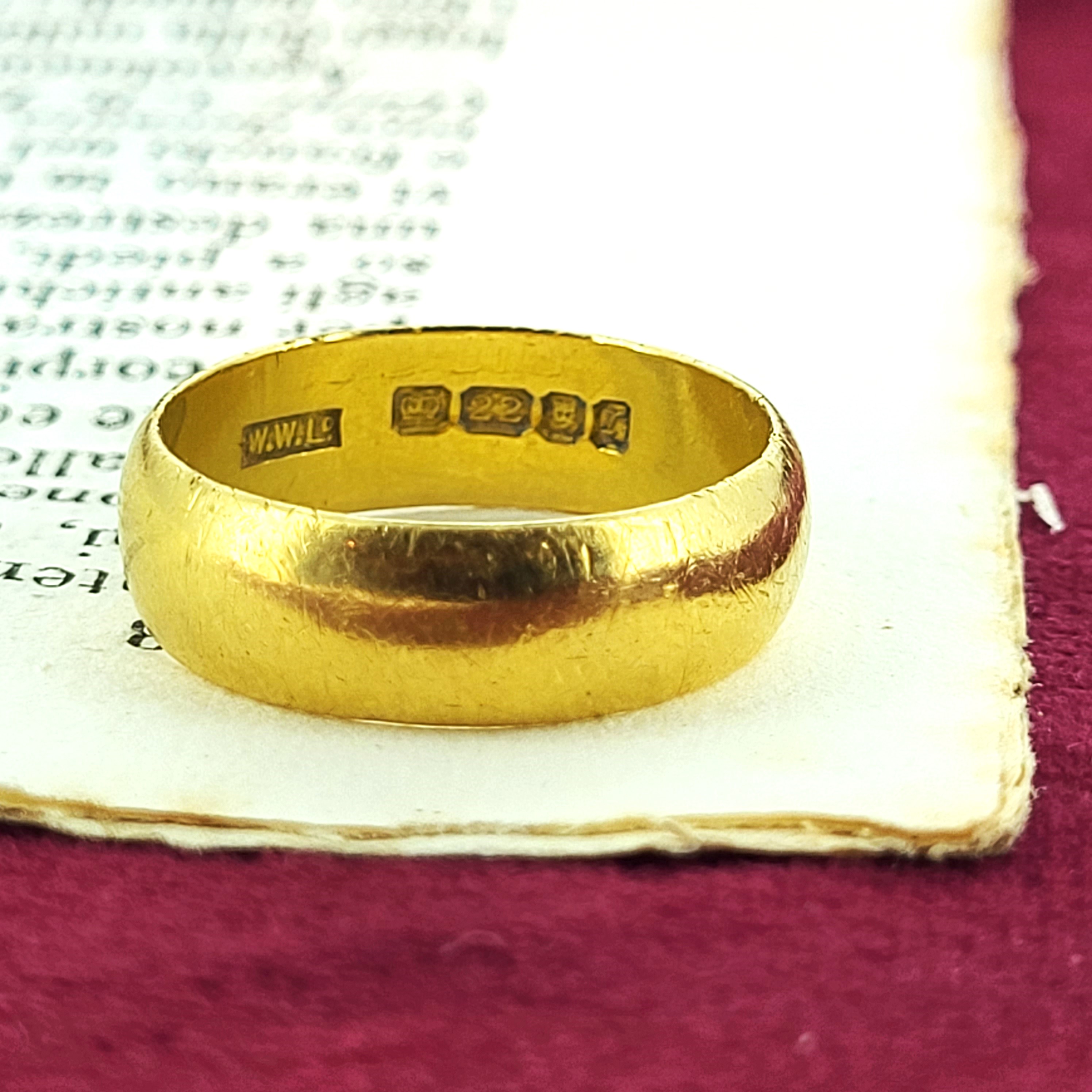 This beautifully rich coloured band is a 22ct Light Weight D-Shape Wedding Ring which is 6mm in width and weighs 8.3 grams.