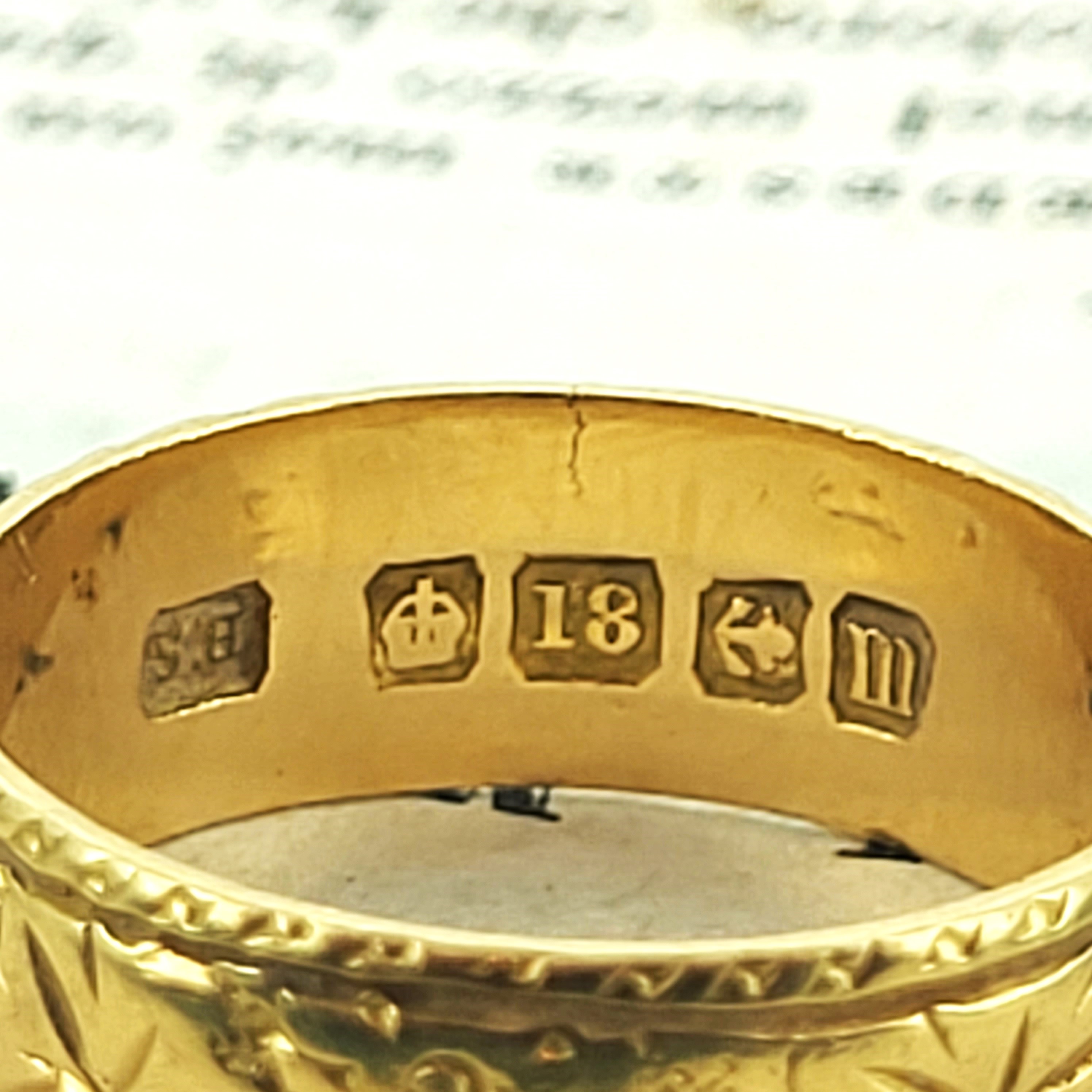 It was hallmarked in Birmingham and is dated between 1896-1897! It is size L and unfortunately cannot be sized.