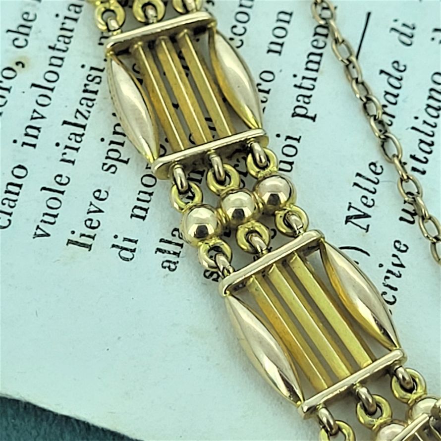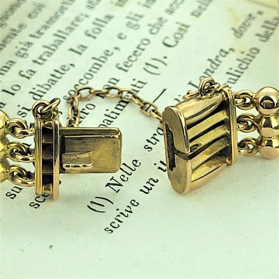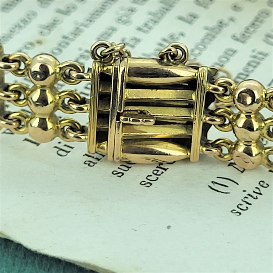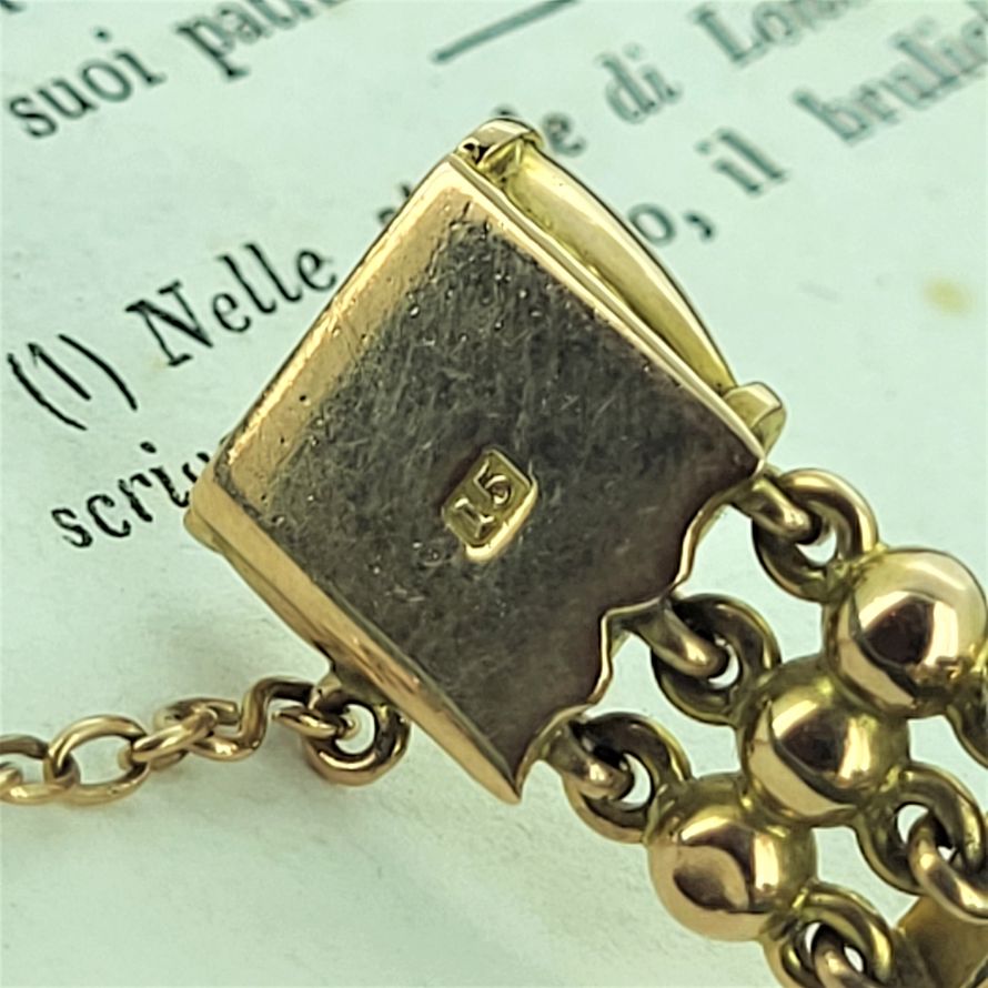 Crafted from 15ct Gold with a 15ct stamp on the clasp this is an example of the very best in chain making. We cannot find evidence of the maker but can confirm that they were a very clever artisan. The design was particularly popular during the Victorian period and runs through to the immaculate box clasp.