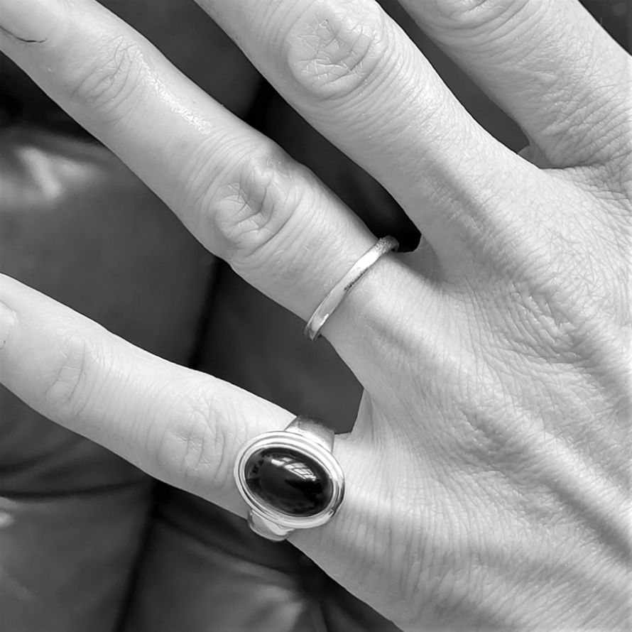 The ring is currently a Size L but can be sized a small amount!