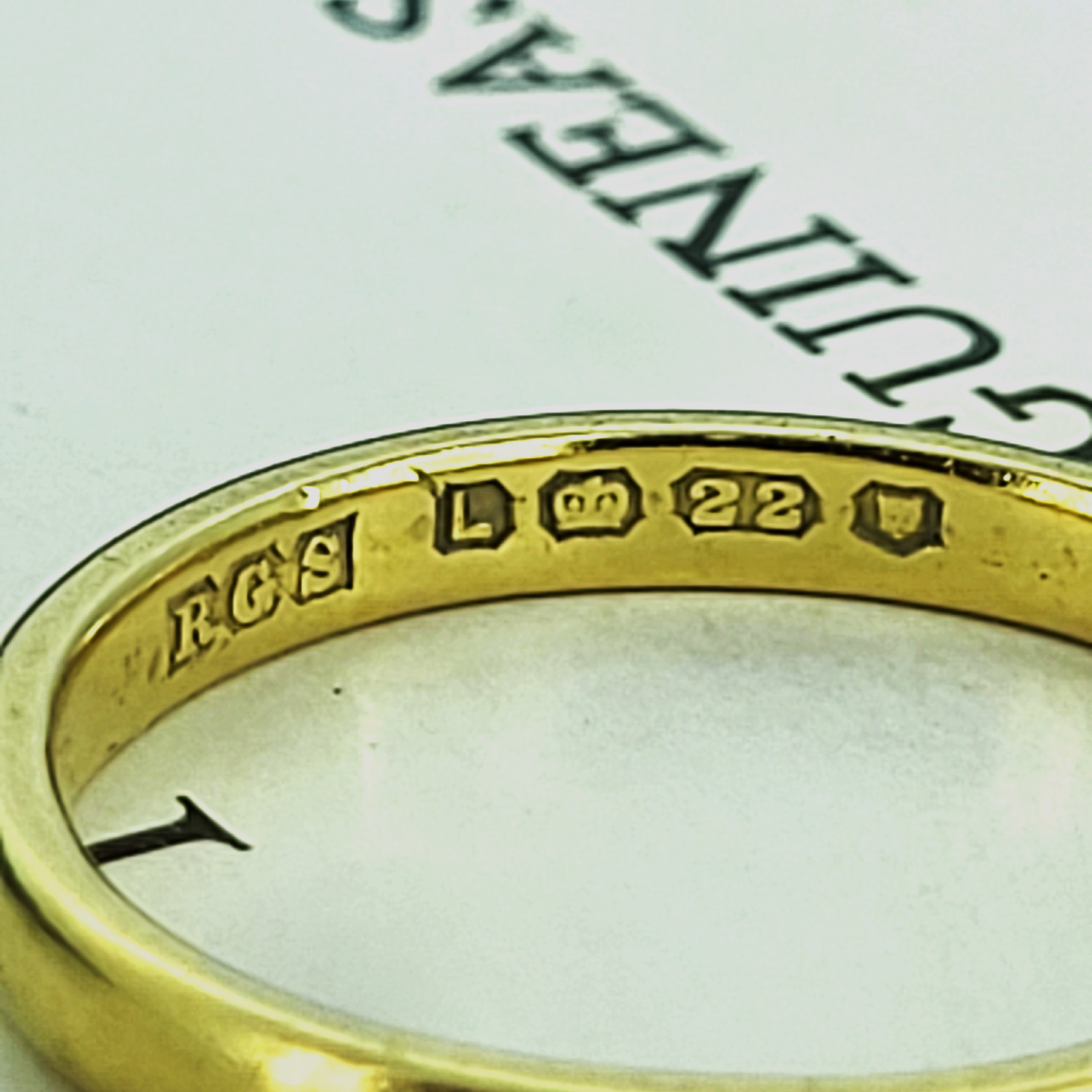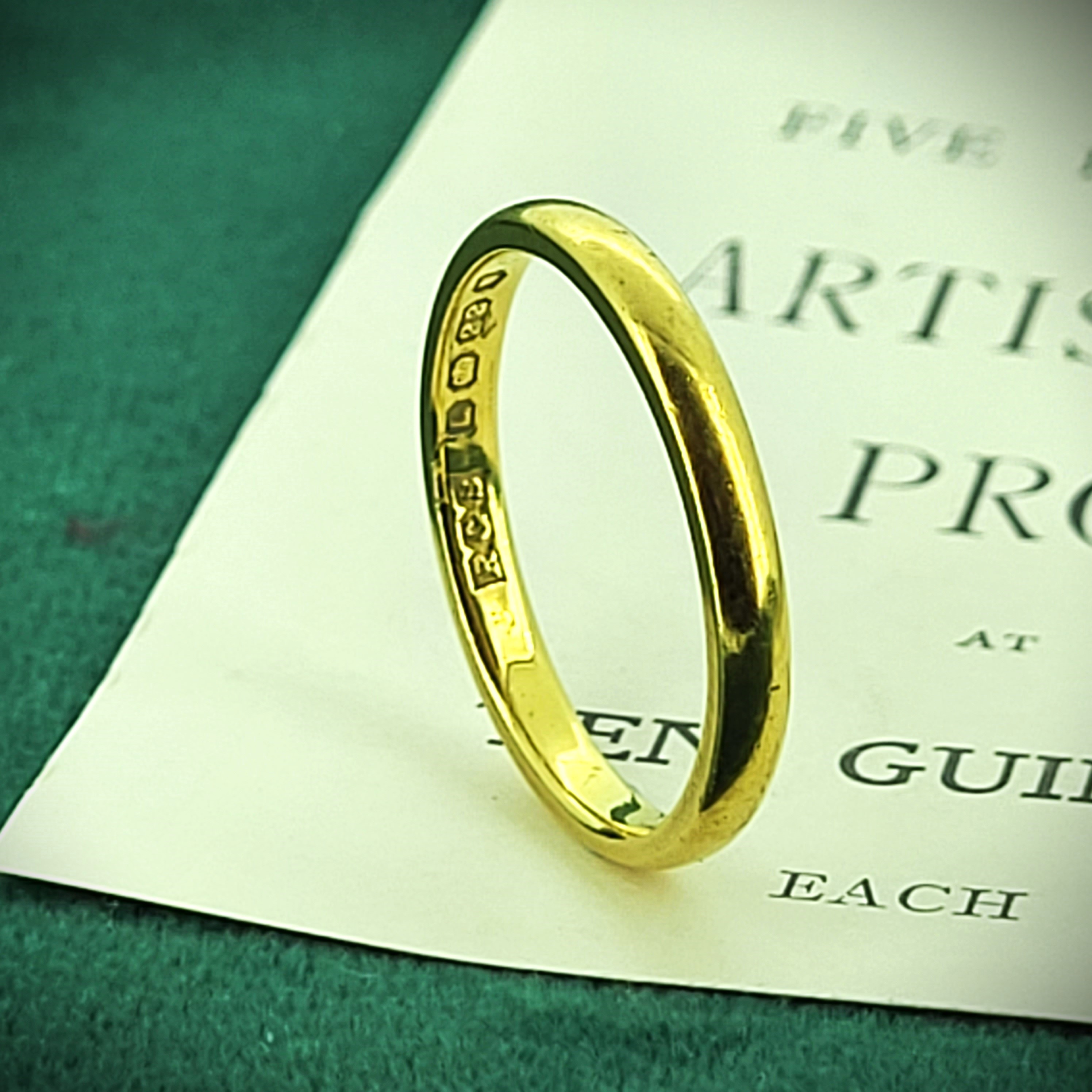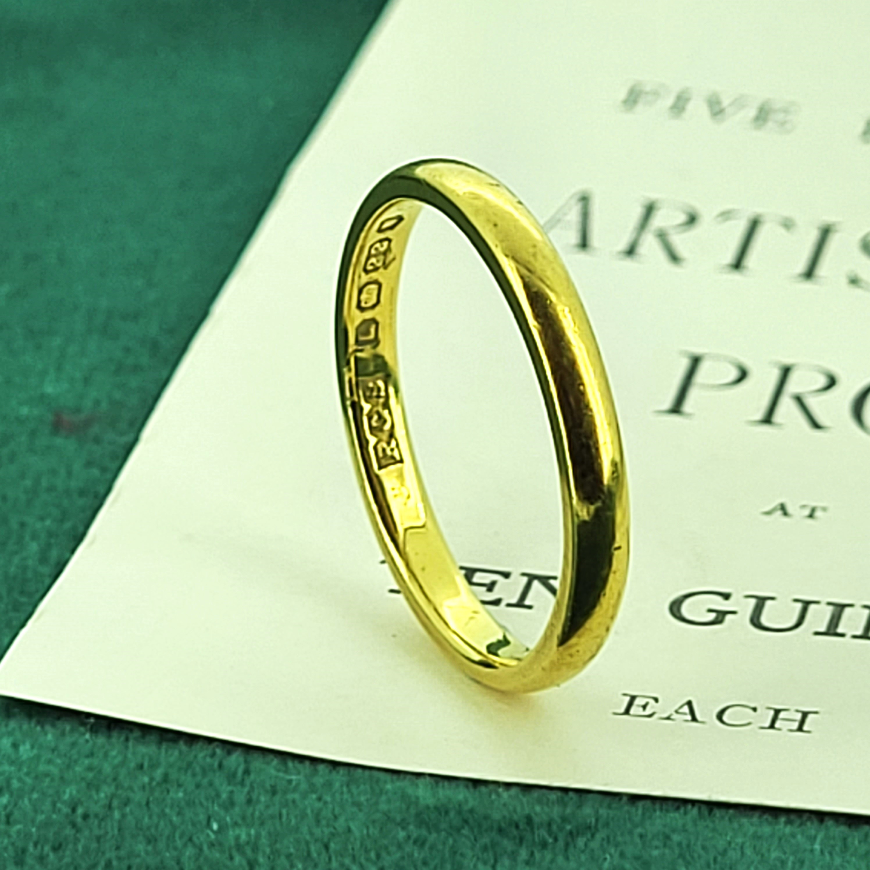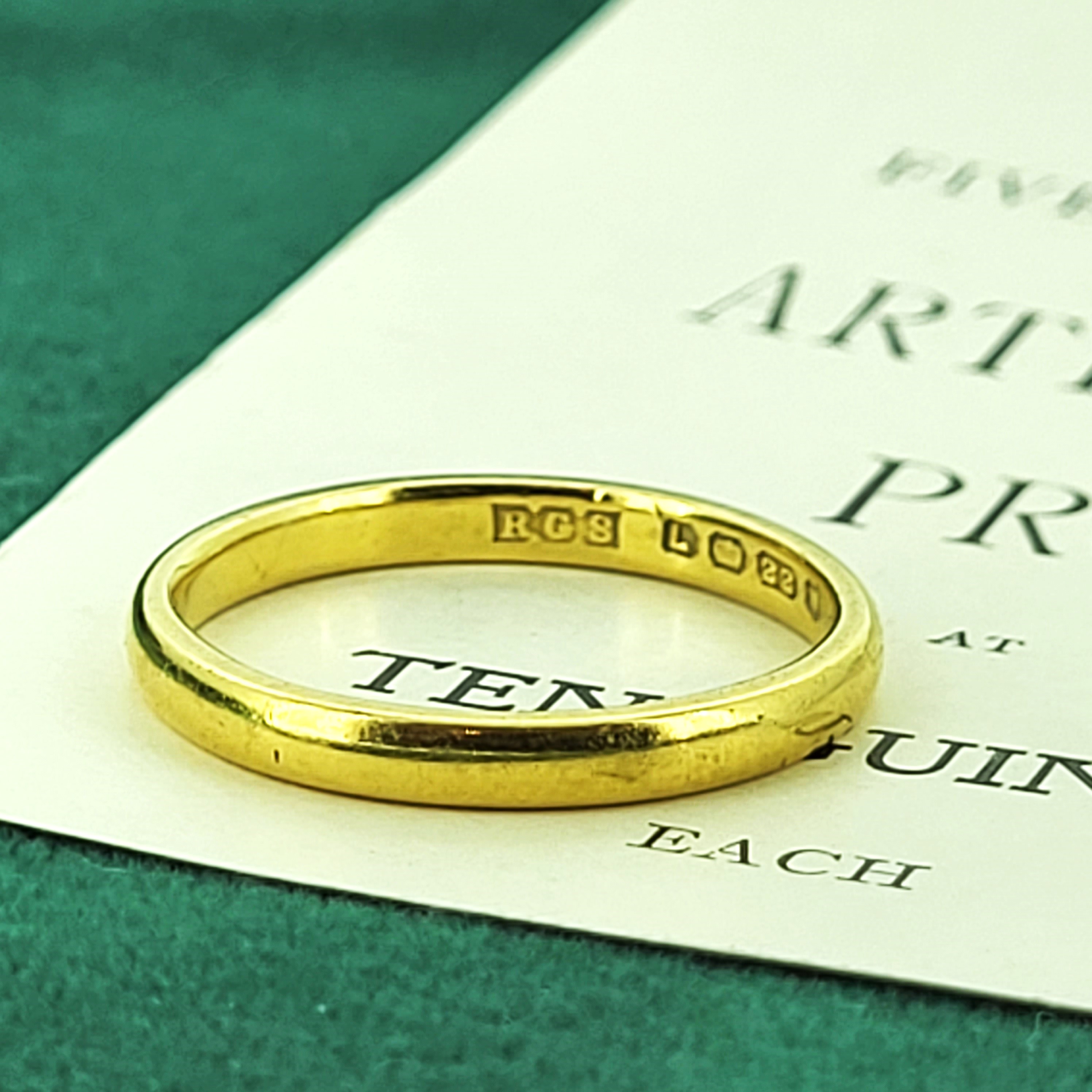 We are pleased to present this 22ct Gold Wedding Ring which was hallmarked in London in 1946 by R G S for R G Springall & Co Ltd.