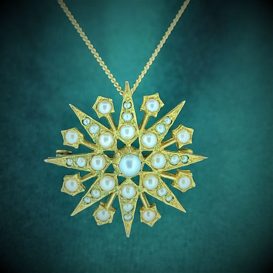 Delighted to present this Victorian Star seed pearl brooch/pendant! Originally hallmarked in Sheffield in either 1884/1885 (date letter K) it really is in wonderful condition given its age.