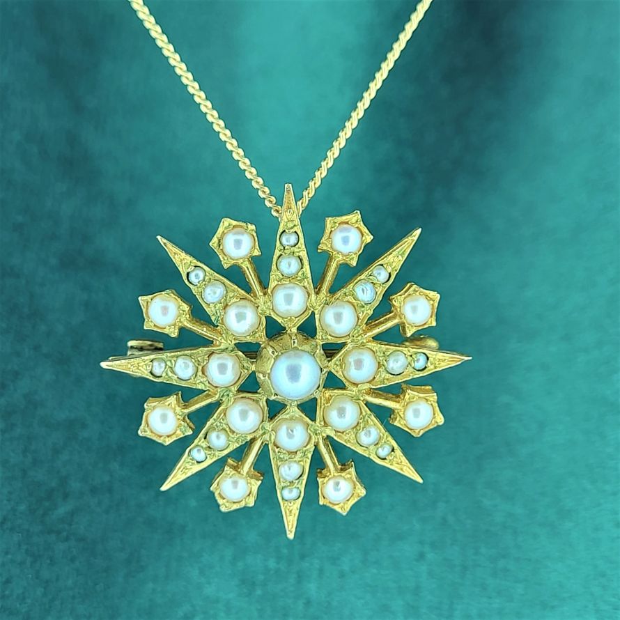 Delighted to present this Victorian Star seed pearl pendant/brooch! Originally hallmarked in Sheffield in either 1884/1885 (date letter K) it really is in wonderful condition given its age.