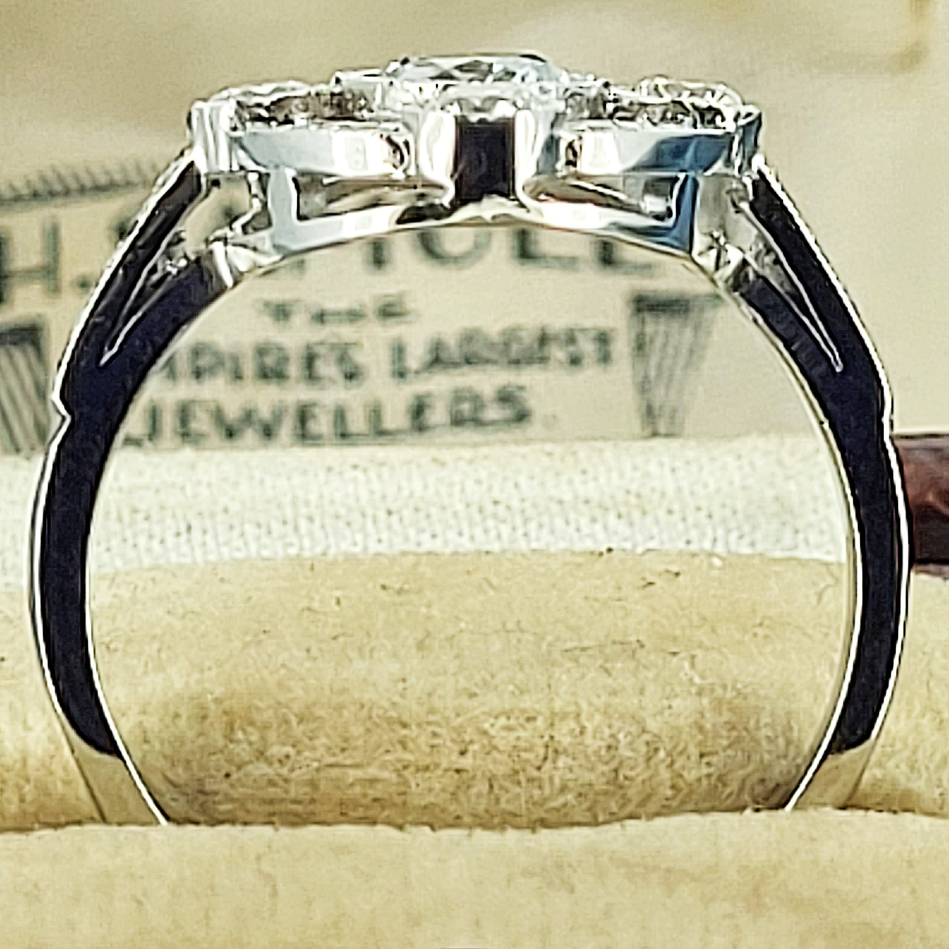 The ring weighs 4.1 grams, is currently a Size N and can be sized to suit.