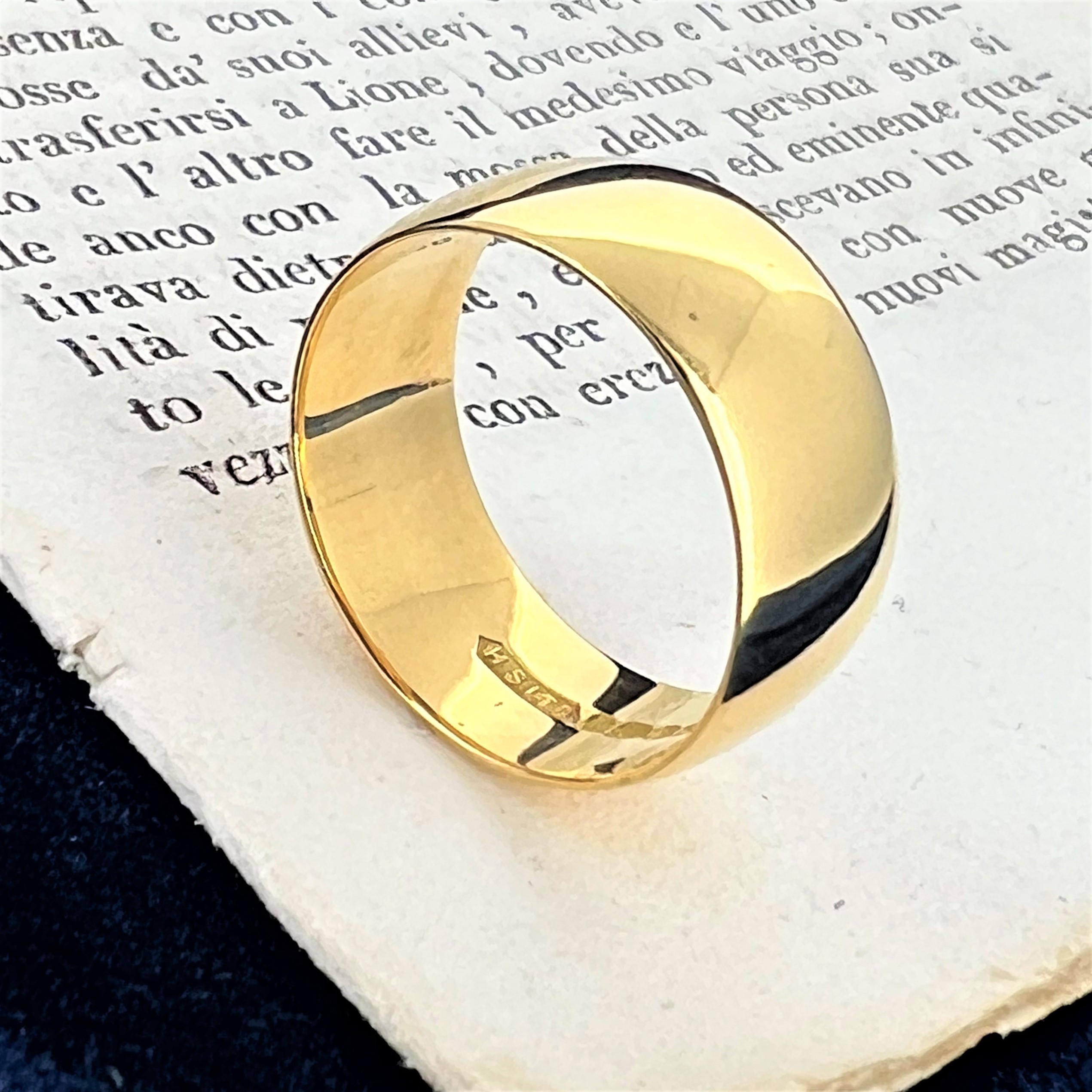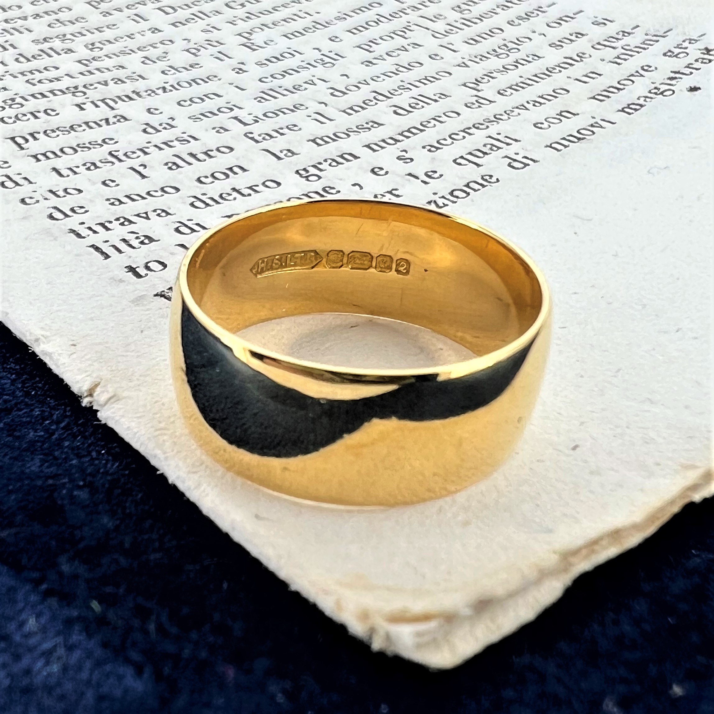 This ring is for the traditionalist looking to find a classic and timeless wedding ring. This 8mm light weight court is crafted from 22ct Gold and was hallmarked in Birmingham in 1965 by H S Ltd for H. Samuels Ltd. This ring weighs 7.3 grams, is currently a Size O 1/2 and can be sized.